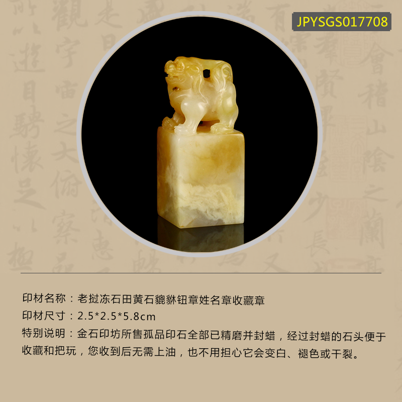 孤品17708老挝冻石田黄石貔貅钮章姓名章收藏章-2.5*2.5*5.8cm