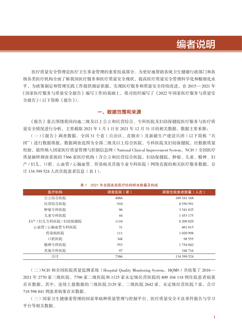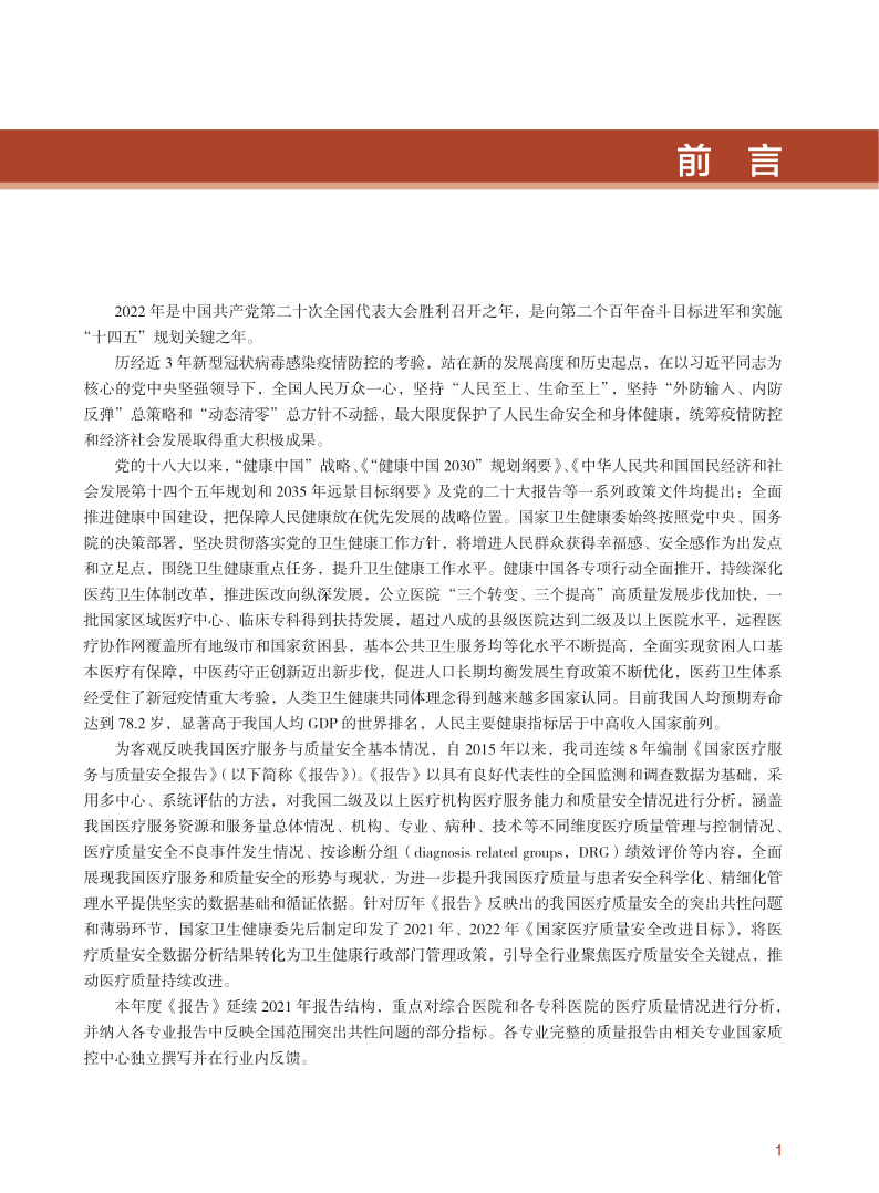 正版 2022年国家医LIAO服务与质量安全报告 国家卫生健康委员会主编