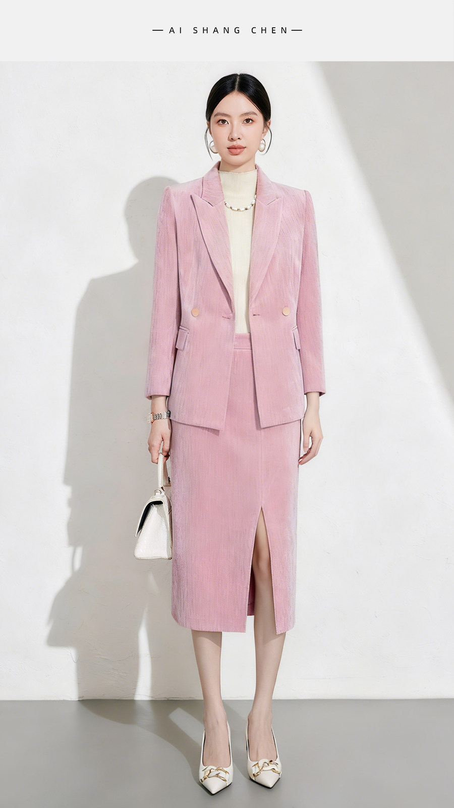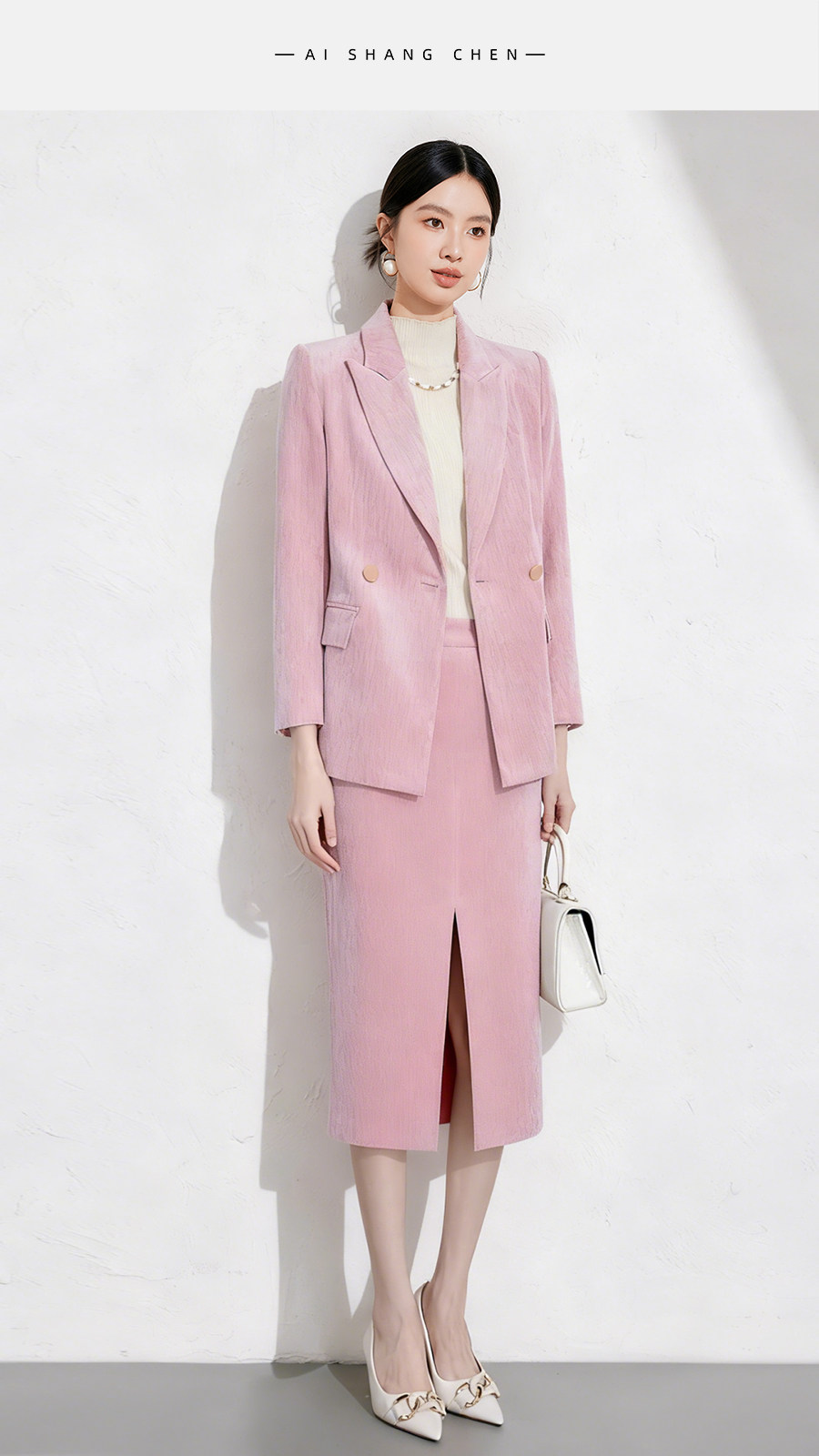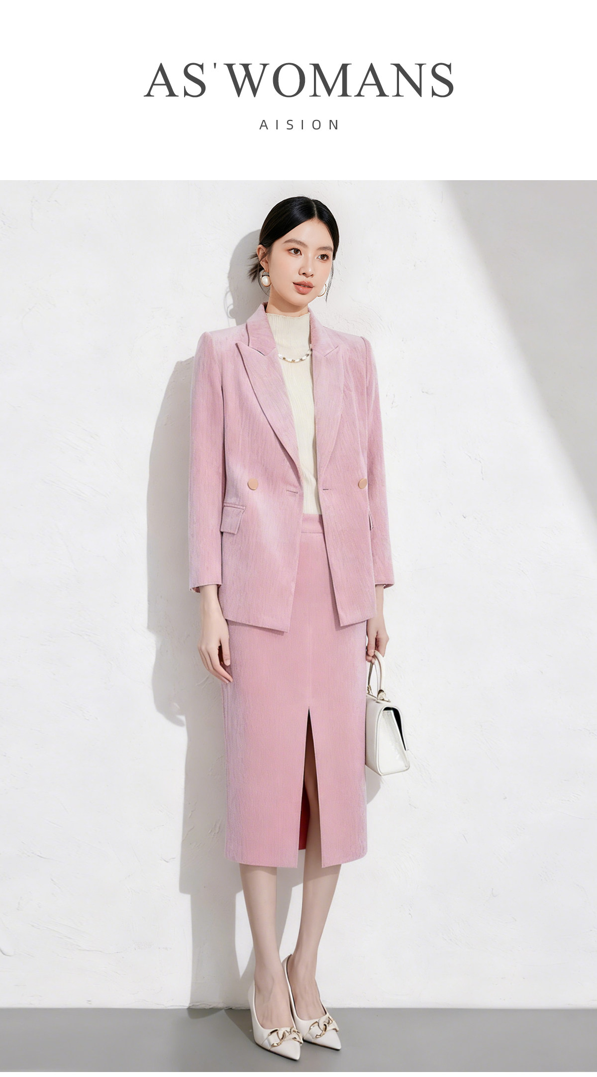 艾尚臣樱花粉西装套裙女高级感优雅正装职业装开叉裙显瘦两件套冬