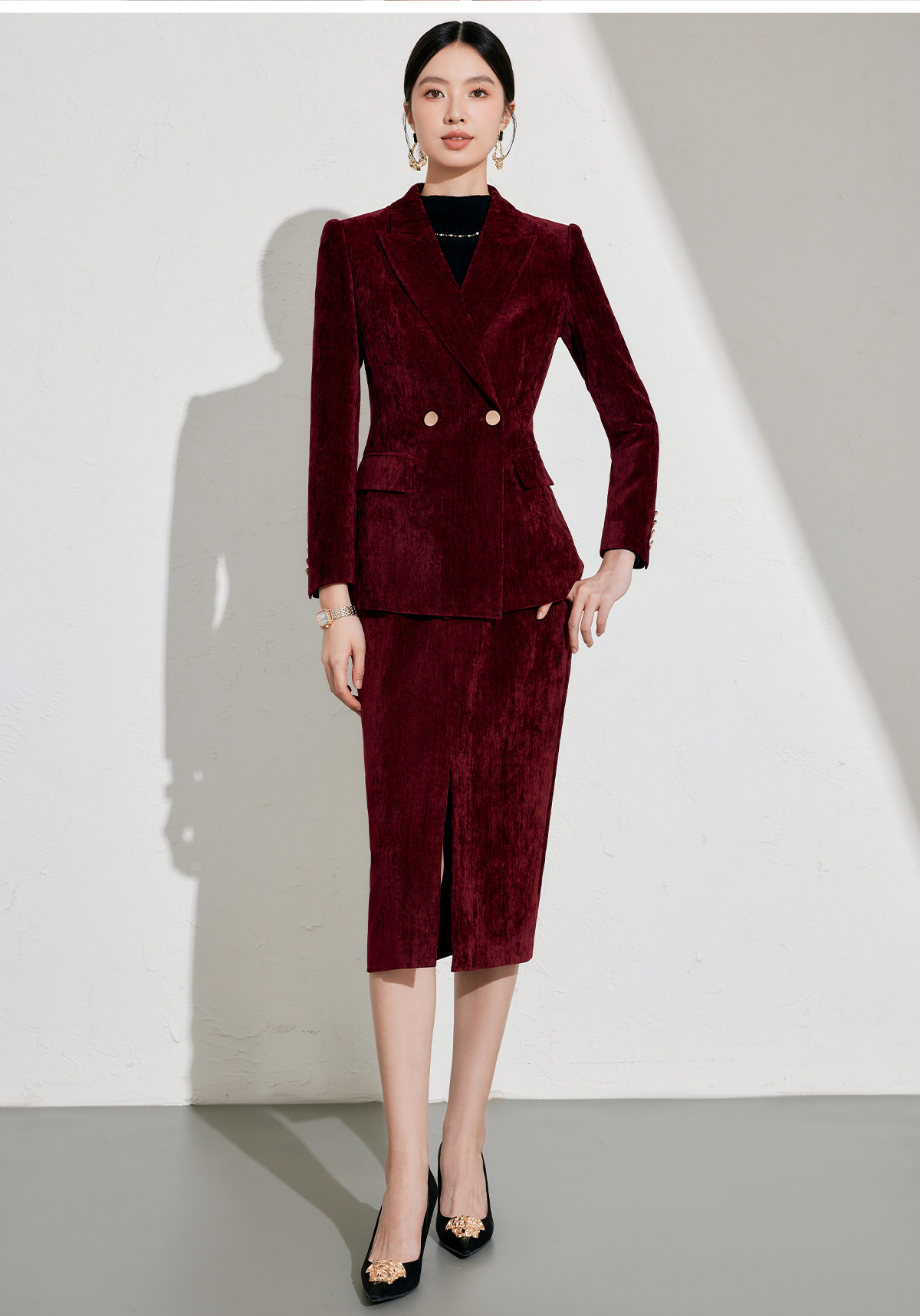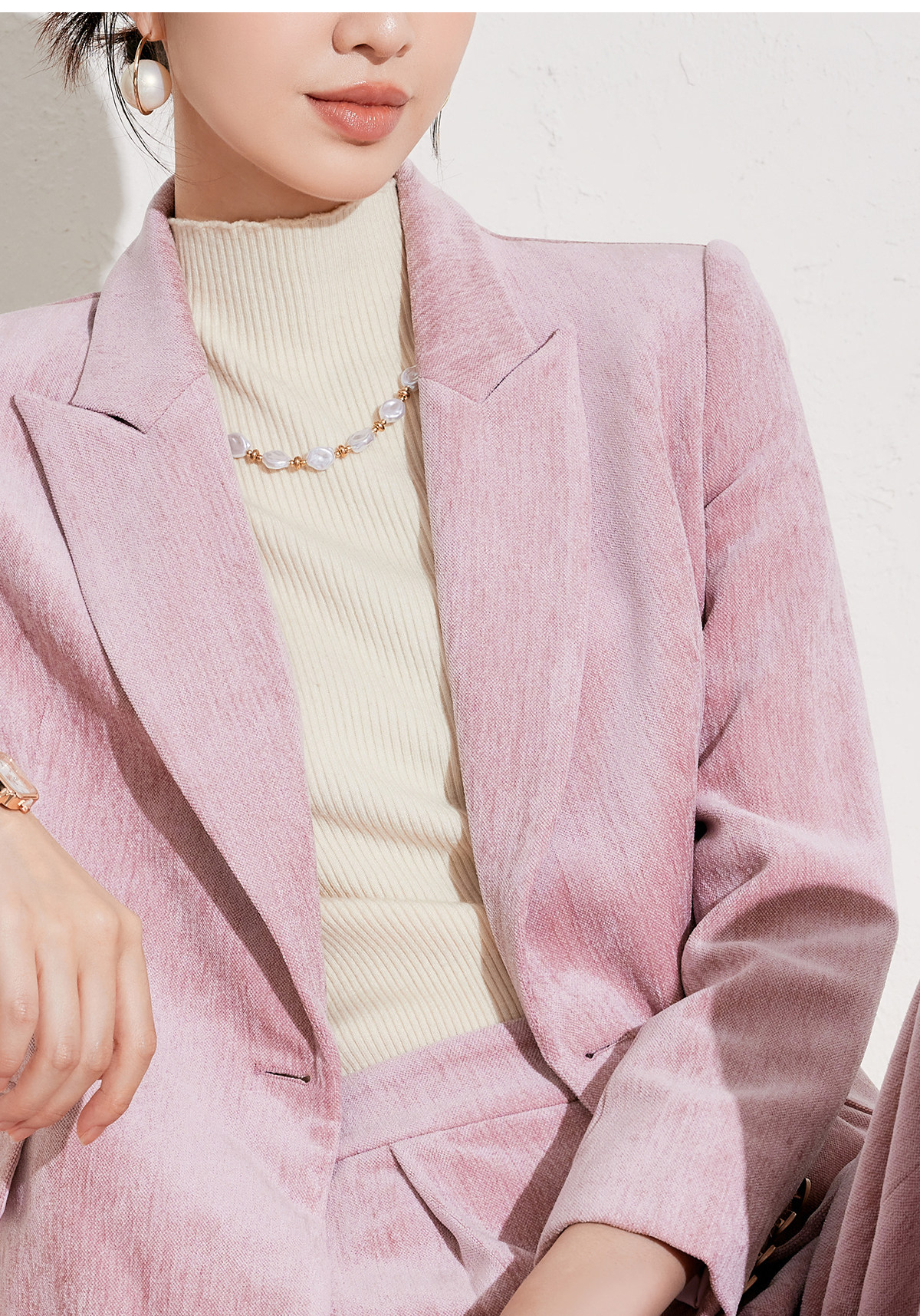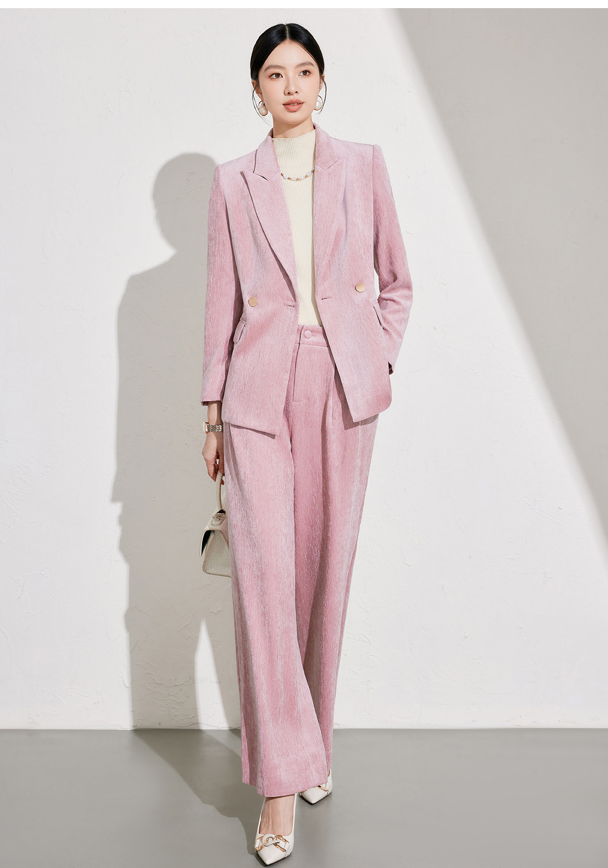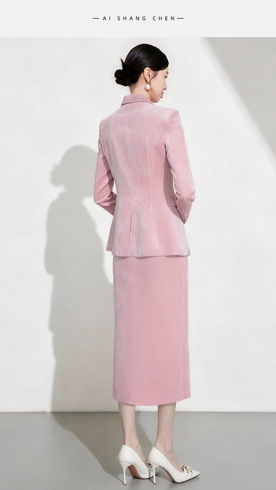 艾尚臣樱花粉西装套裙女高级感优雅正装职业装开叉裙显瘦两件套冬