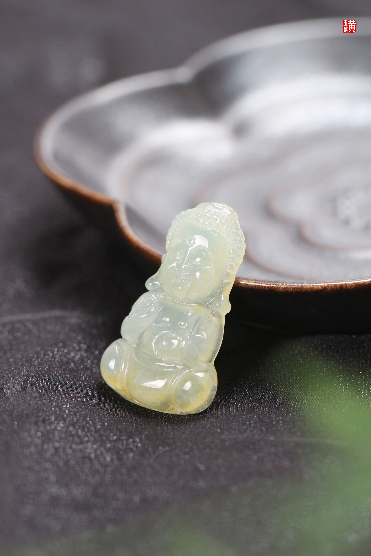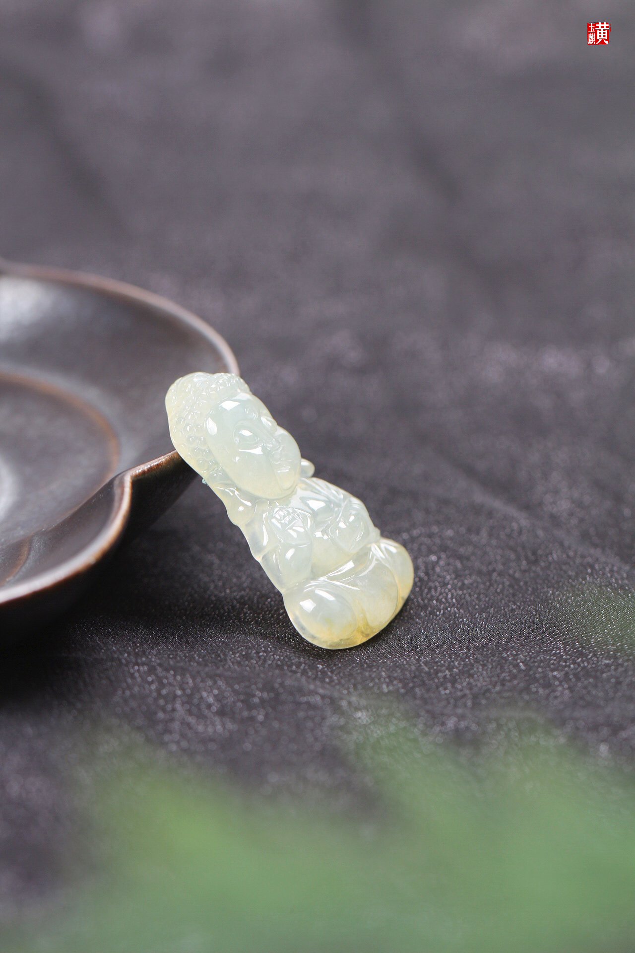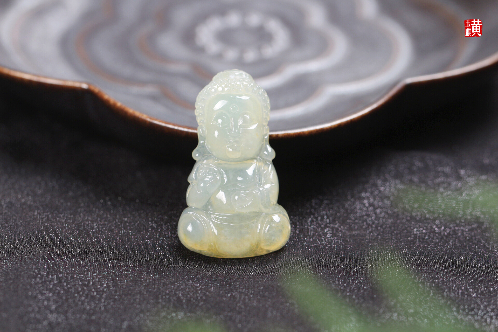 天然冰种黄翡宝宝佛吊坠 配精美挂绳