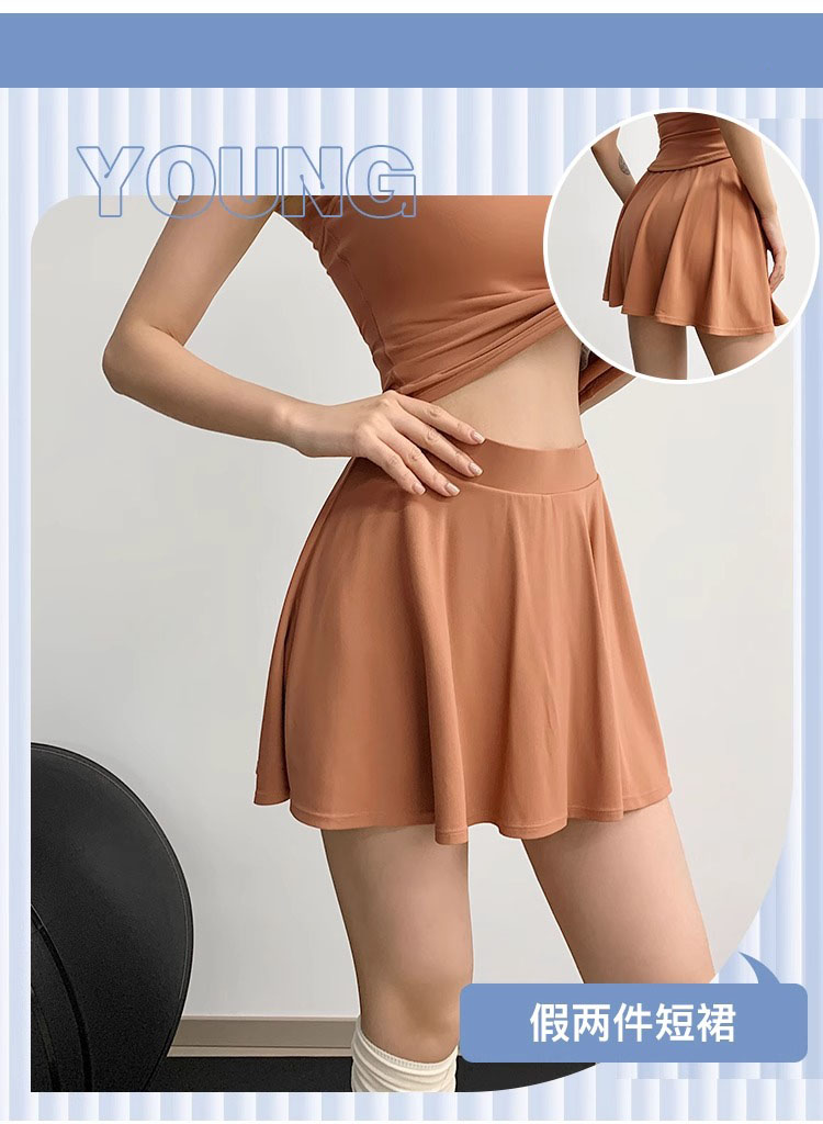 跃牌【禅语梵心】高腰跑步运动短裙女假两件防走光羽毛球网球裙健身裤瑜伽裙DQ5149