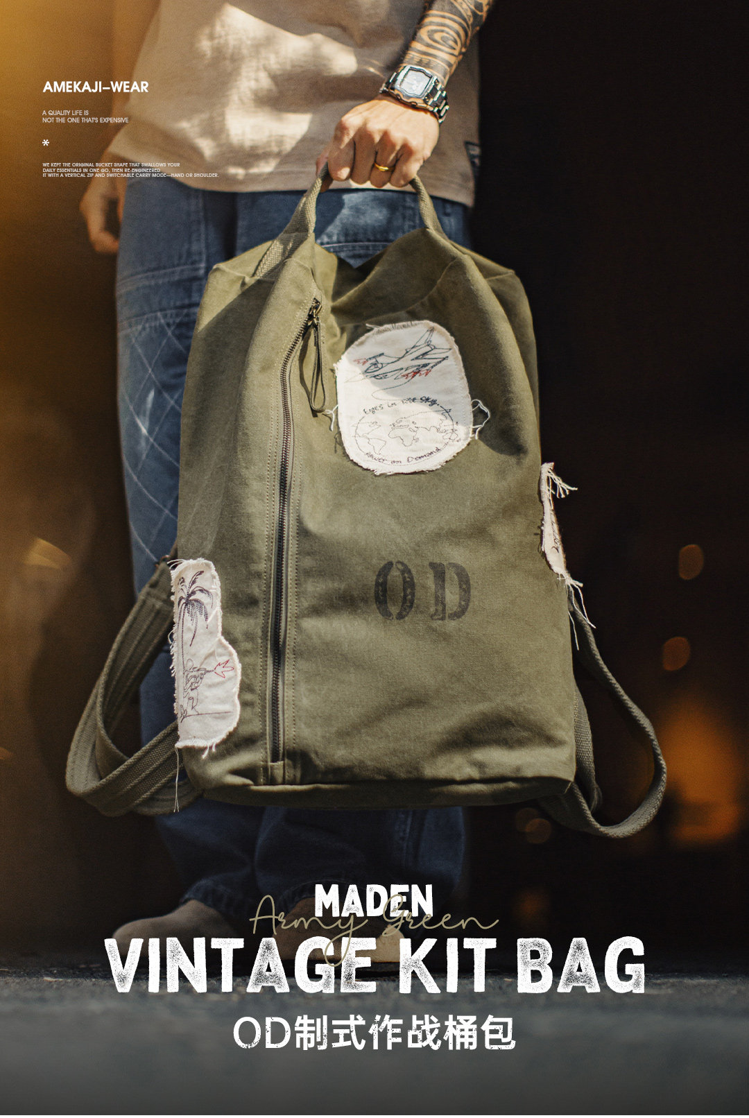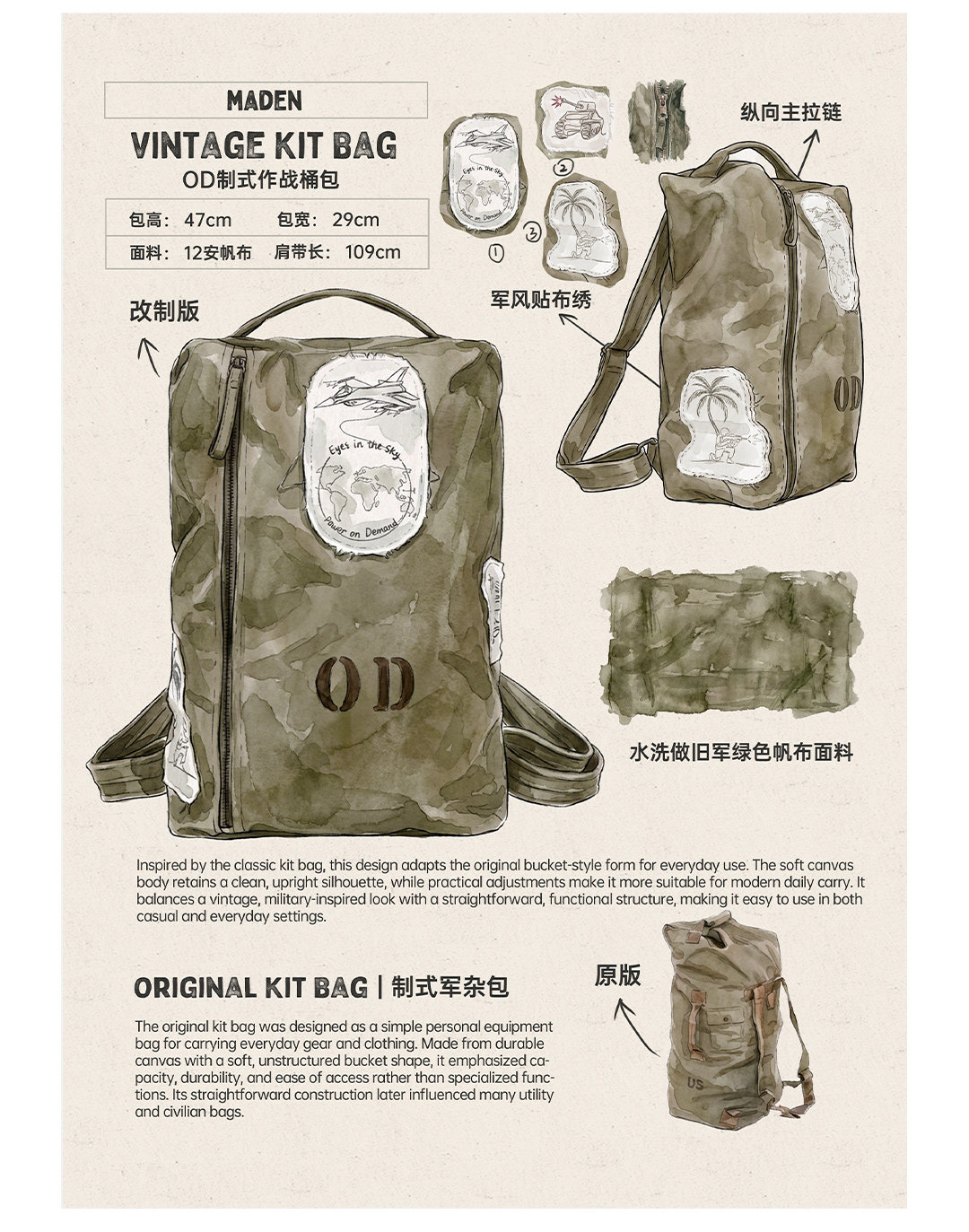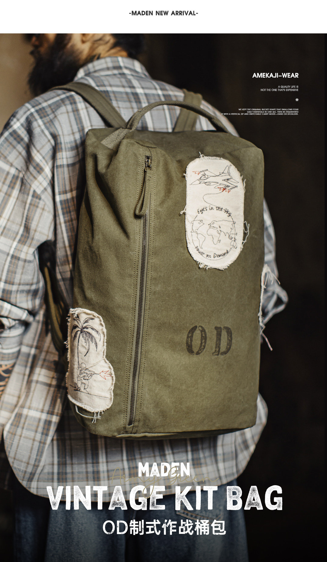 马登工装美式复古制式大容量电脑双肩包旅行徒步通勤水桶背包男款
