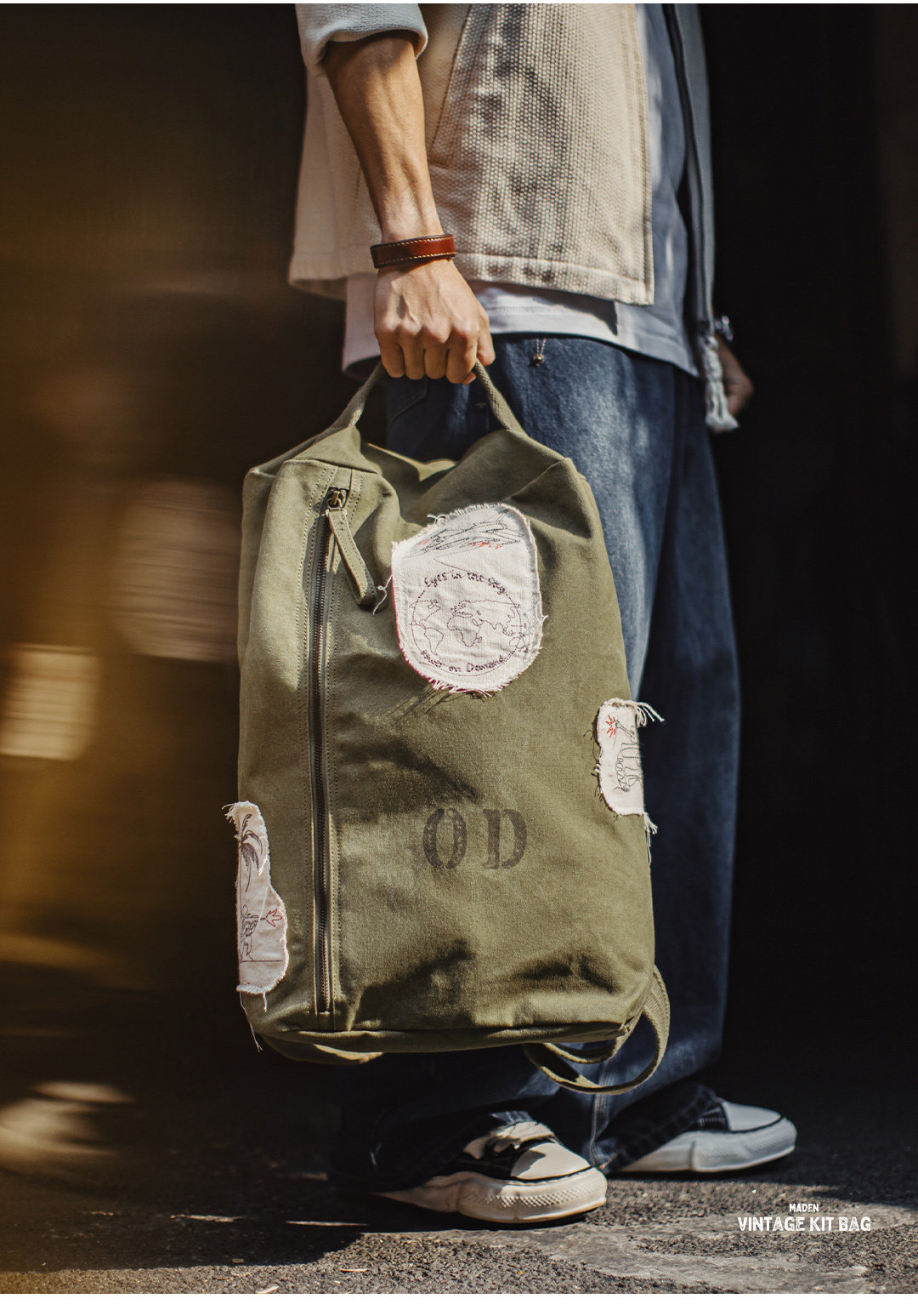 马登2025年秋季新款男士绿色软底板鞋复古厚底设计感运动休闲潮鞋