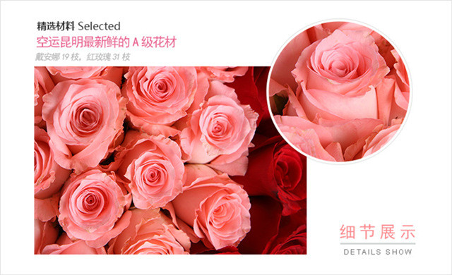 花艺师定制混搭玫瑰50支-爱在心头