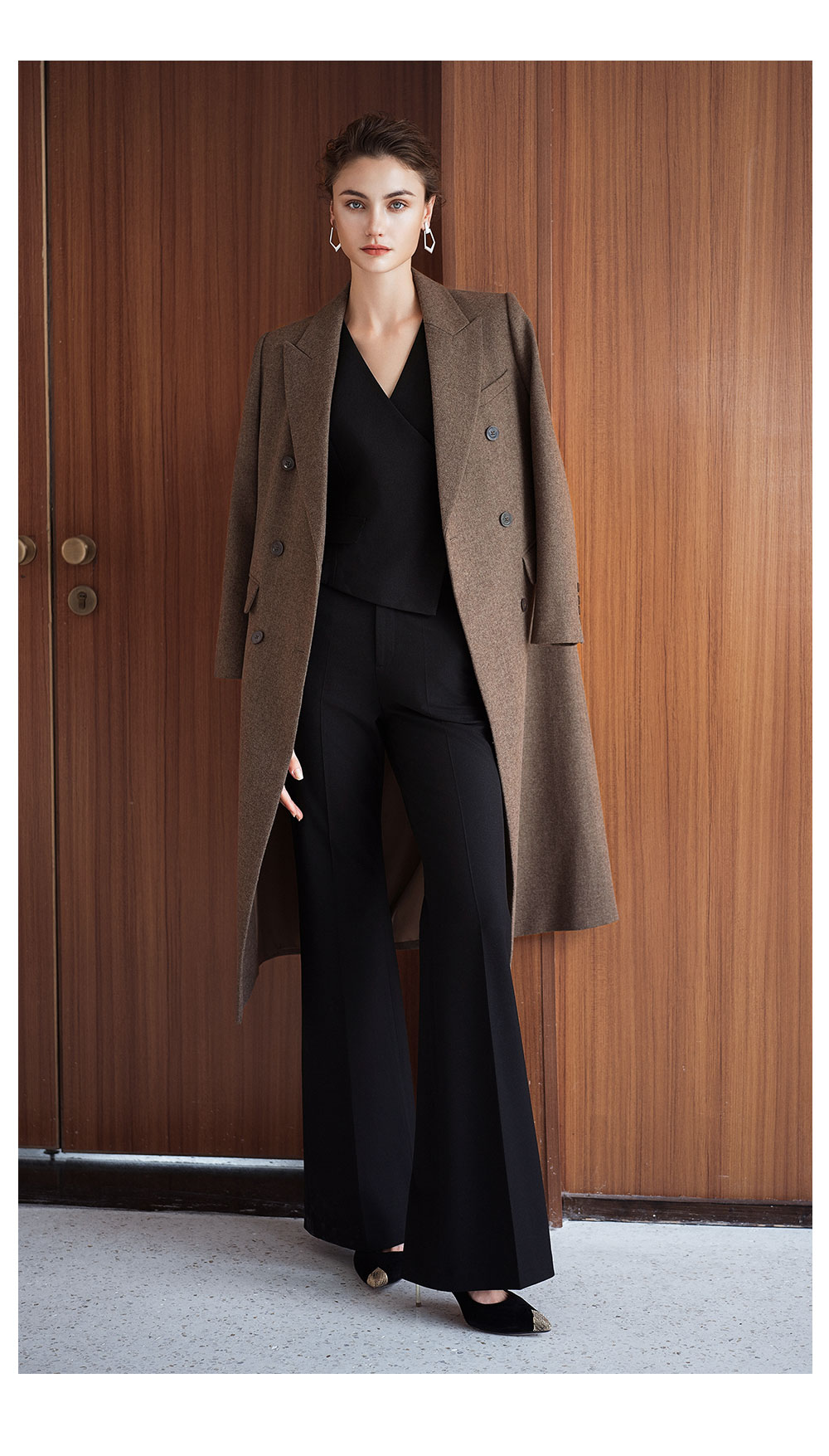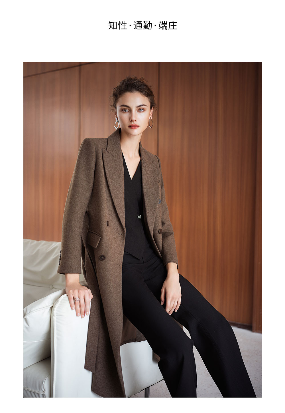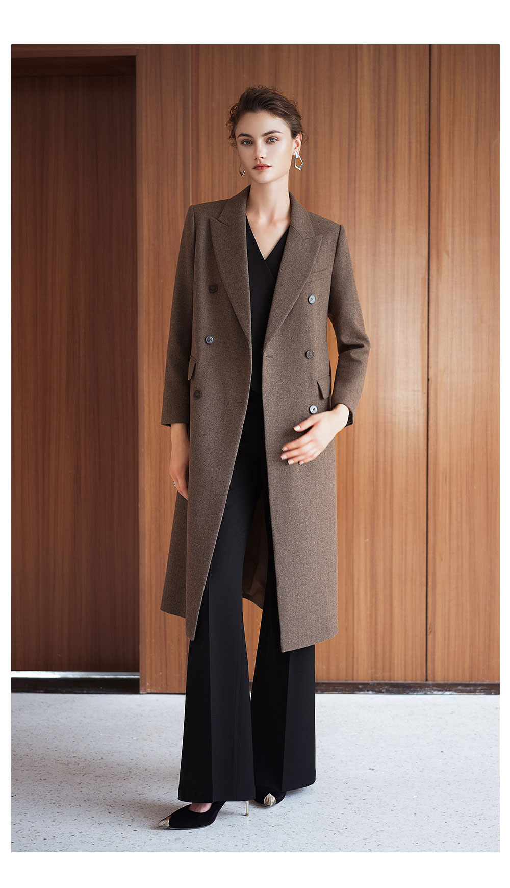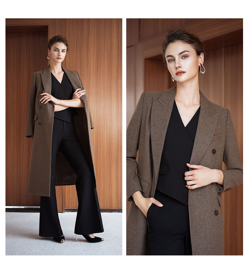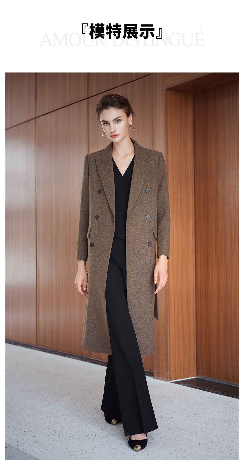 AD秋冬高级感棕色羊毛大衣女2025新款英伦风直筒中长款毛呢外套