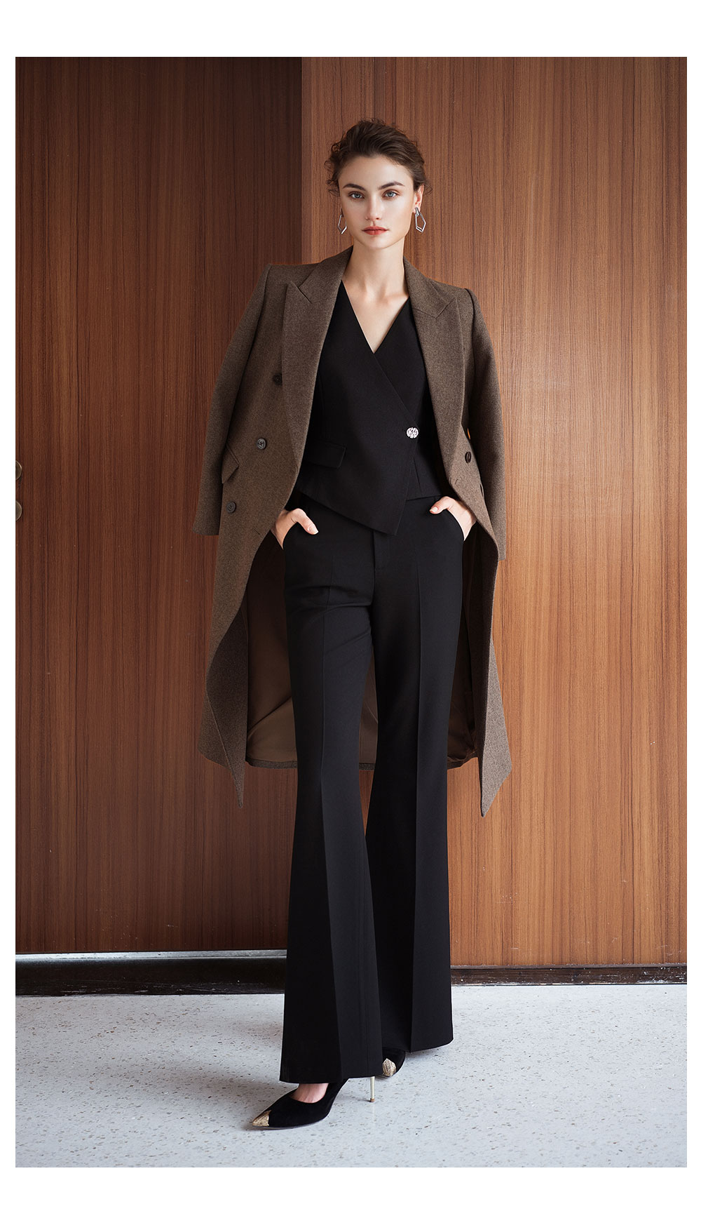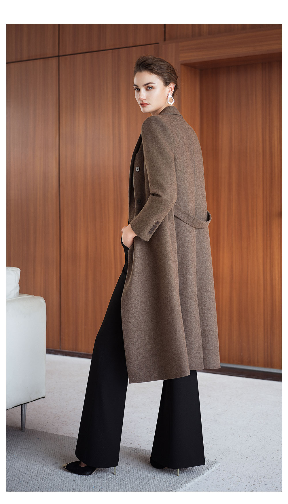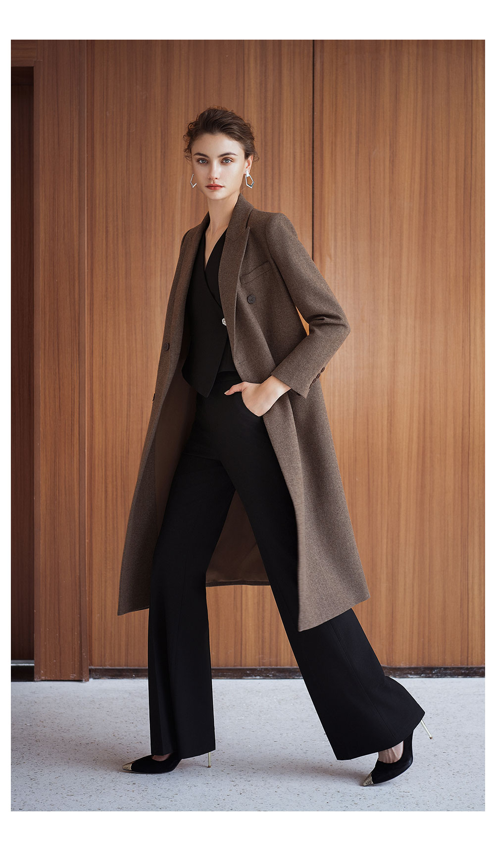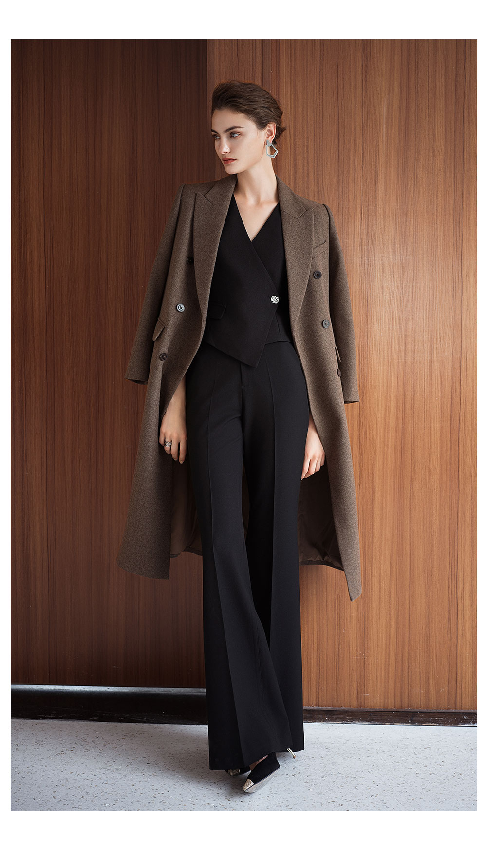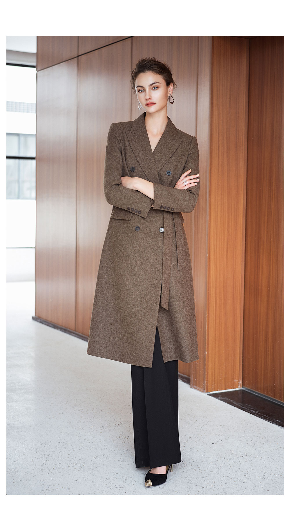 AD秋冬高级感棕色羊毛大衣女2025新款英伦风直筒中长款毛呢外套