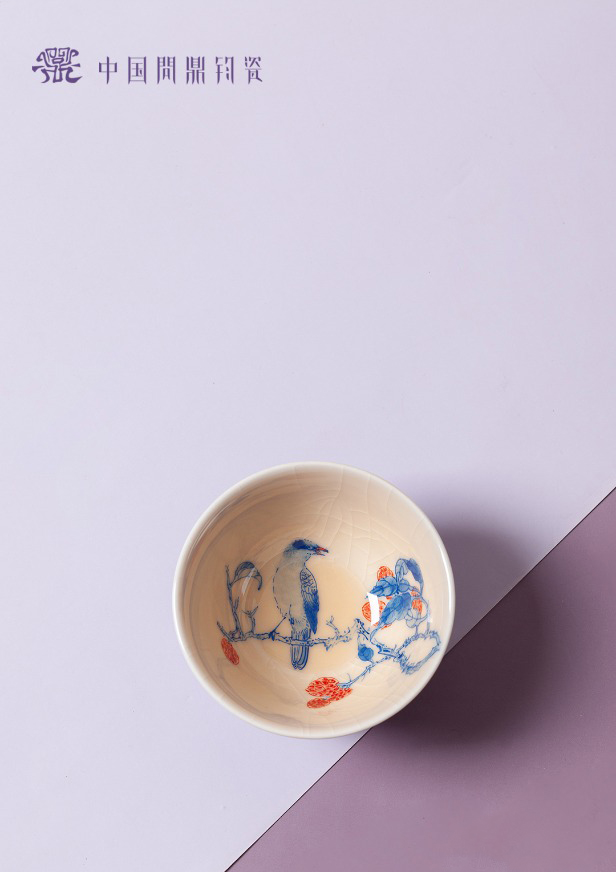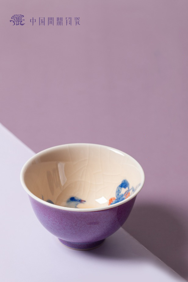 问鼎钧瓷鹅黄青花雨尘杯(大吉大利)
