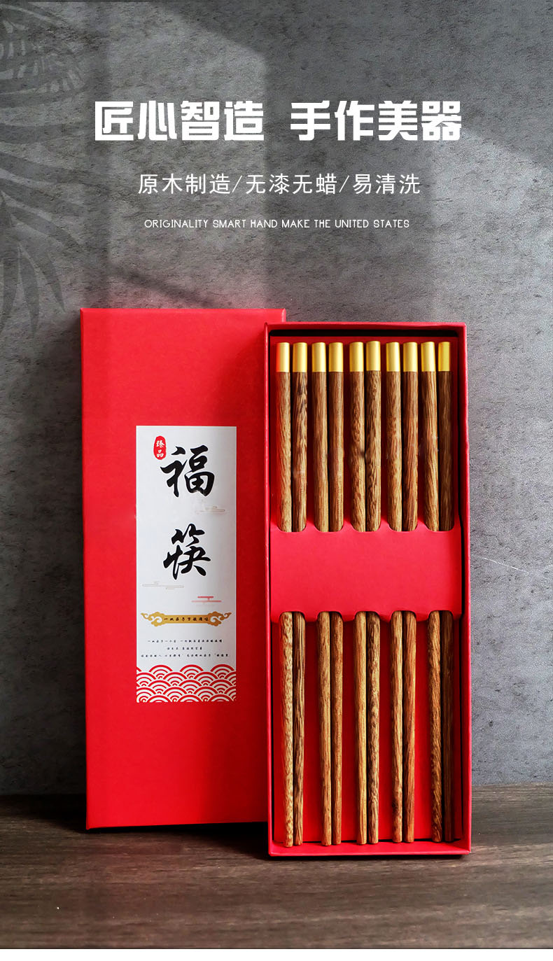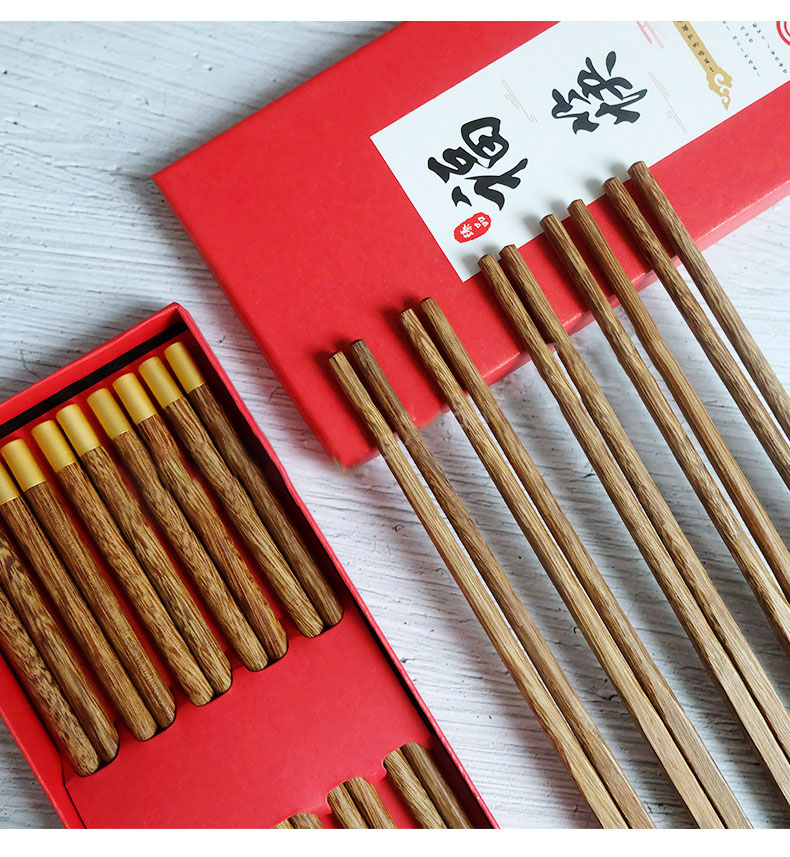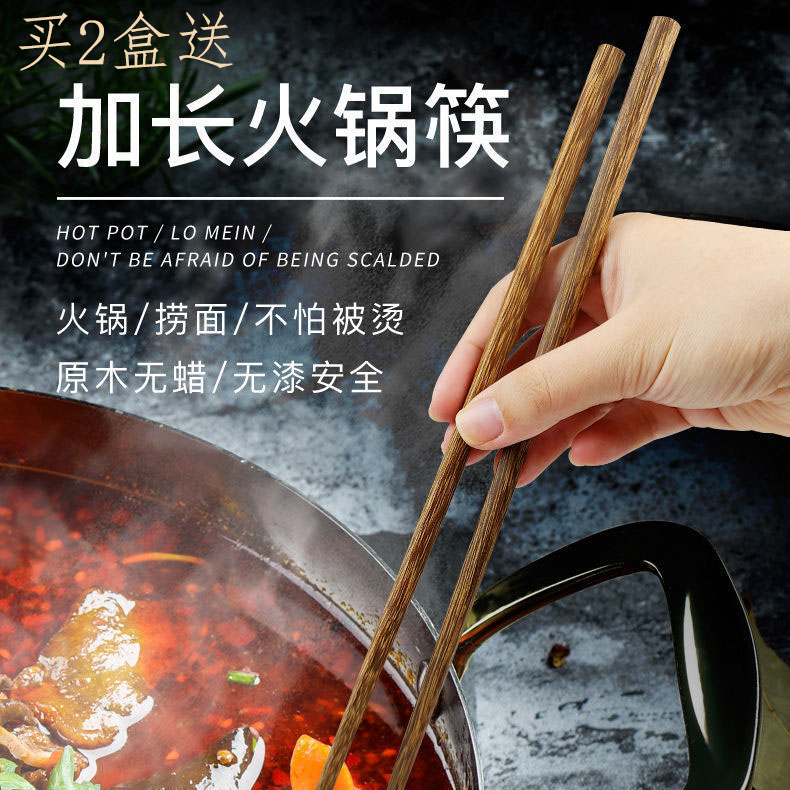 买2盒送3双加长火锅筷!【筷子还是原木好,红檀木筷子】防滑易夹,不易变形,一冲即净,健康卫生,鸡翅木筷子
