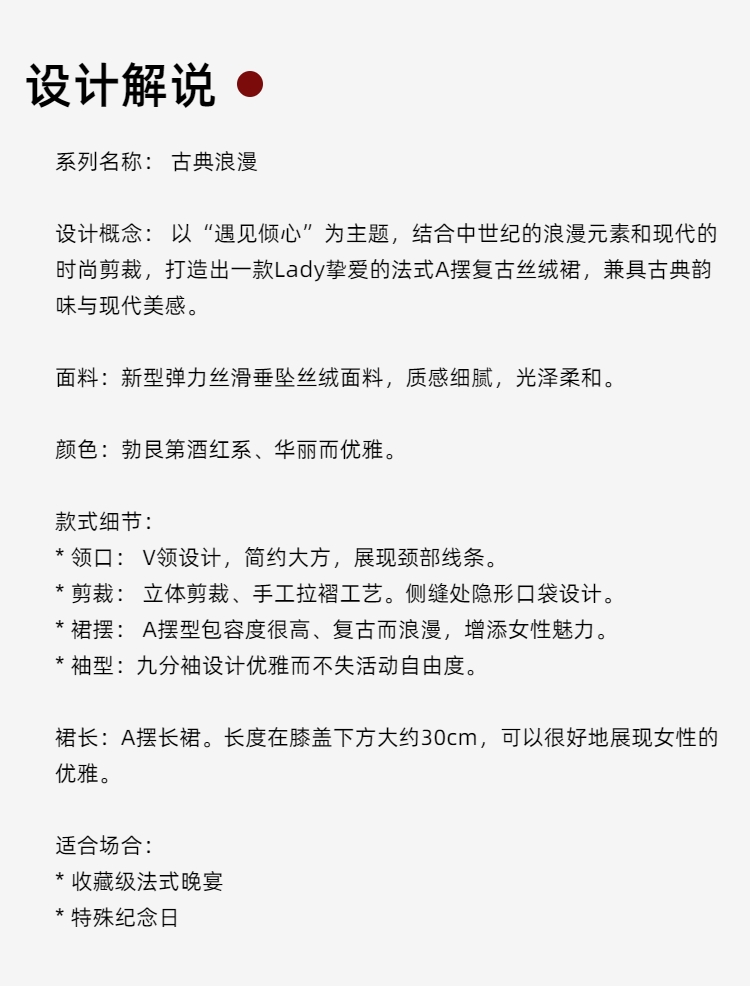E—定制——“古典浪漫”—遇见倾心——Lady挚爱、复古丝绒V领裙 2401174