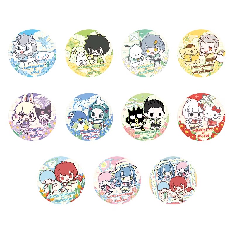 非人哉×三丽鸥家族联名 Q版马口铁徽章 吧唧 全11种 10包/盒 国谷