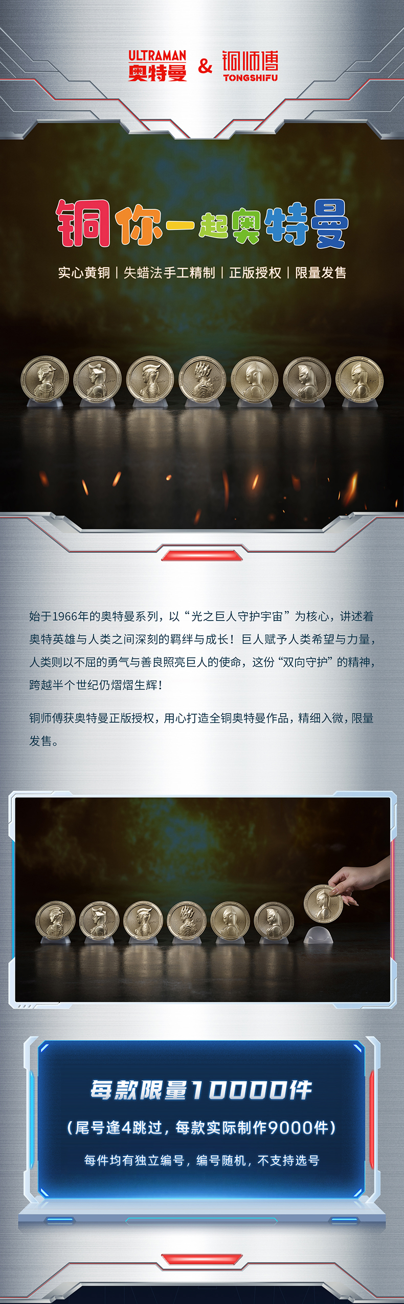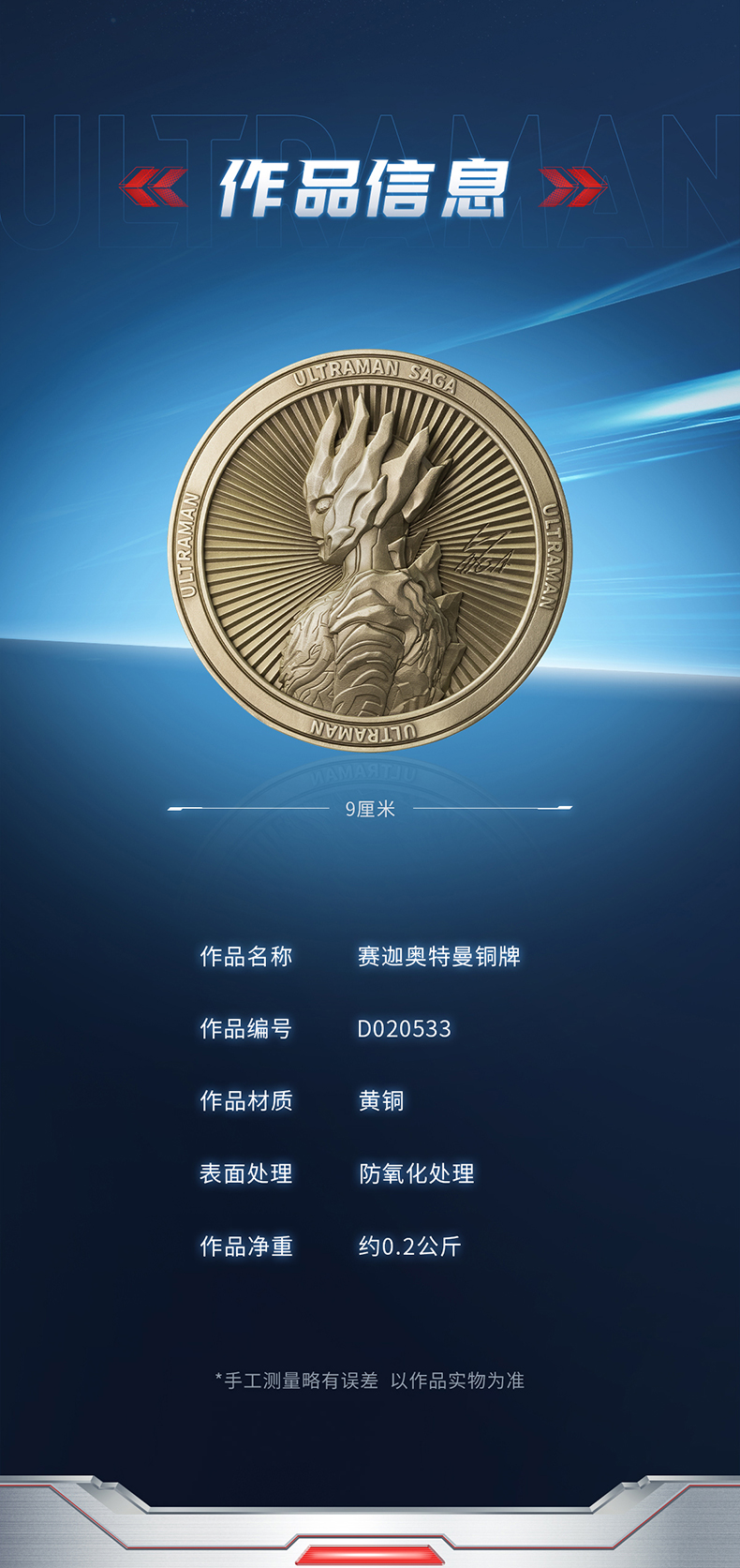铜师傅 正版授权《奥特曼铜牌》客厅限量手办 家居装饰工艺品摆件