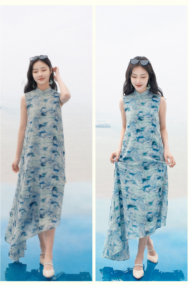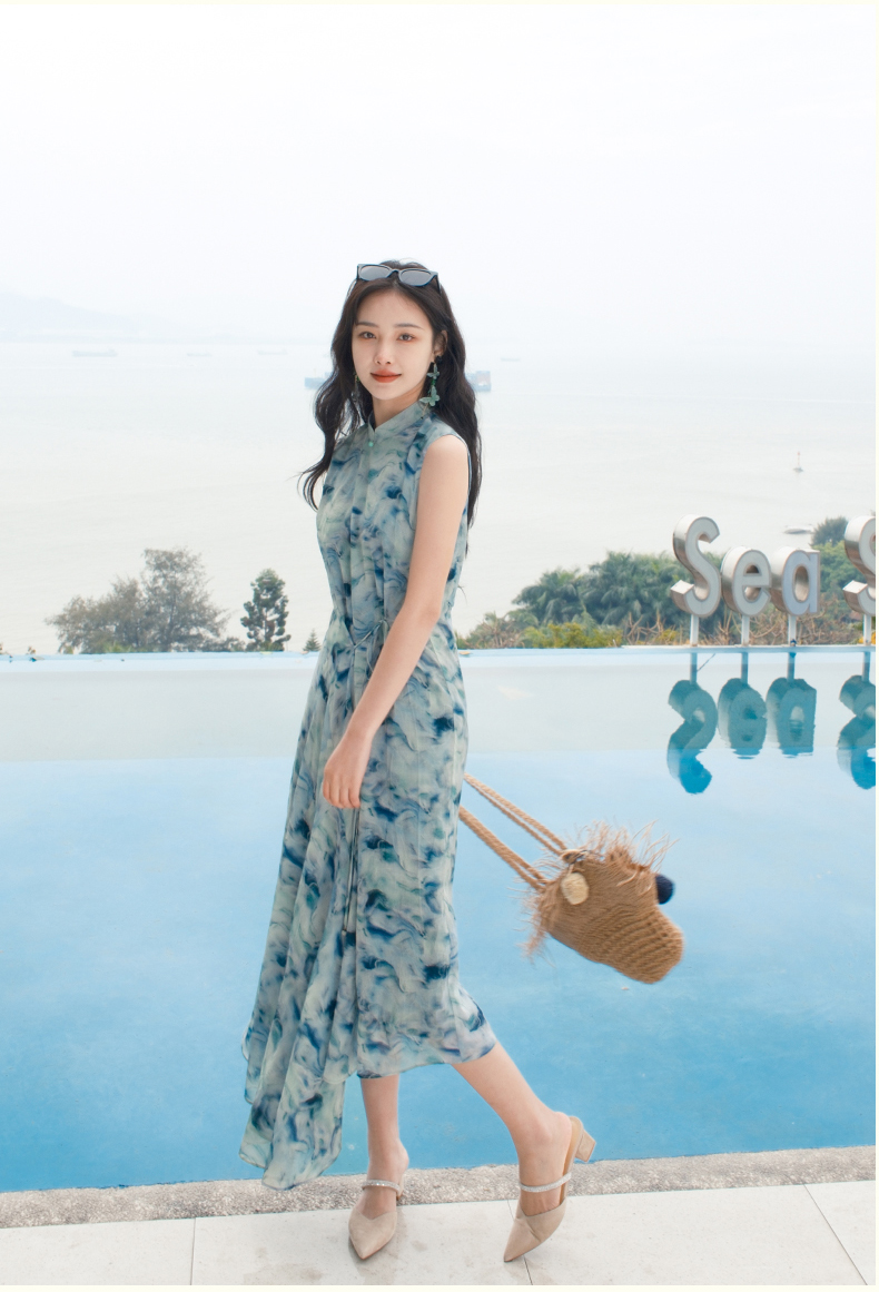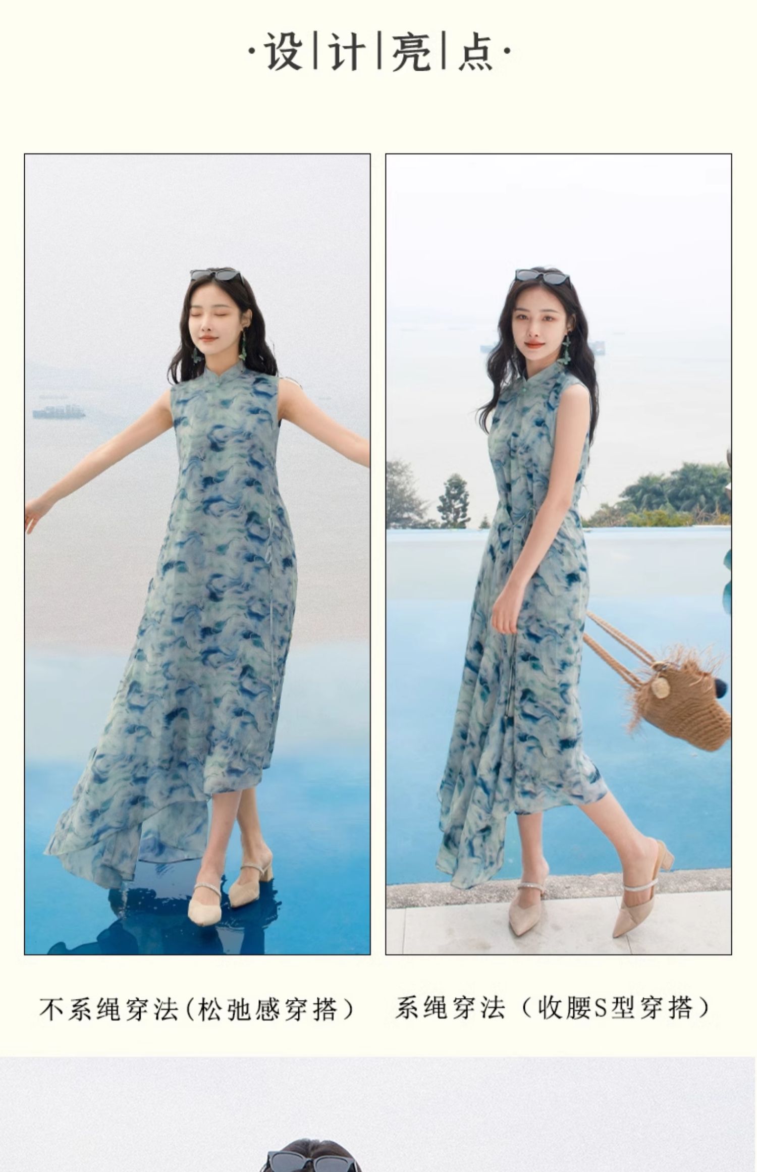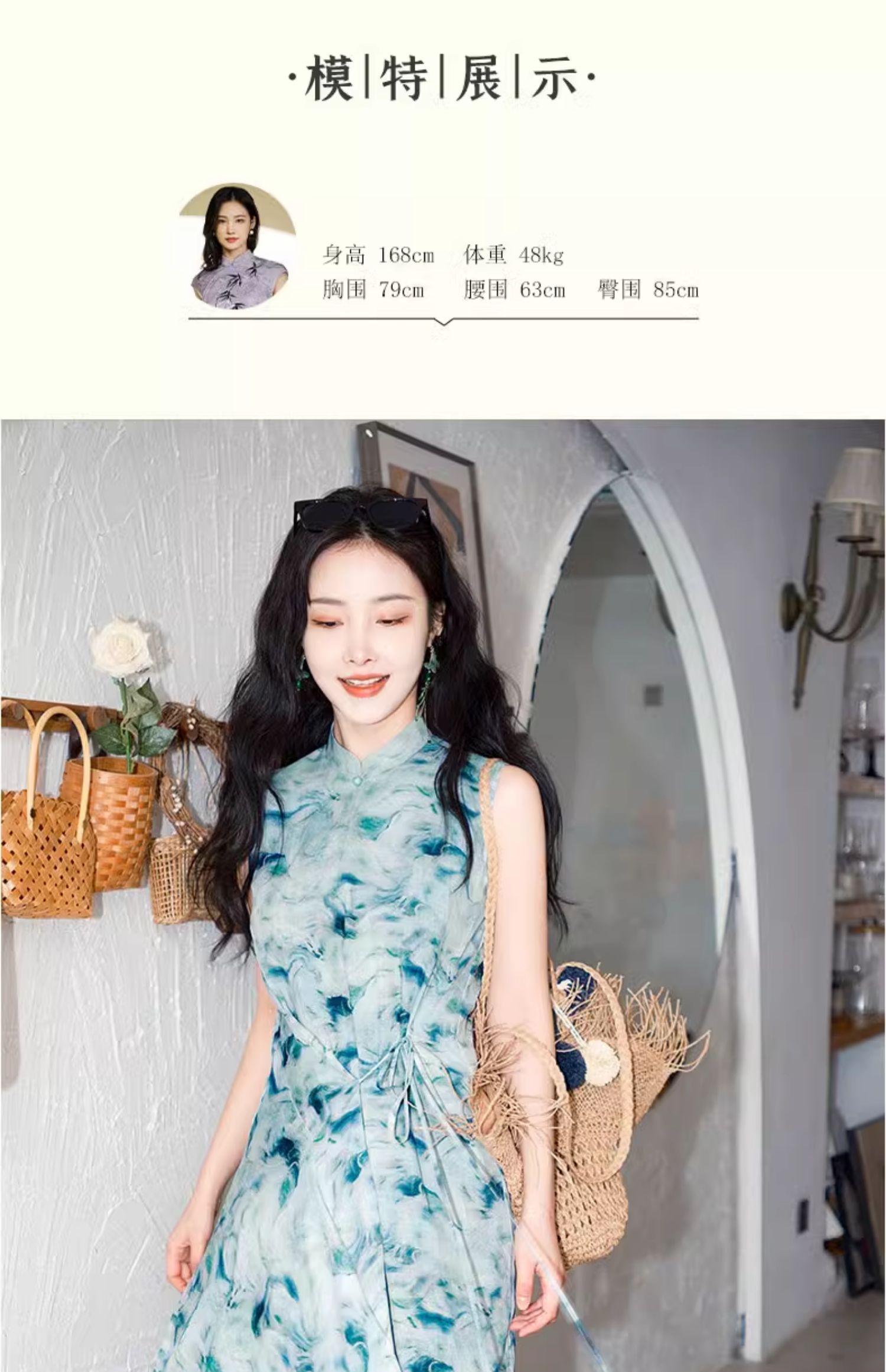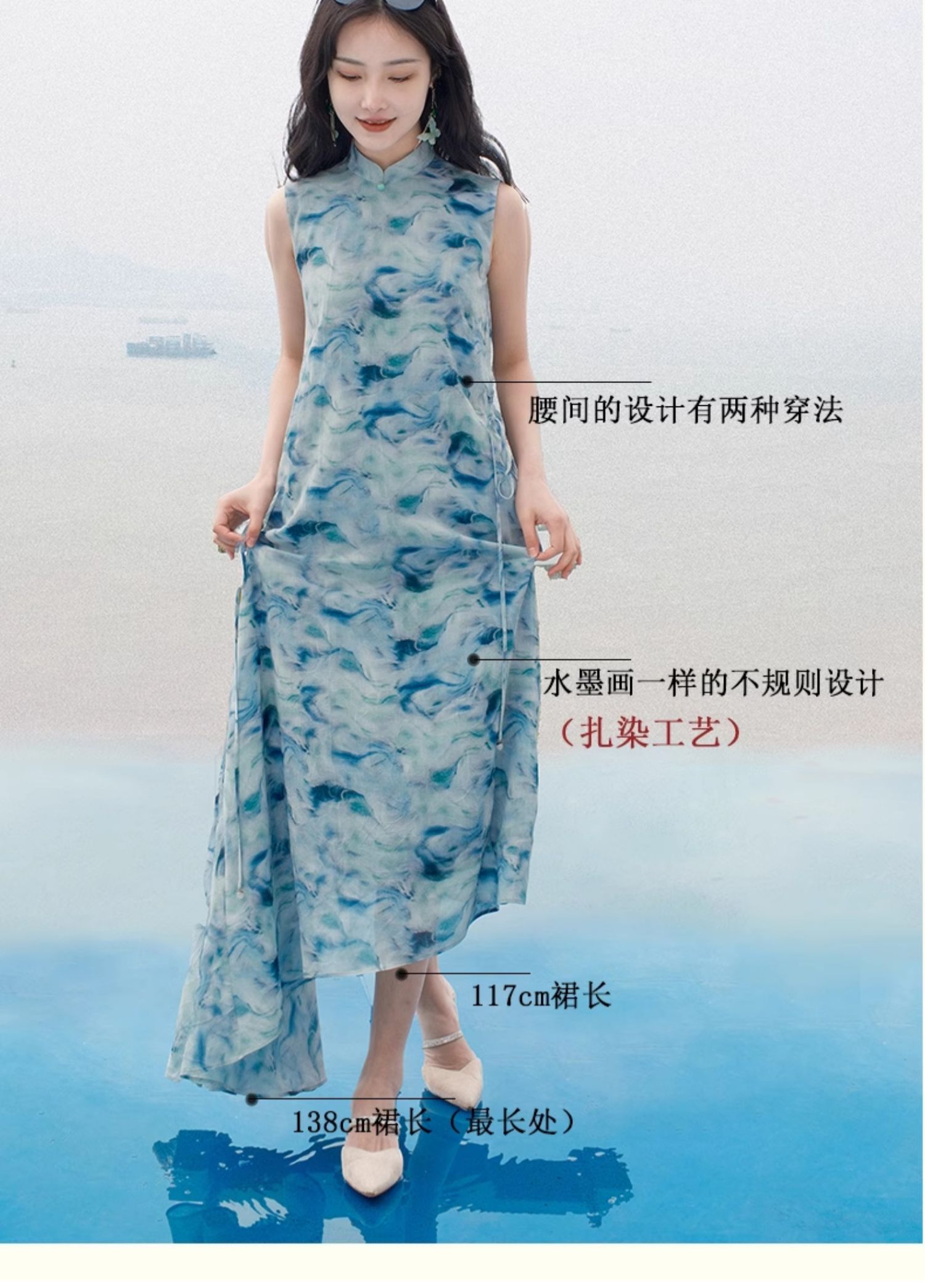 上海逸红颜春辰2025年夏季新款棉印花散摆度假风新中式旗袍连衣裙