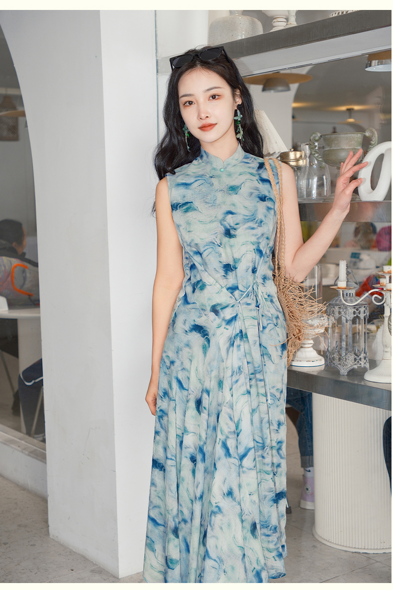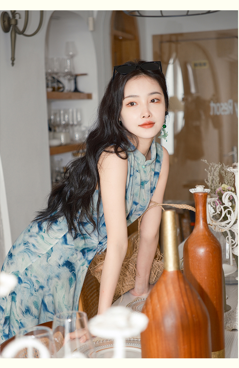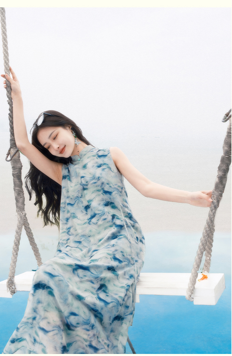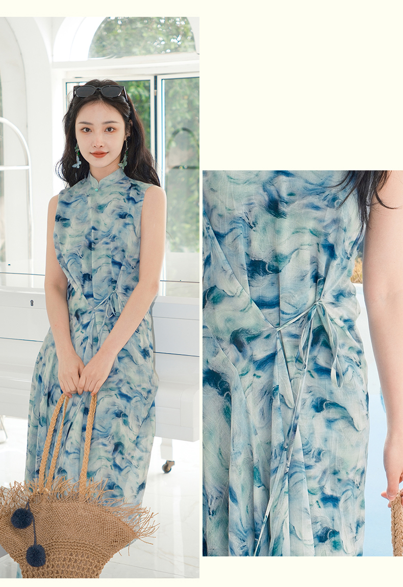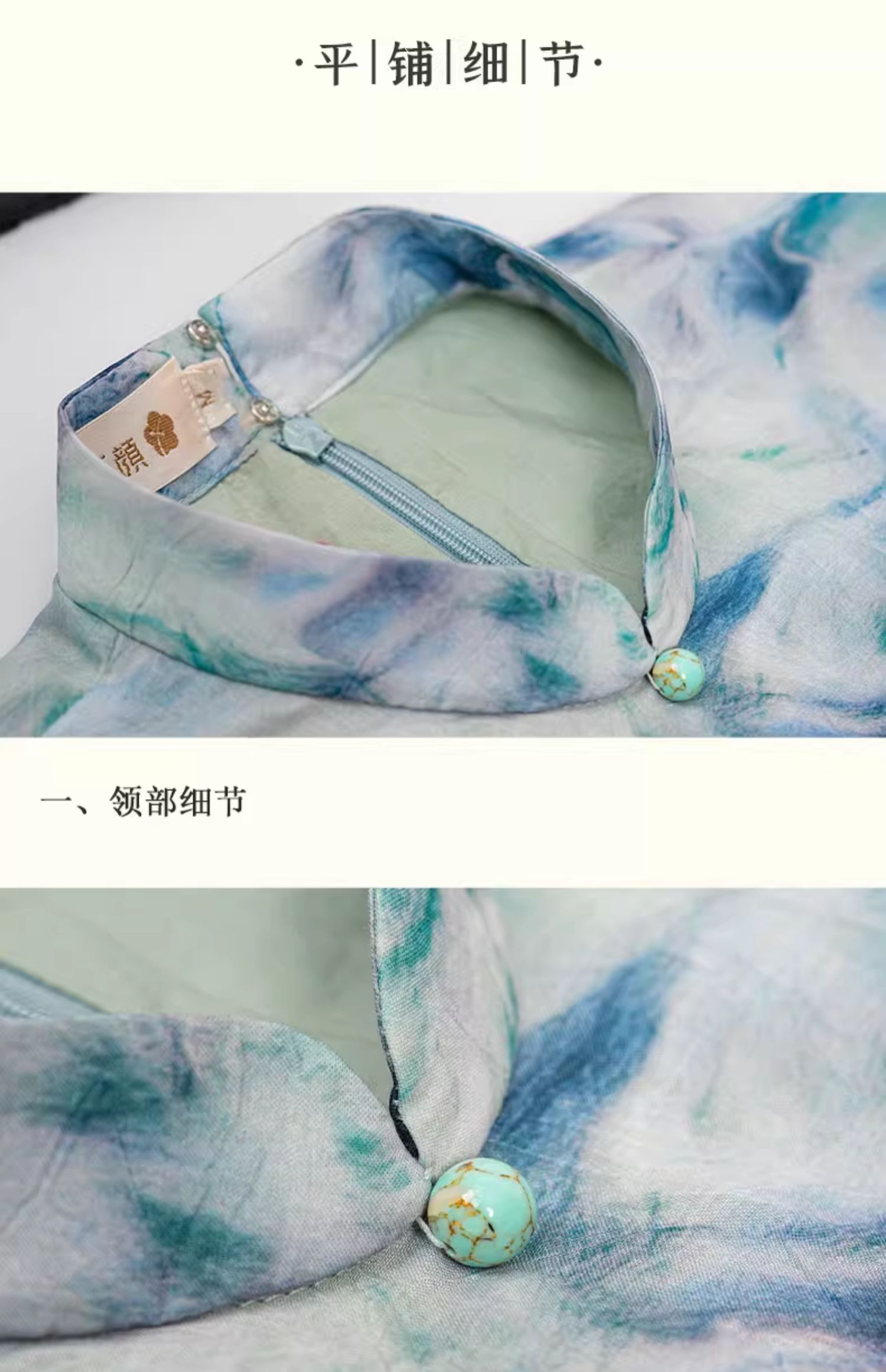 上海逸红颜春辰2025年夏季新款棉印花散摆度假风新中式旗袍连衣裙