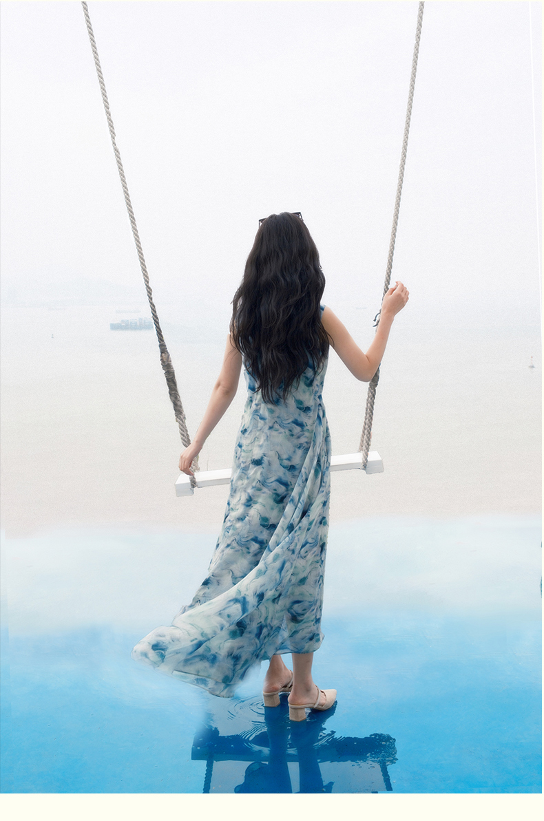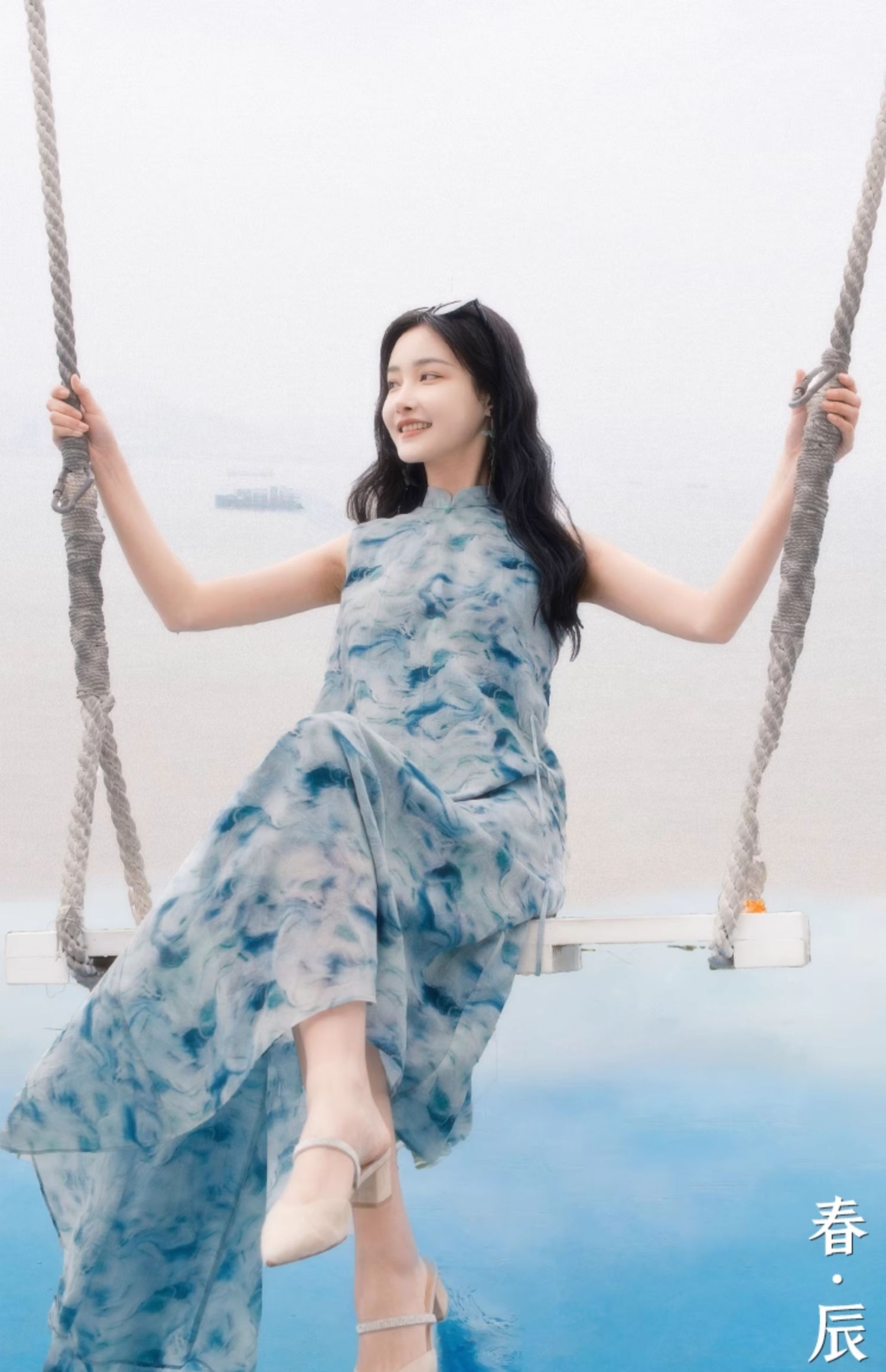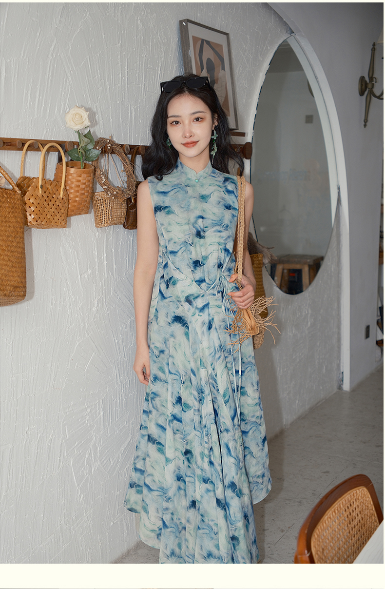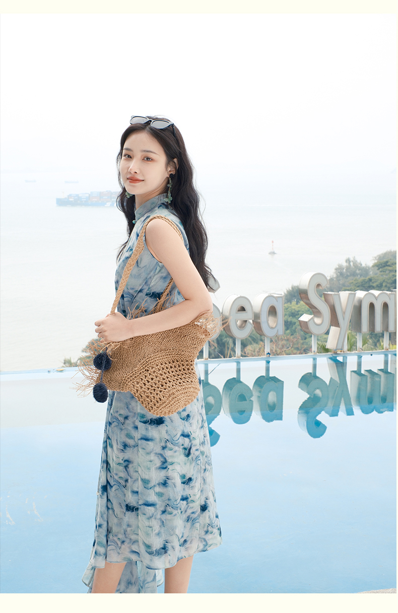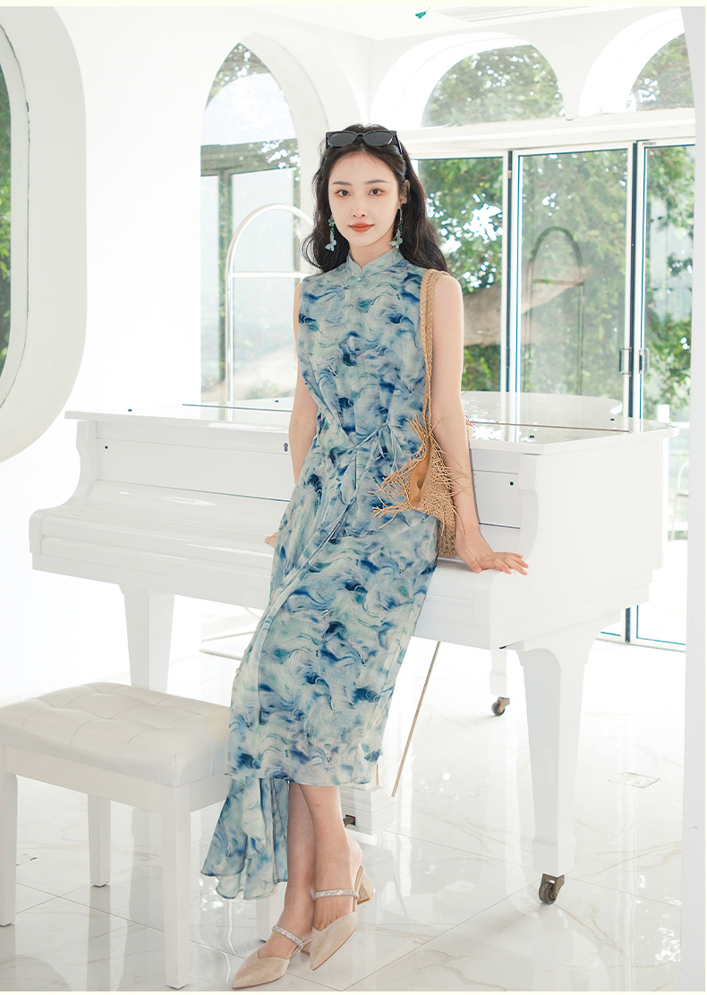 上海逸红颜春辰2025年夏季新款棉印花散摆度假风新中式旗袍连衣裙