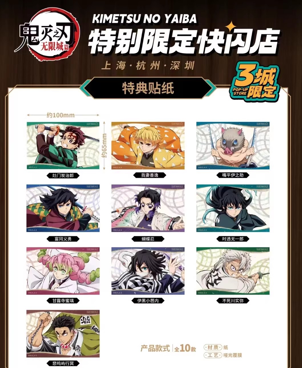 鬼灭之刃 三城限定 特典贴纸 全10种 国谷