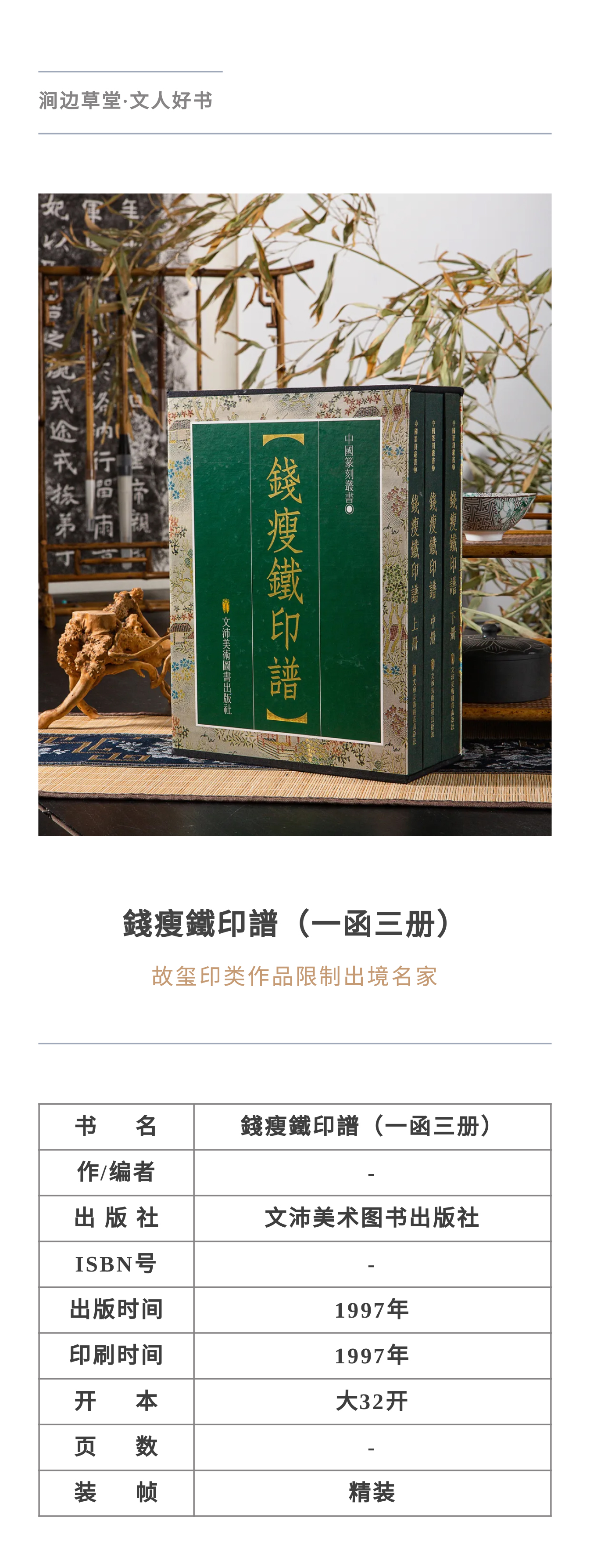 【绝版好书】《钱瘦铁印谱》一函三册全,16开540页,1997年初版,仅印600部,扉页有原拓印一页