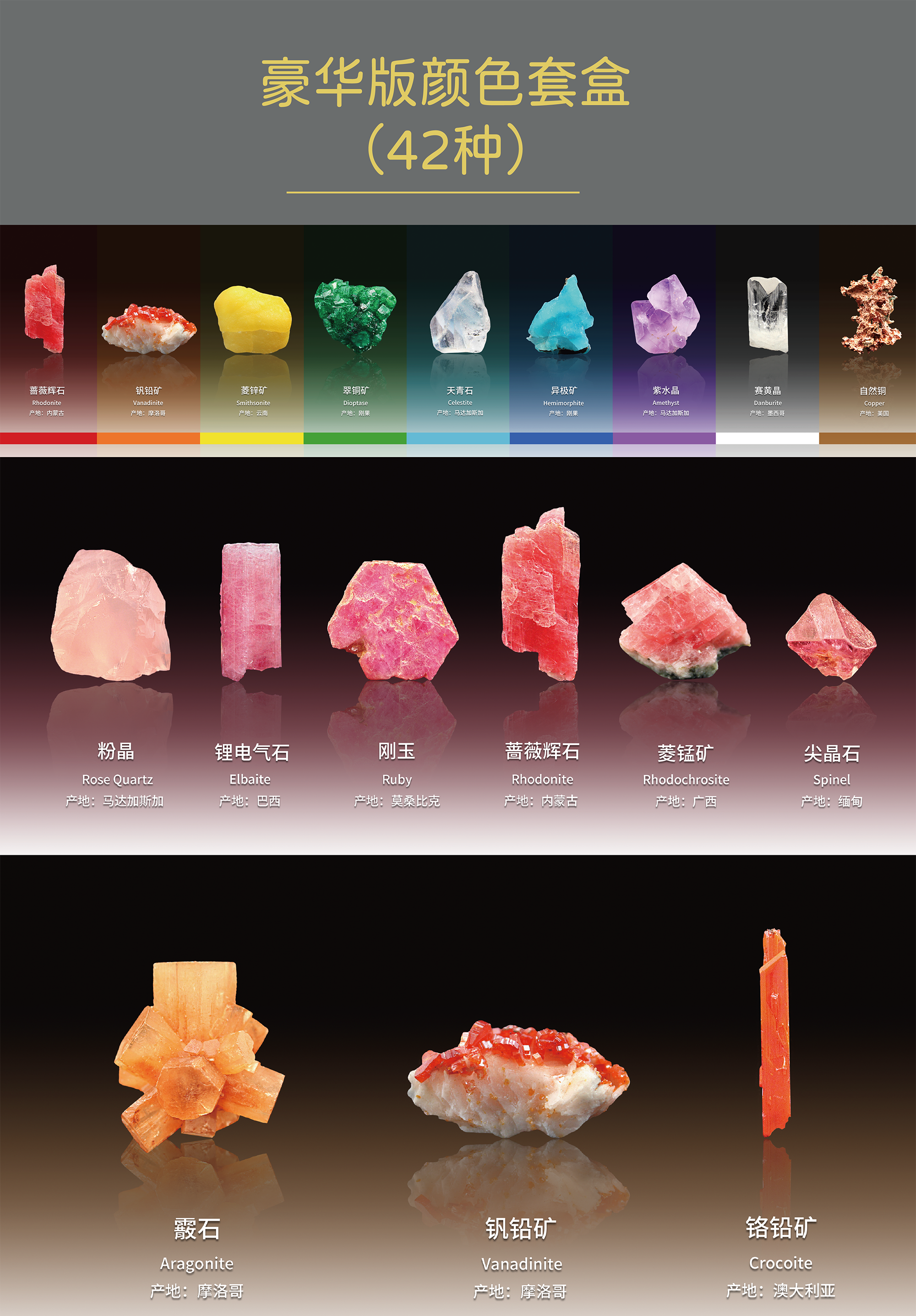 彩色矿物标本套盒精品版(42种)