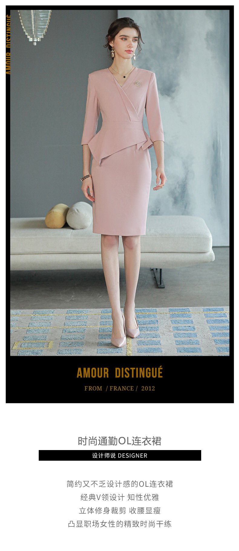 AD高级感粉色职业连衣裙女假两件工作服职业装高端前台接待工装裙