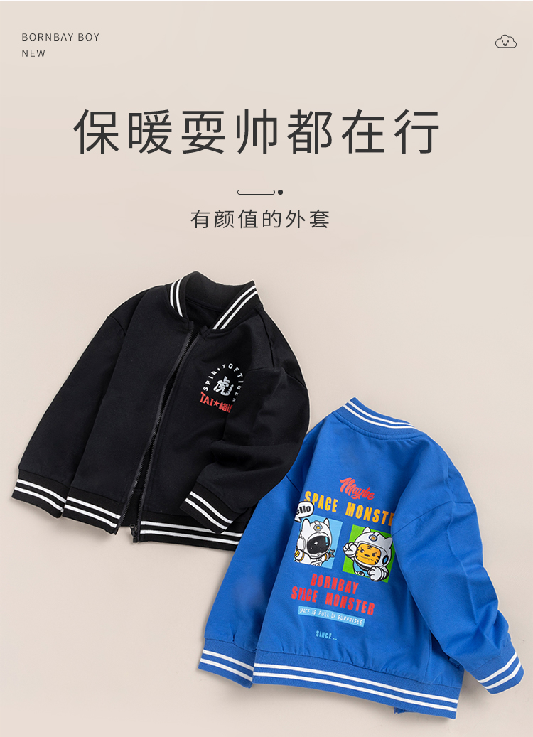 贝贝怡童装男童棒球服外套新款男孩春秋上衣洋气儿童夹克衫潮