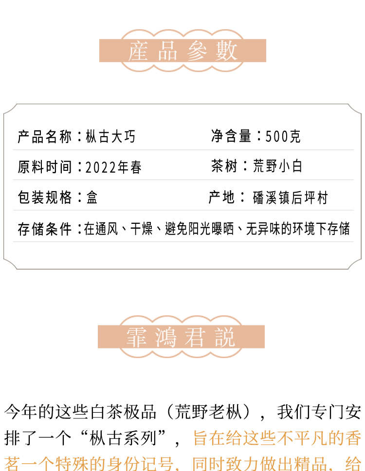 2022年春福鼎白茶荒野老枞典藏级牡丹王散茶 荒野小白日晒枞古大巧500g
