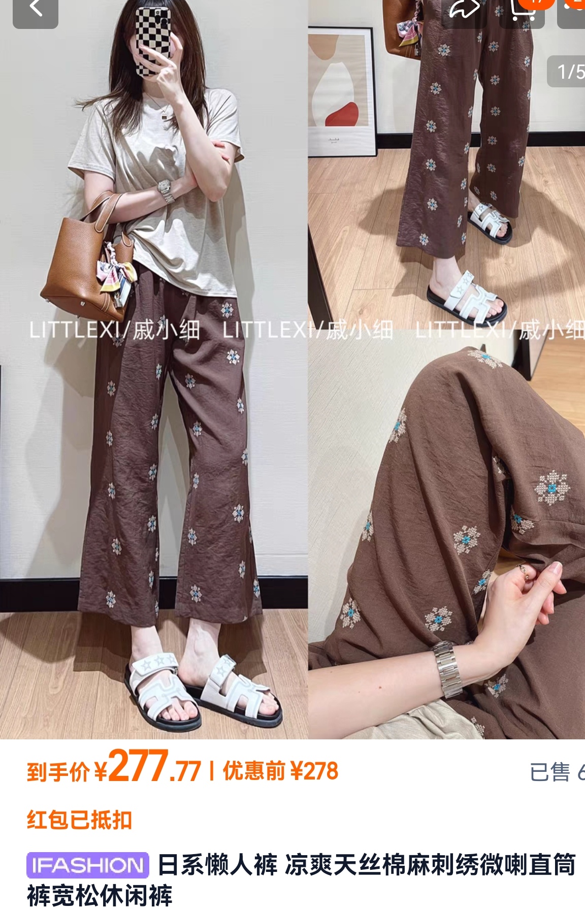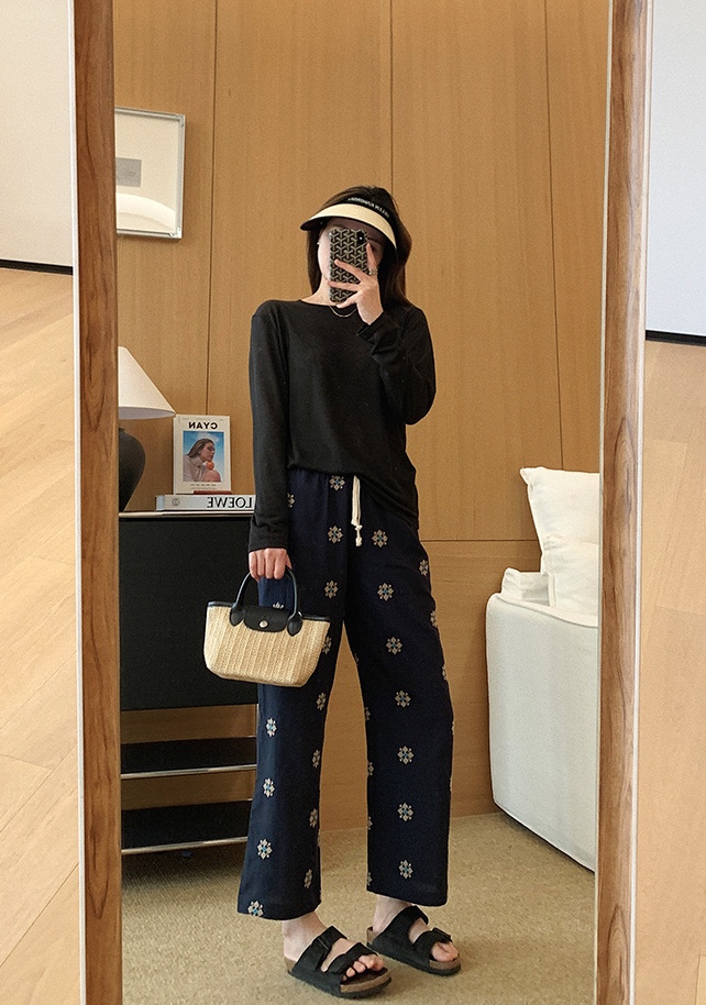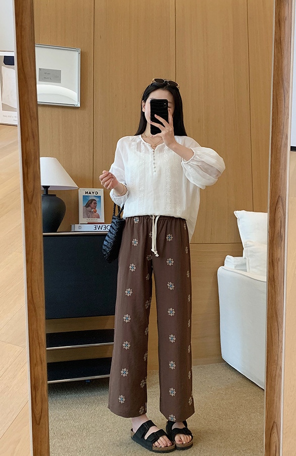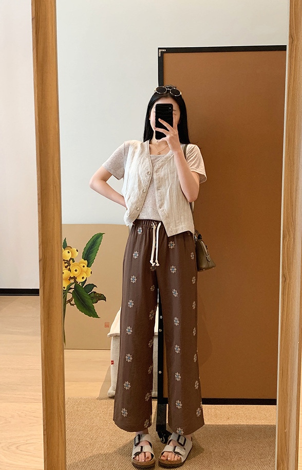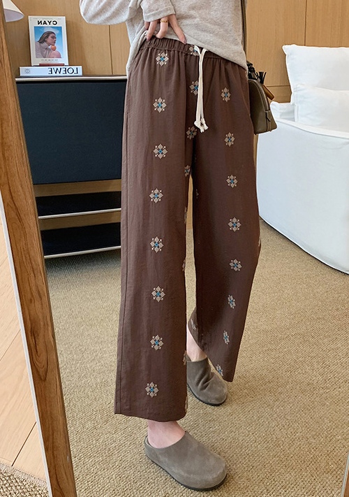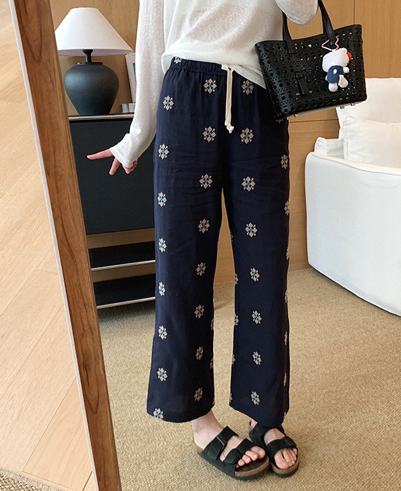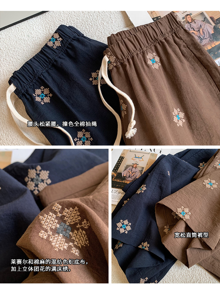 日系重磅定织天丝棉麻绣花九分直筒休闲裤!