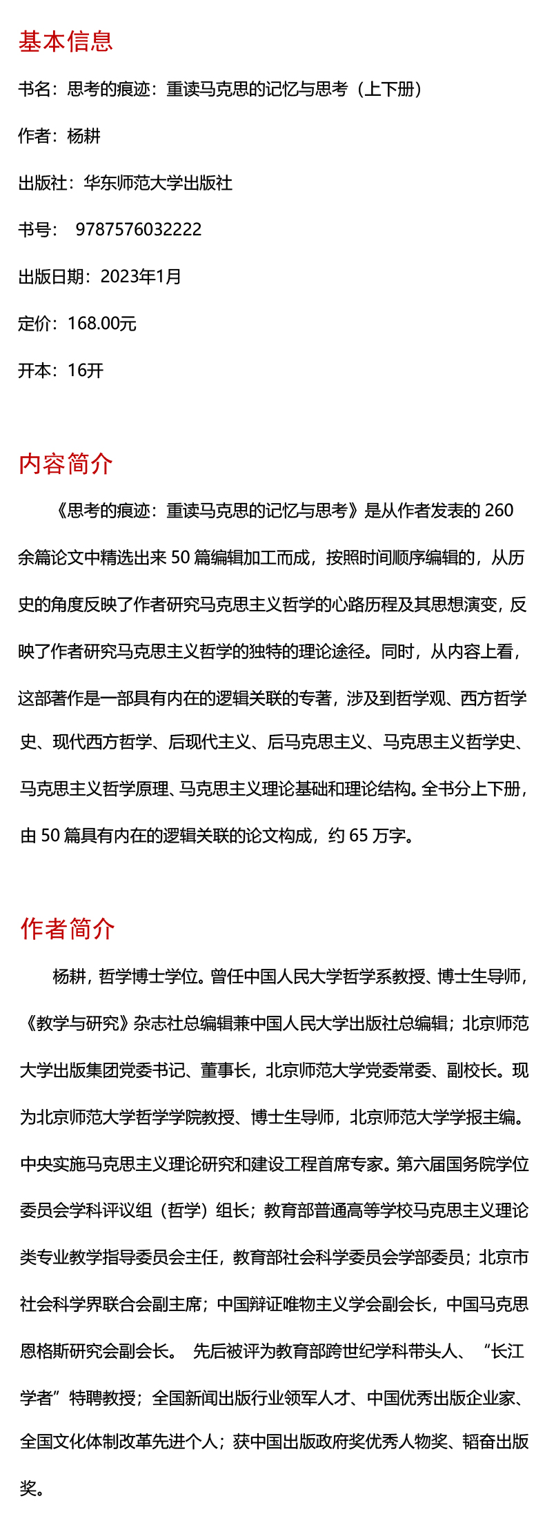 思考的痕迹 重读马克思的记忆与思考 杨耕文集 第8卷 上下册