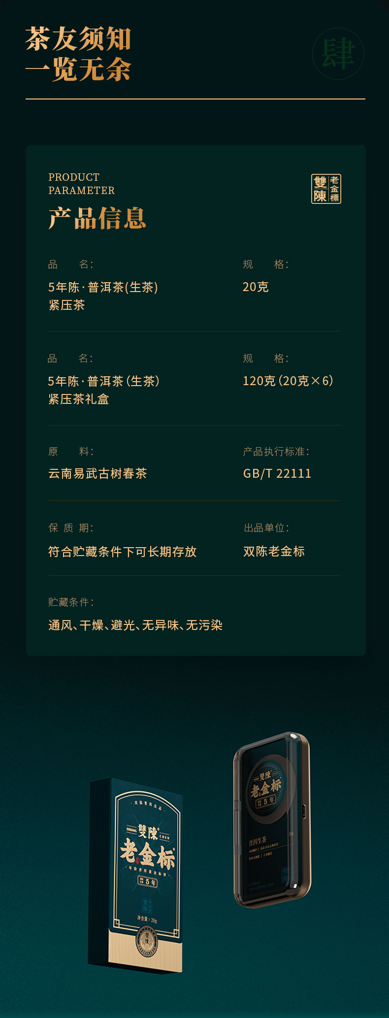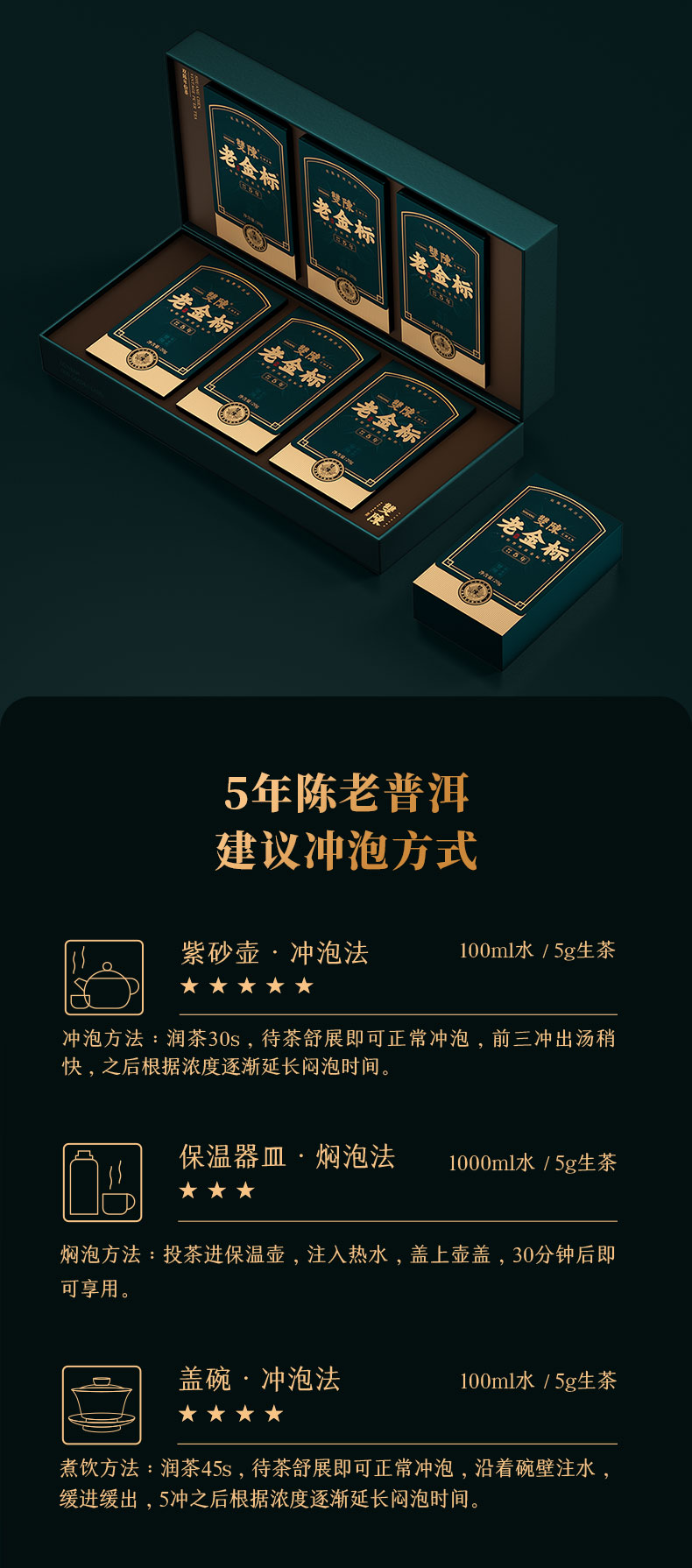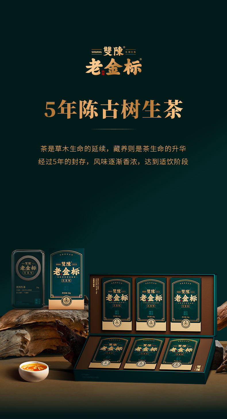 双陈老金标5年陈生茶20g盒云南普洱生茶掰泡装新生活礼盒送礼