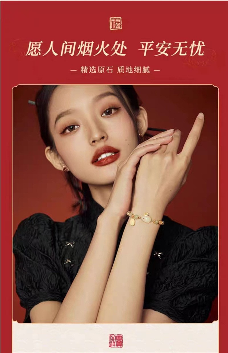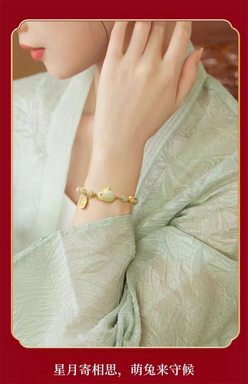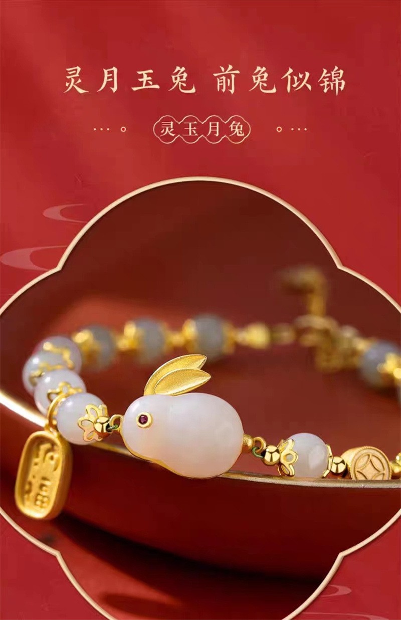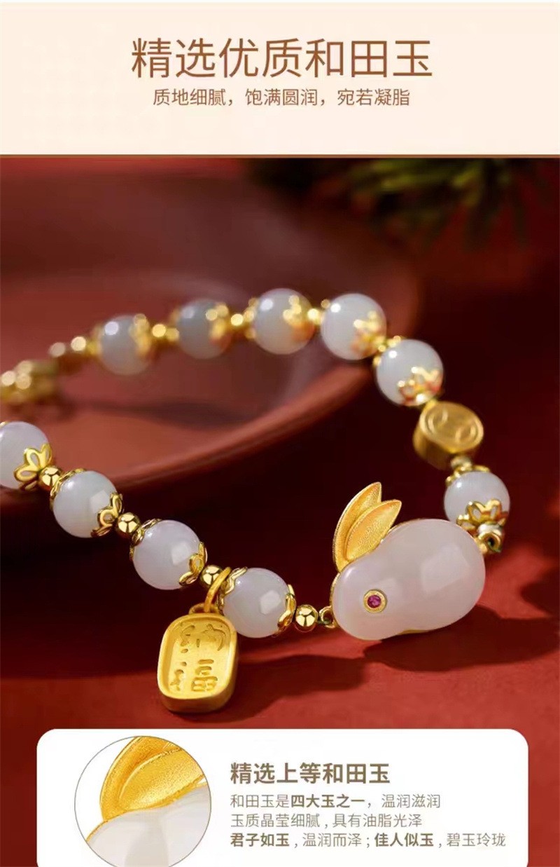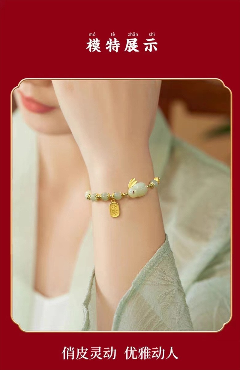 和田玉.月兔手链 灵月精灵 前兔似锦