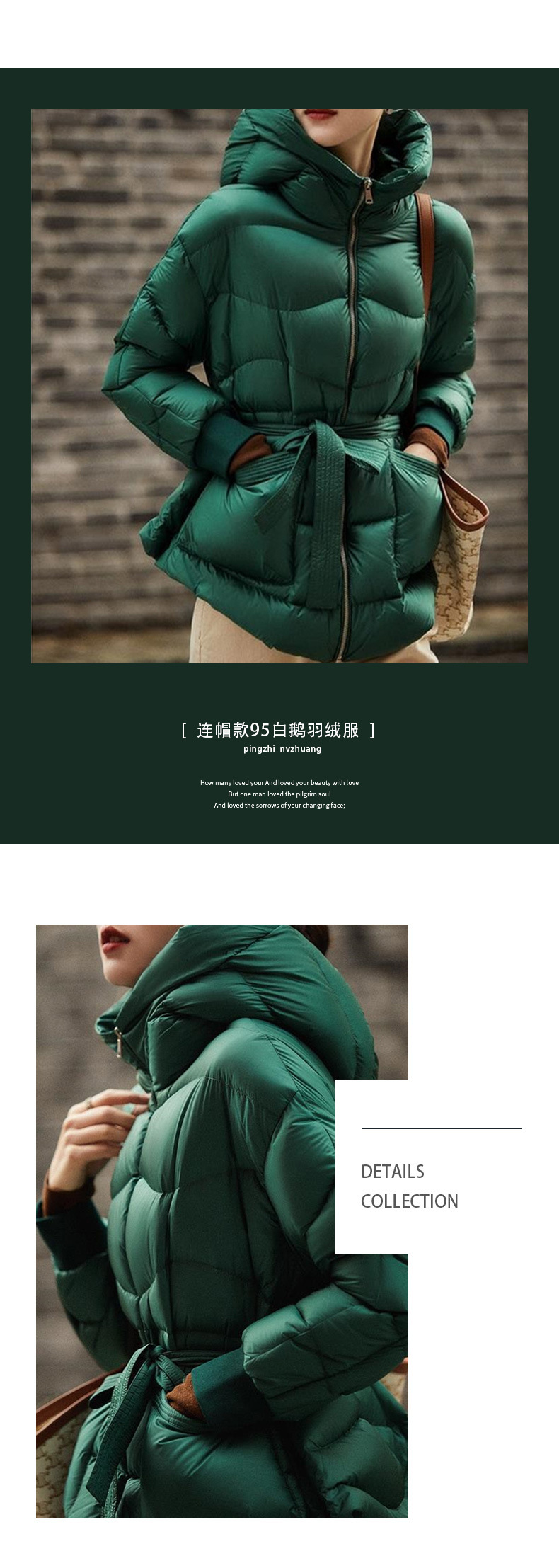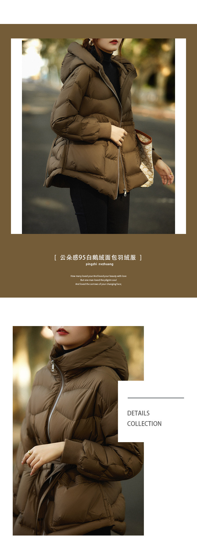 拒绝臃肿收腰轻薄!2024 高端鹅绒服!连帽女款面包服女装95白鹅绒羽绒服!