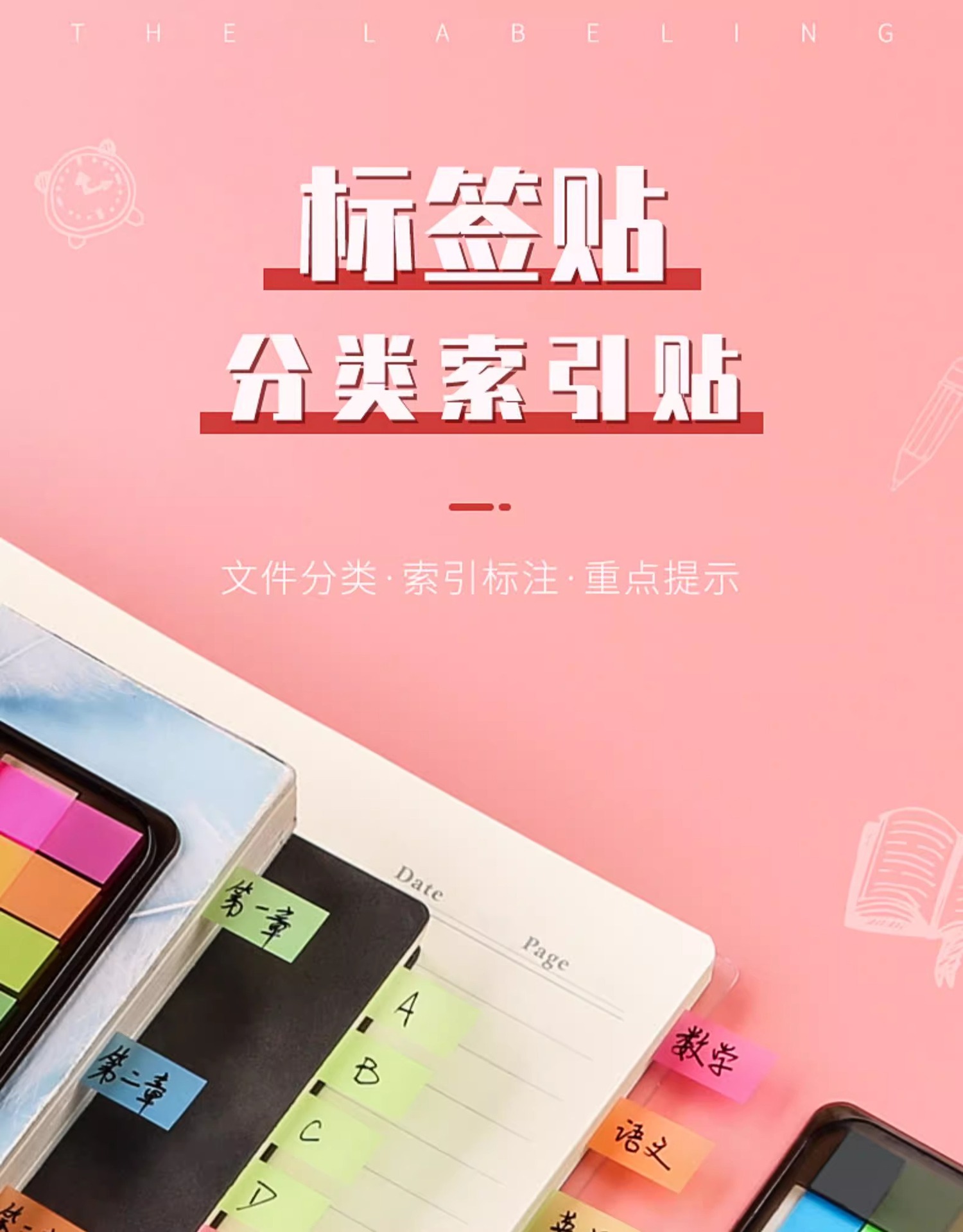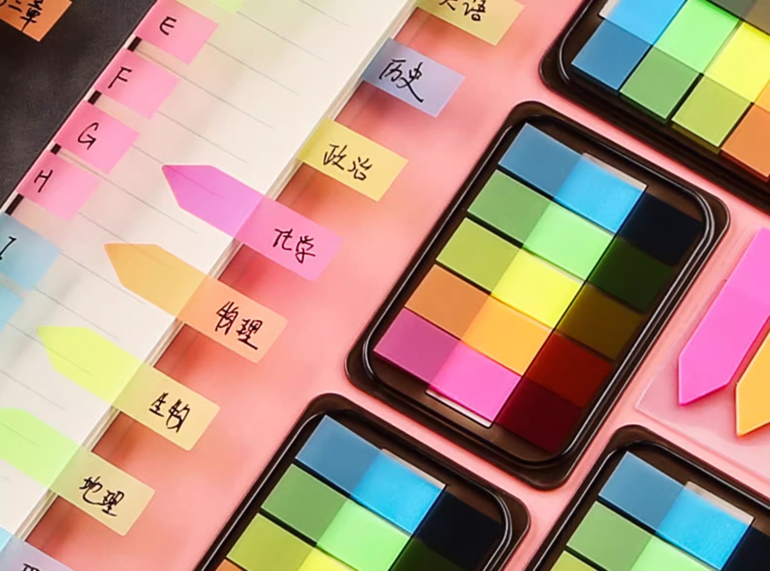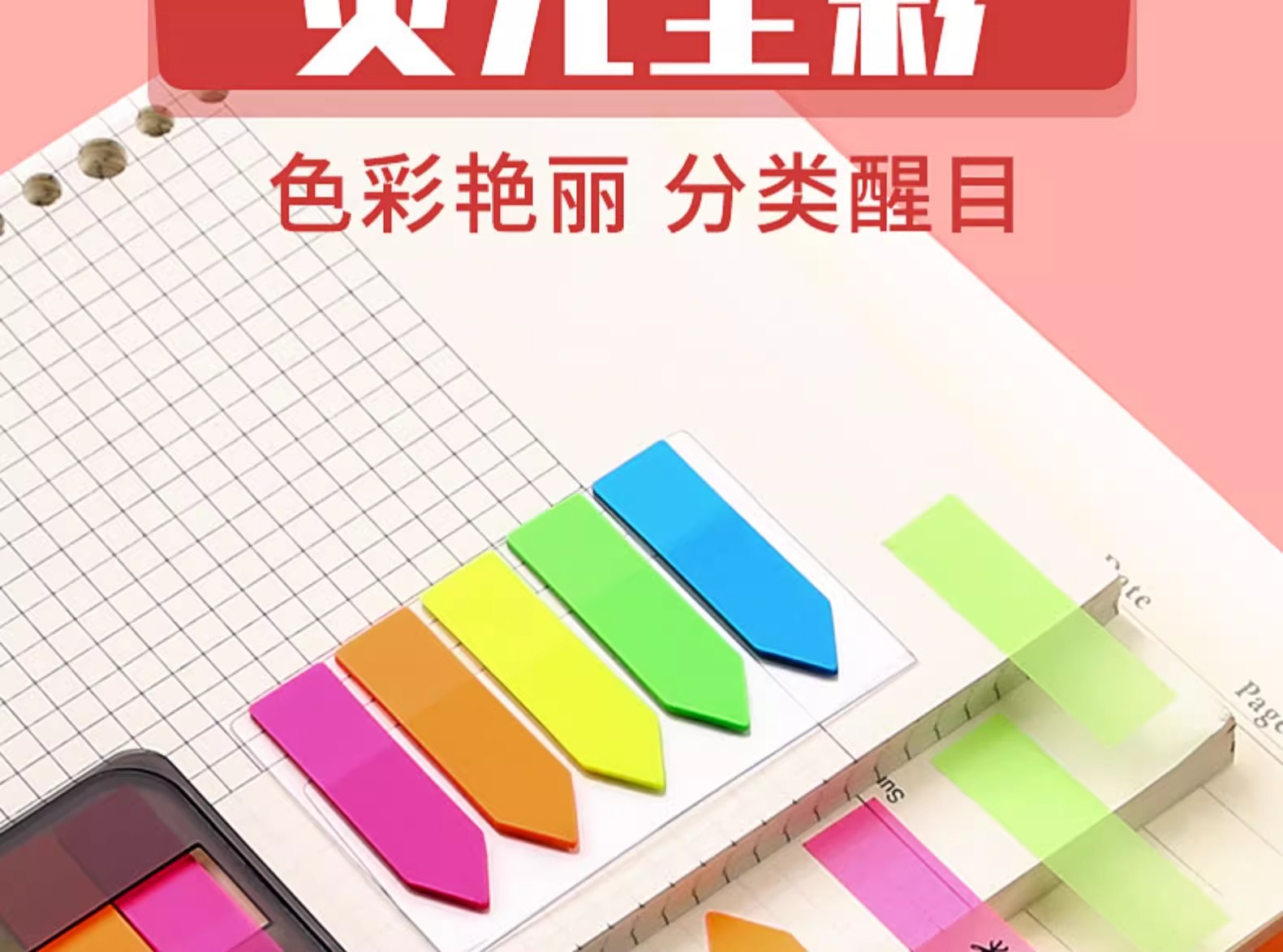 【秒杀9.9抢❗️6包600张🔥荧光膜指示标签便利贴】 索引贴小条笔记重点,透明彩色指示贴办公用荧光贴,标记分页码便签贴L