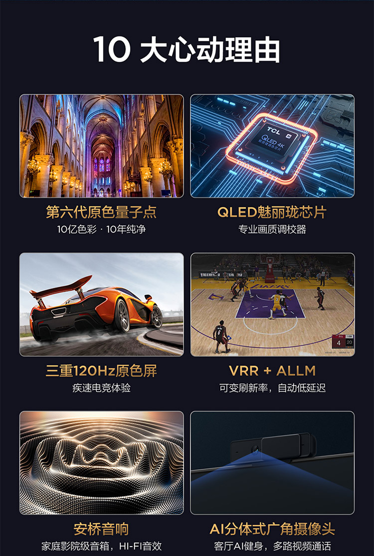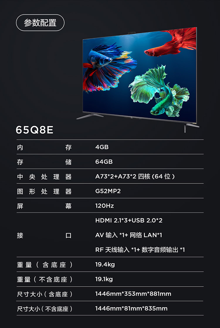 TCL 65Q8E 65英寸 QLED原色量子点游戏社交智屏电视
