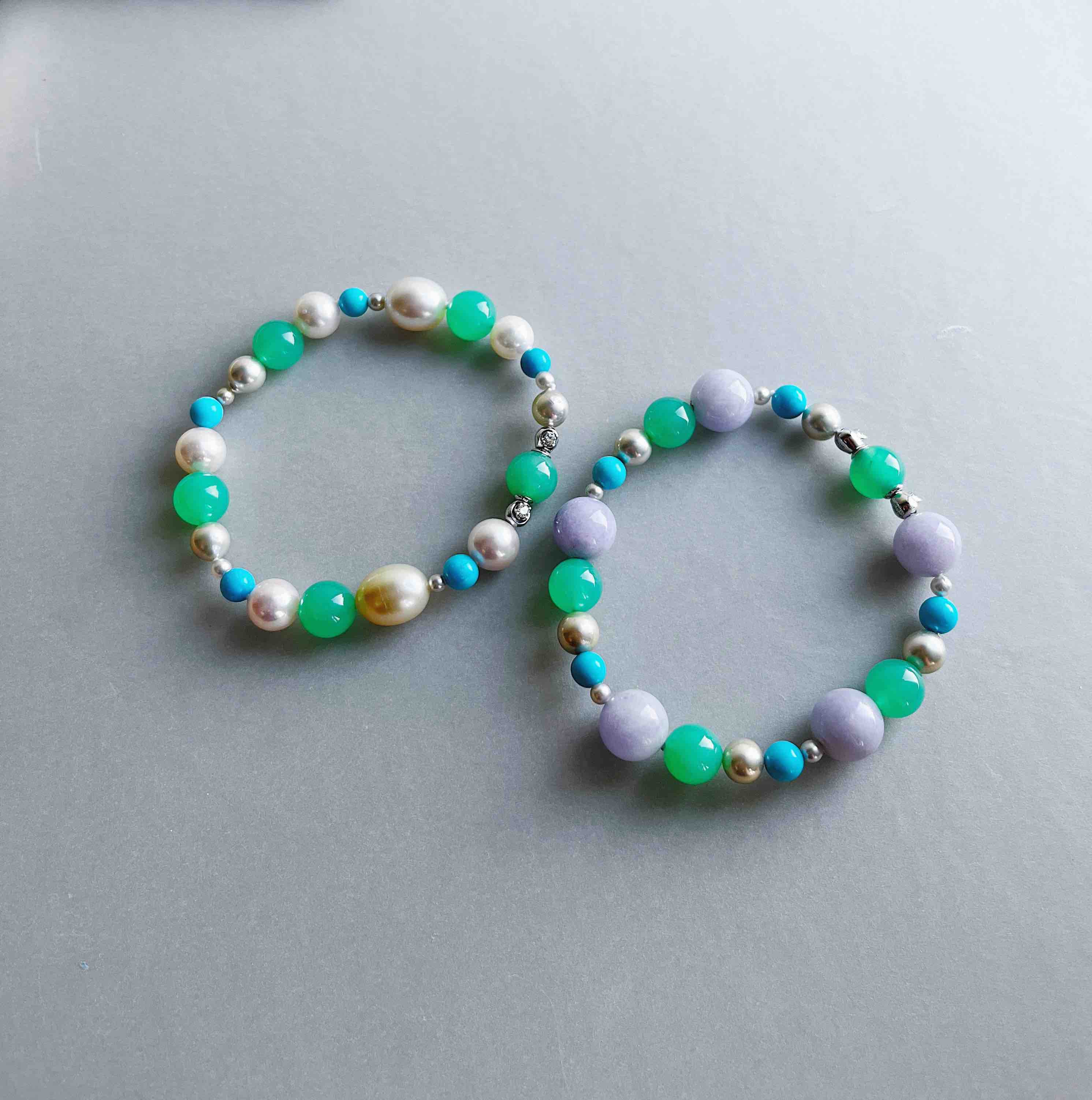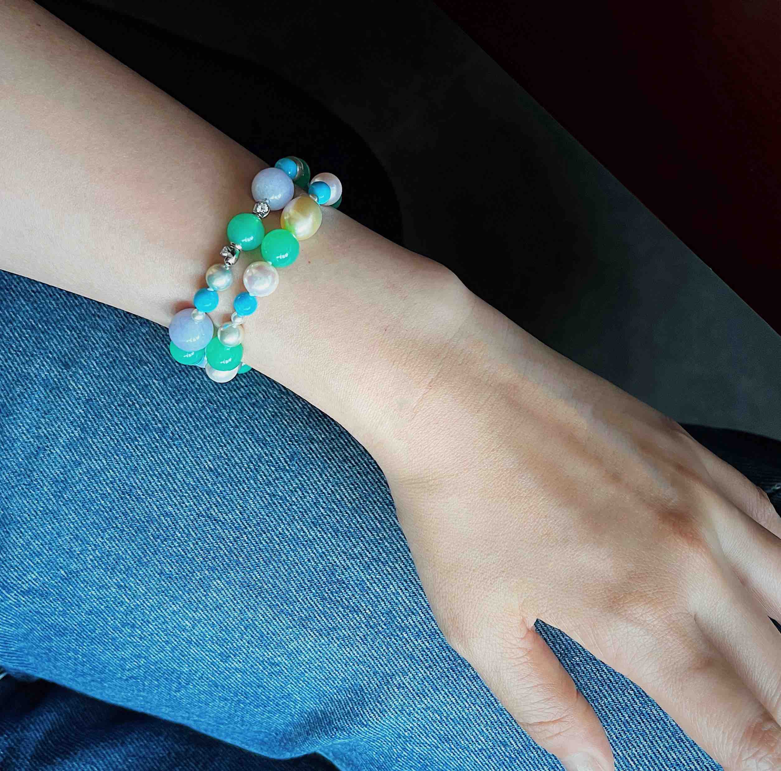 BY EVITA系列 INFINITY 18K镶钻石、翡翠、玉髓、松石、AKOYA和南洋珠 手链套装
