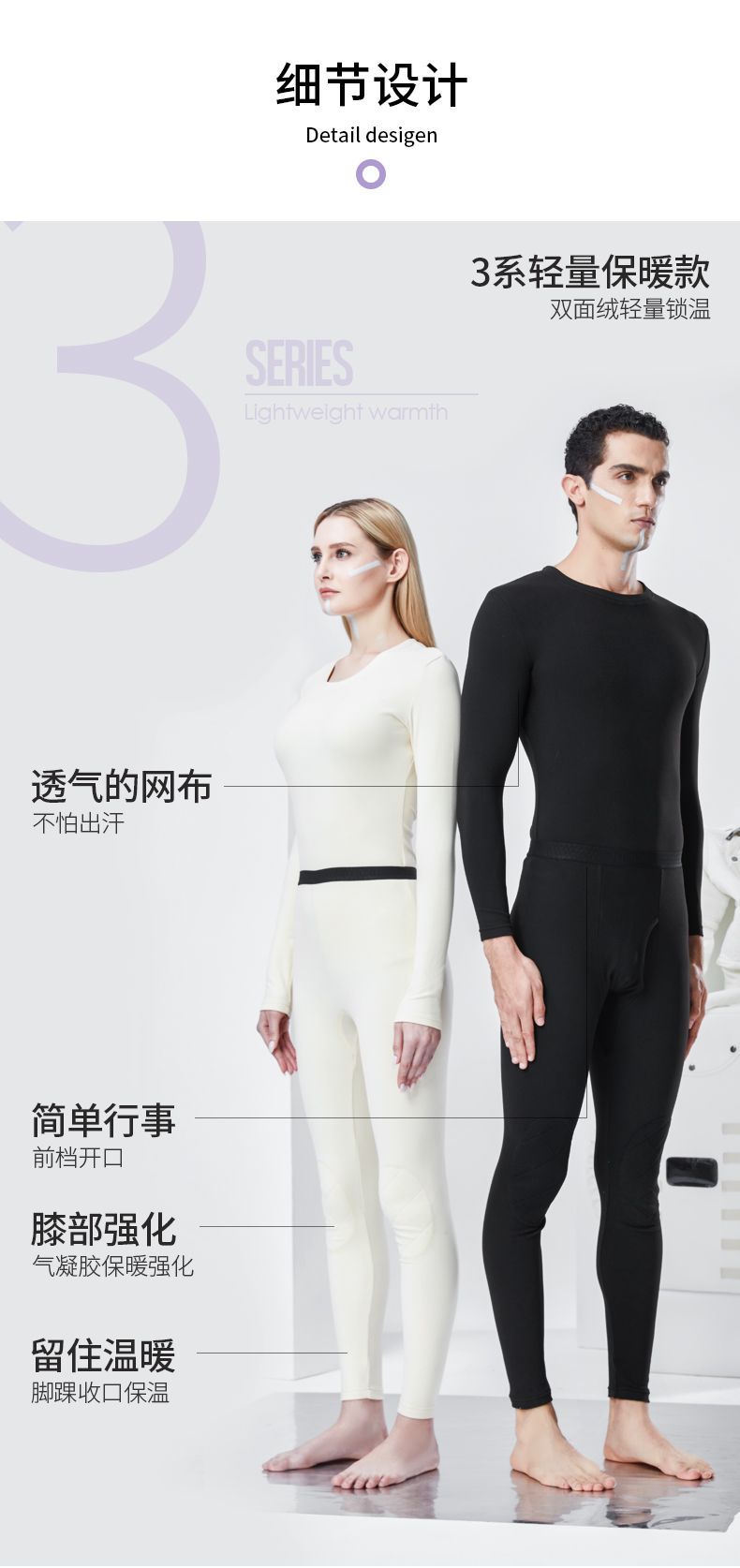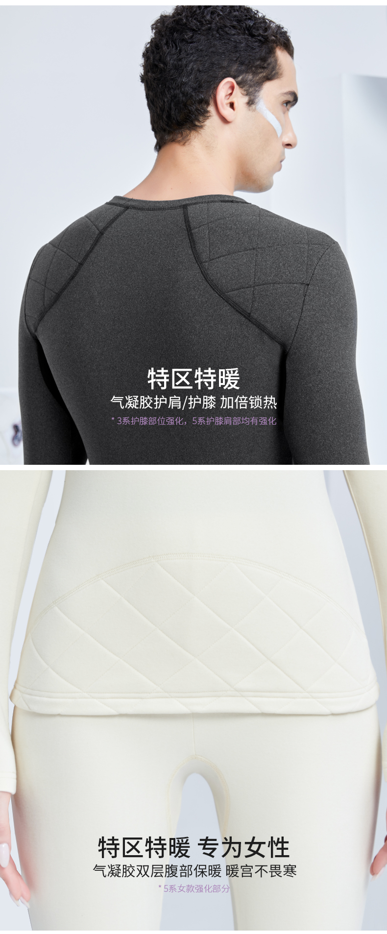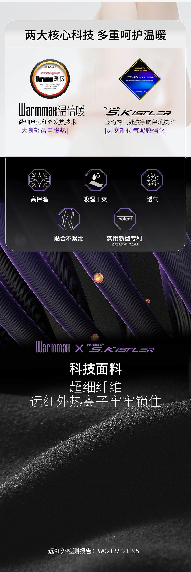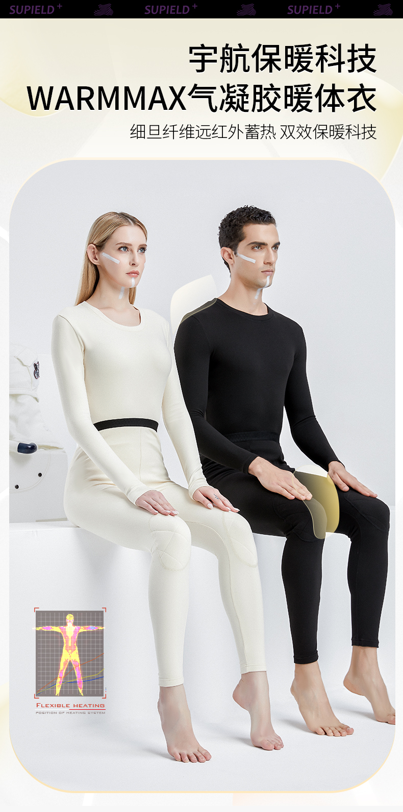 【宇航保暖科技 双面绒加倍锁热】素湃SUPIELD温倍暖气凝胶保暖内衣 吸湿速干 防静电 肩部膝盖强化保暖(W301/W302/W501/W502)