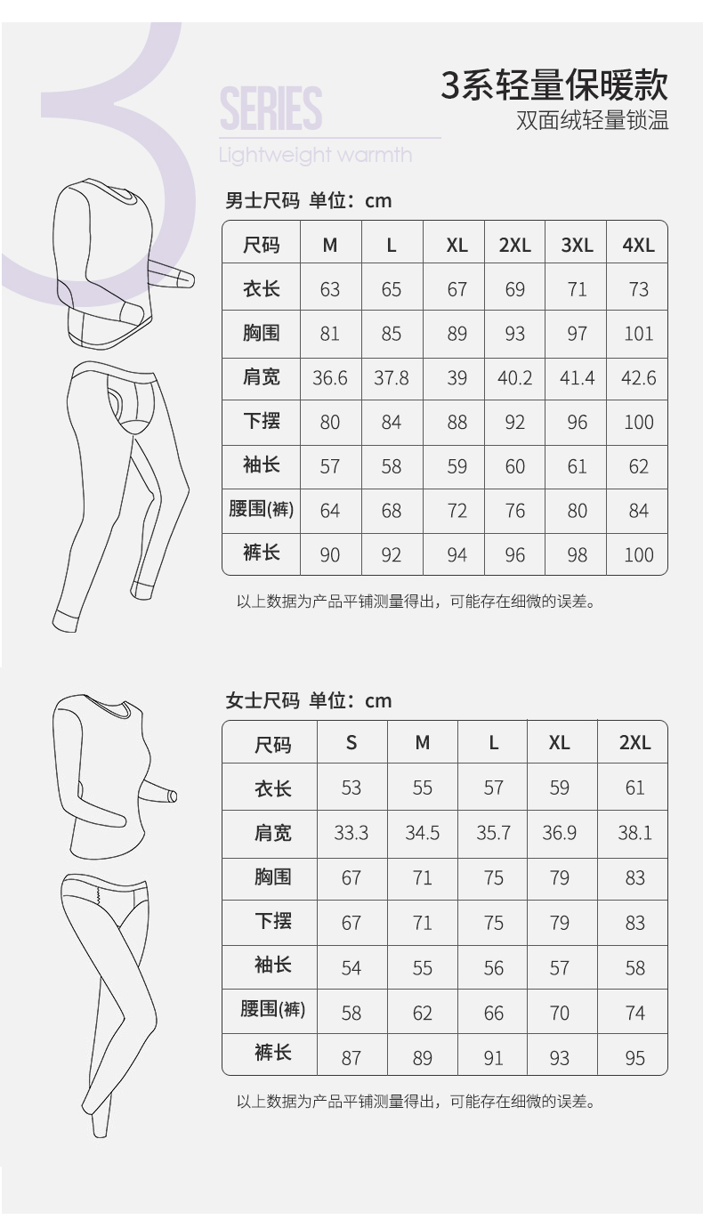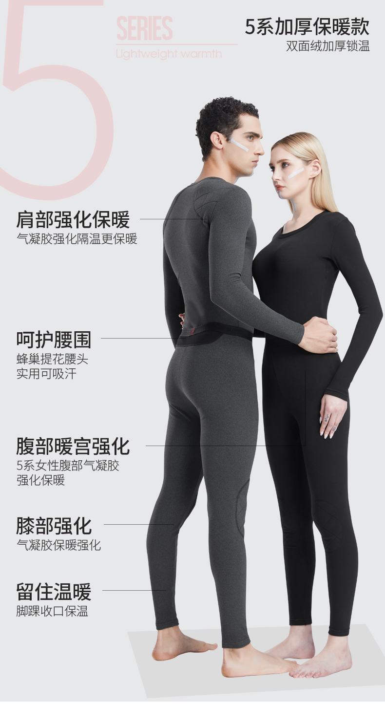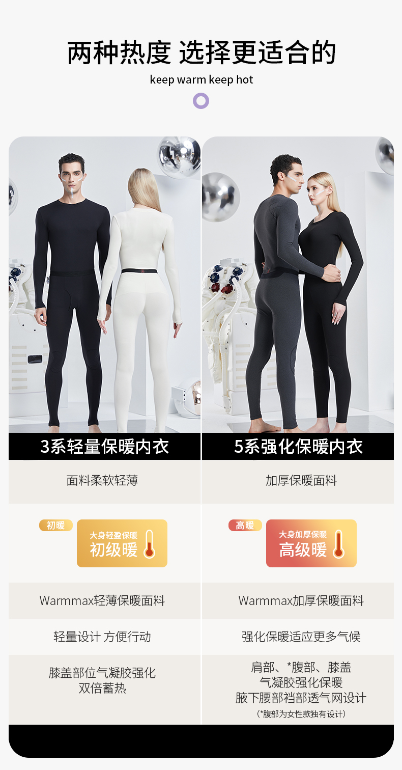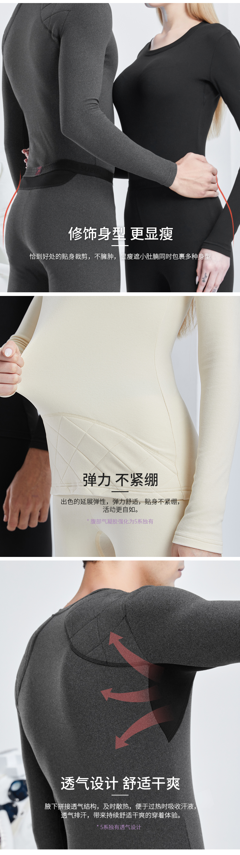 【宇航保暖科技 双面绒加倍锁热】素湃SUPIELD温倍暖气凝胶保暖内衣 吸湿速干 防静电 肩部膝盖强化保暖(W301/W302/W501/W502)