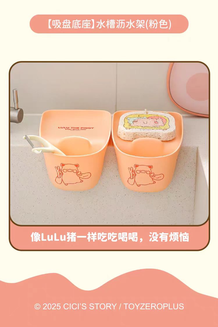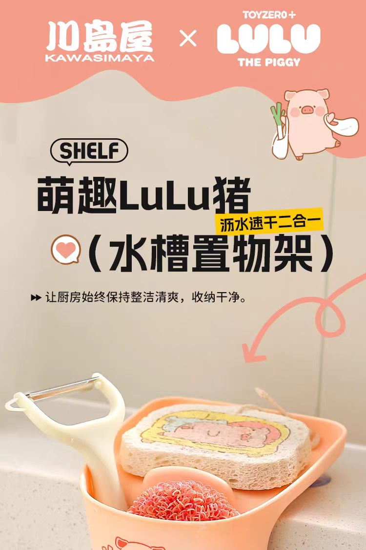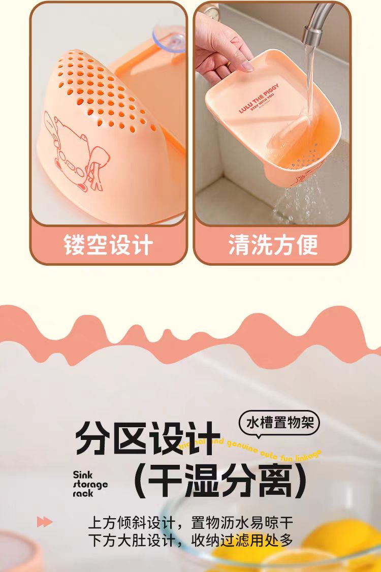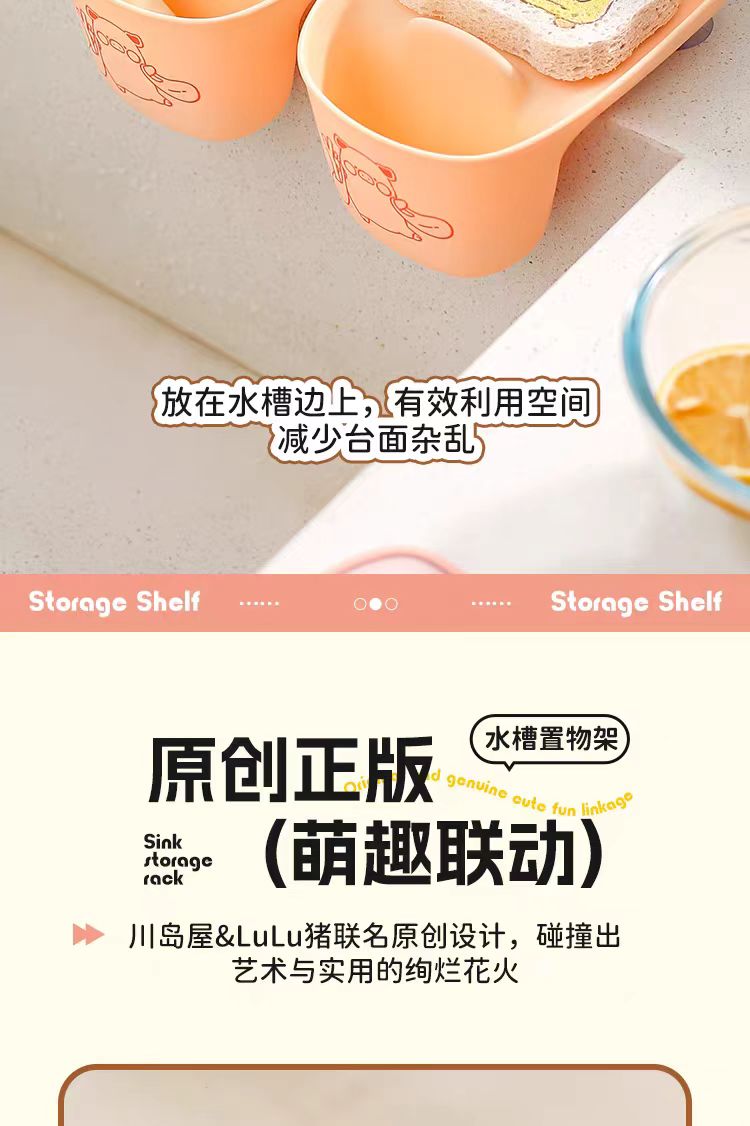 4楼Eubelle欧蓓 川岛屋&lulu猪联名 水槽置物架厨房 粉色 活动价:19.9元