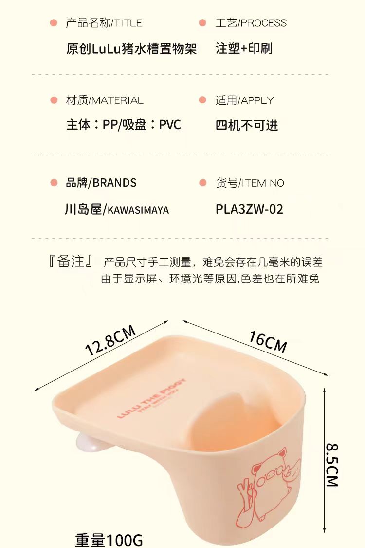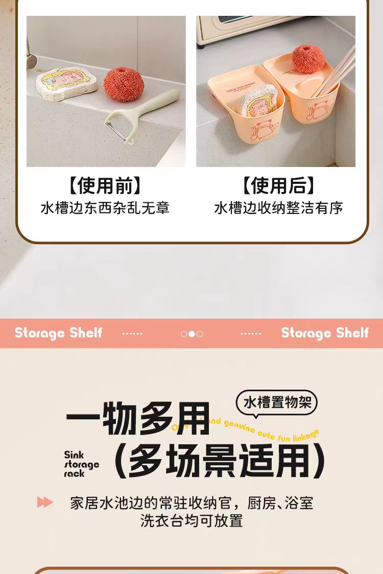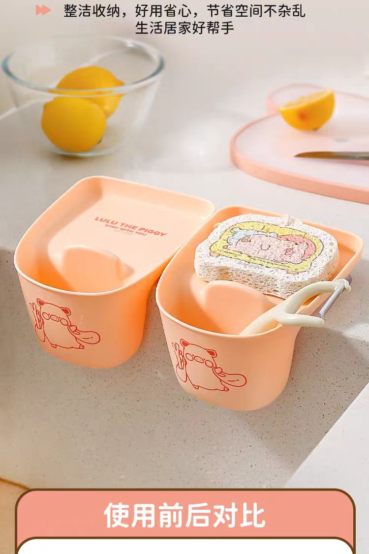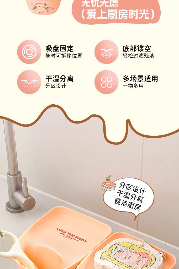 4楼Eubelle欧蓓 川岛屋&lulu猪联名 水槽置物架厨房 粉色 活动价:19.9元