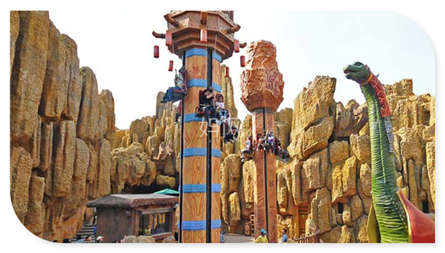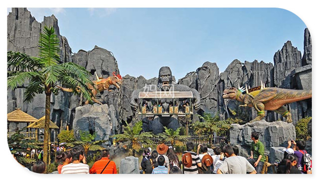 陡峭的峡谷间翼龙展翅翱翔,力量和勇气是这区的代表词!70多座集高科技和恐龙主题的惊险项目让喜欢刺激的年轻群体们,大呼过瘾。