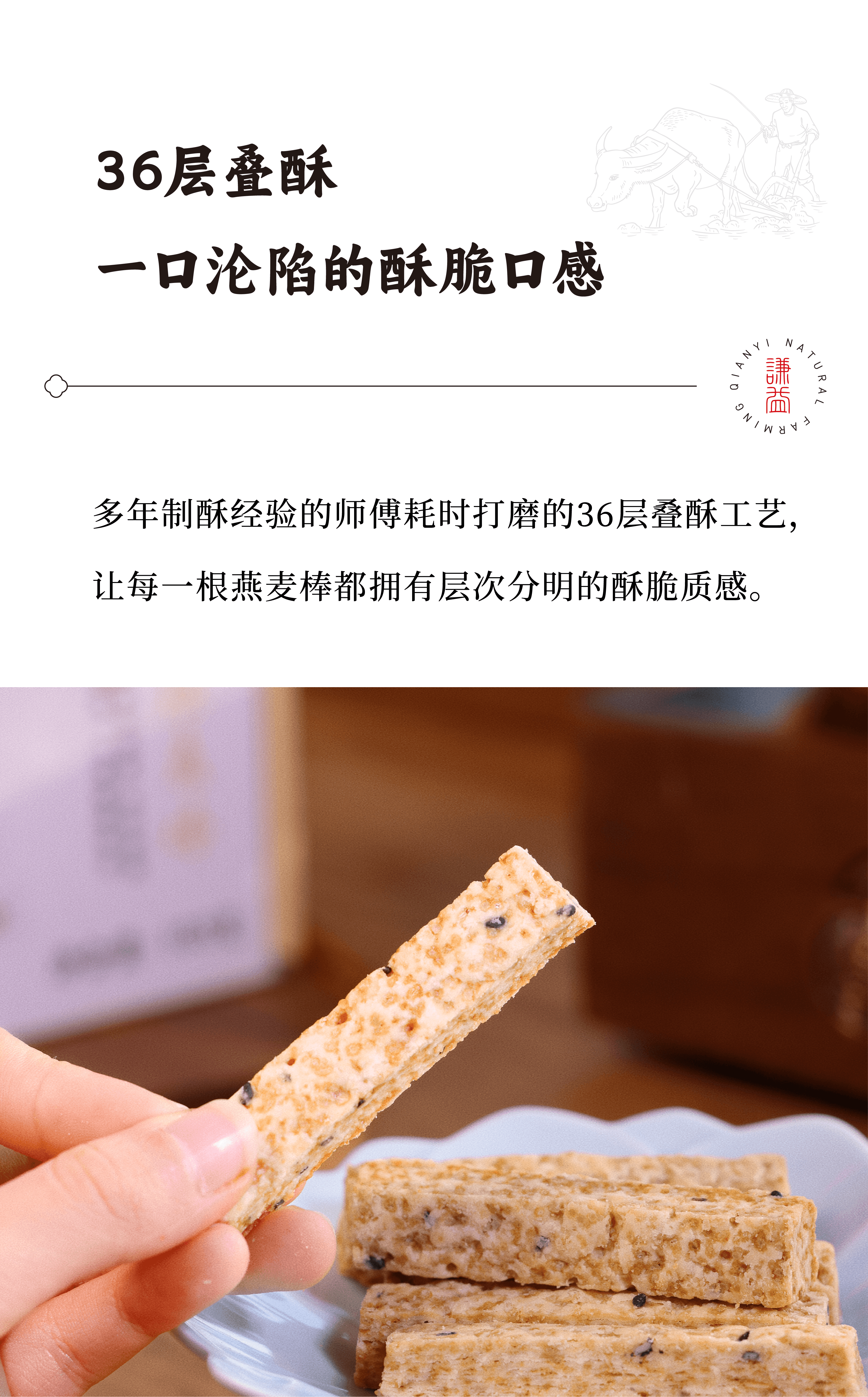 【新品】谦益香畴椰香燕麦棒105g,36层酥脆不甜腻 天然椰子油 醇香回味 (内置独立小袋装携带方便)