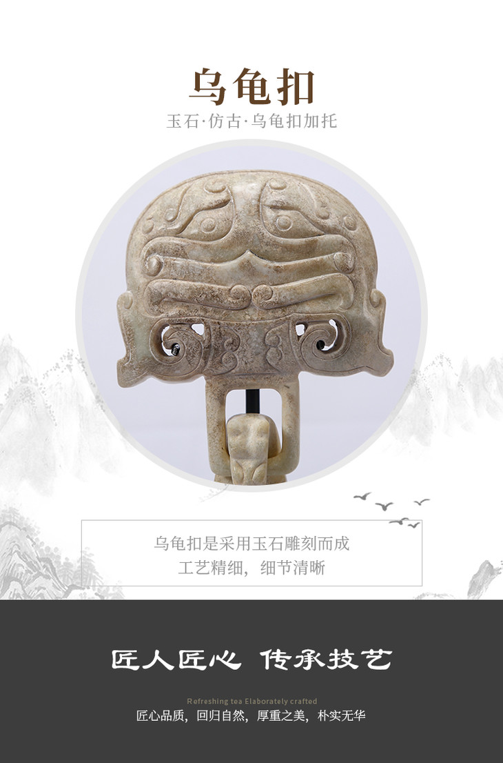 雕刻玉石乌龟扣长寿龟摆件乌龟家居软装饰品中式