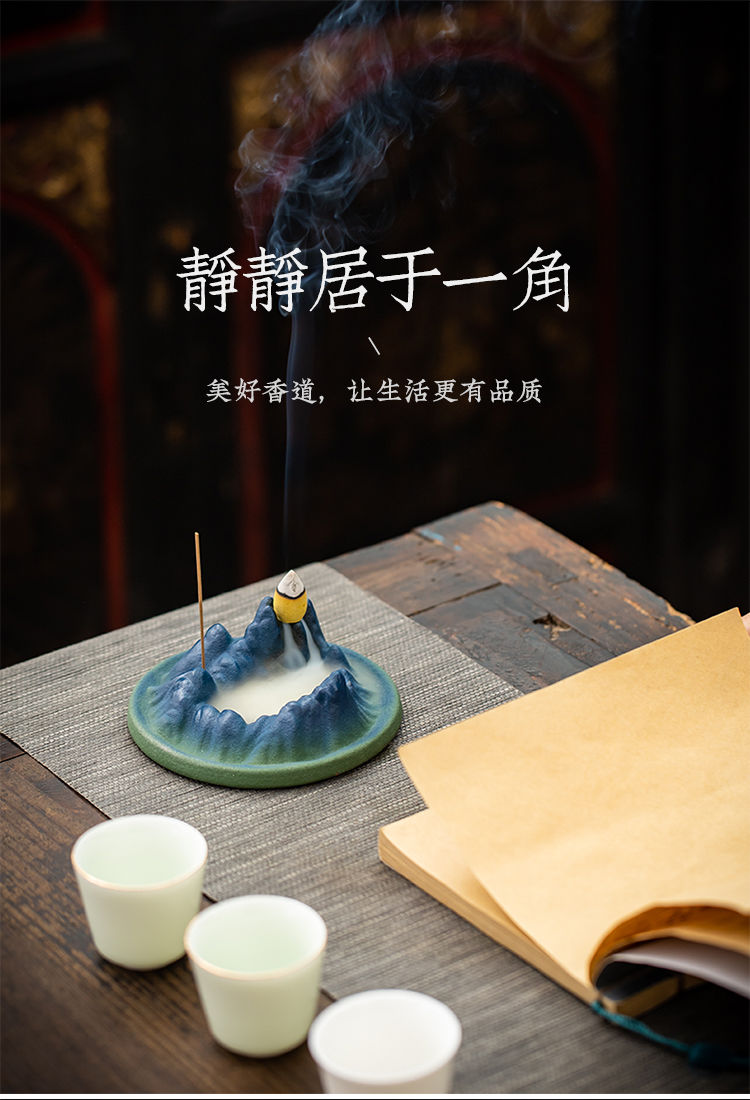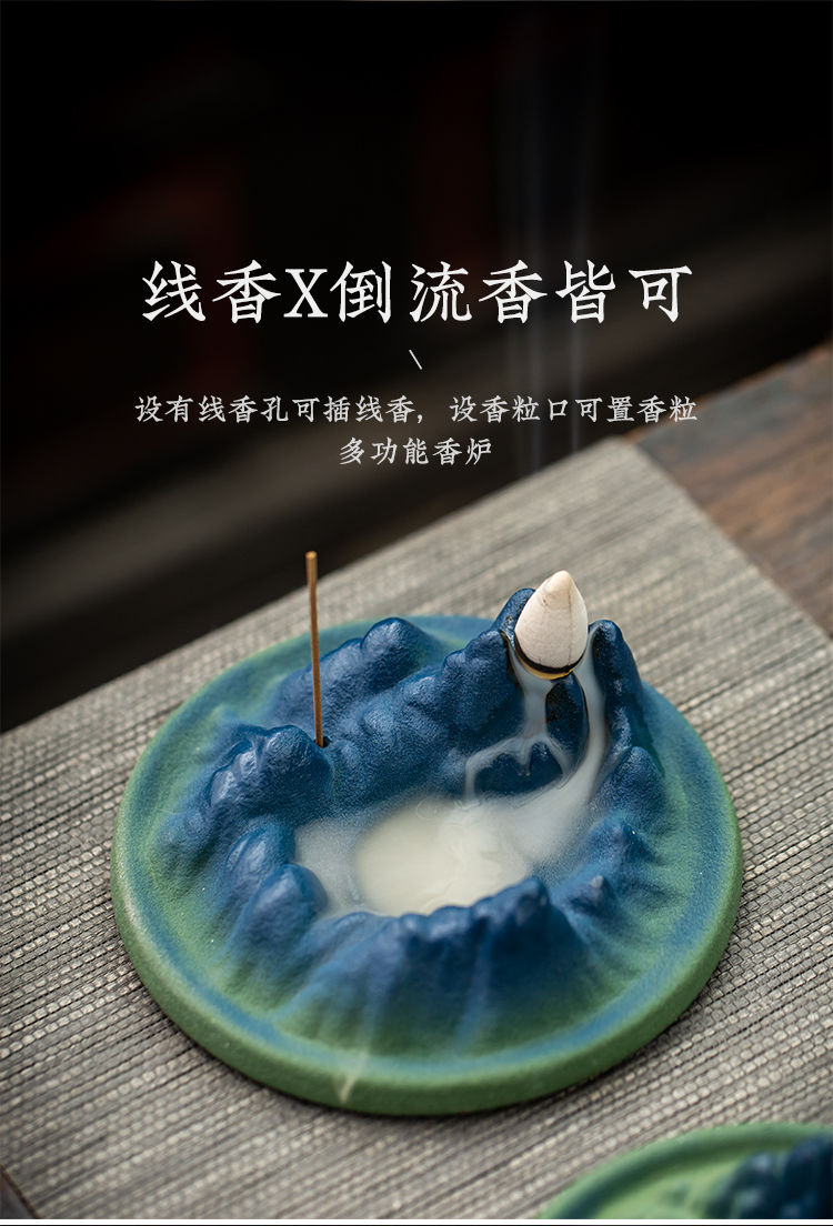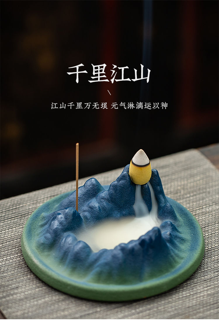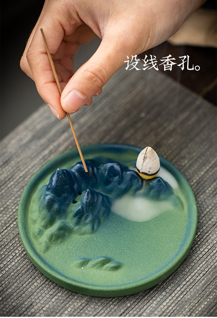 千里江山陶瓷线香插倒流香炉家用室内香薰炉禅意书房茶桌香座摆件