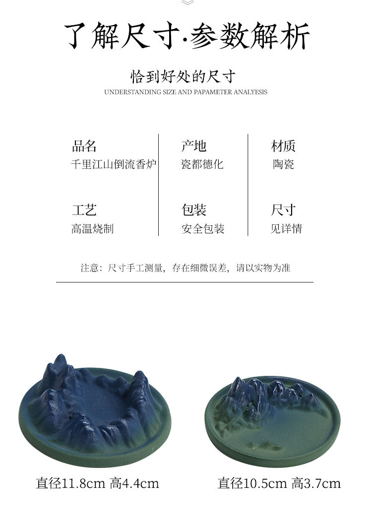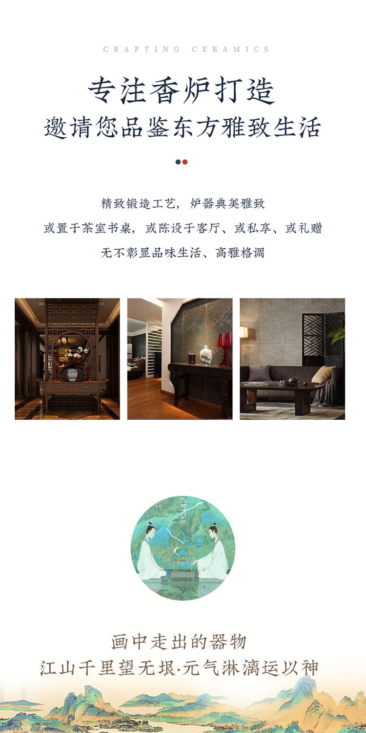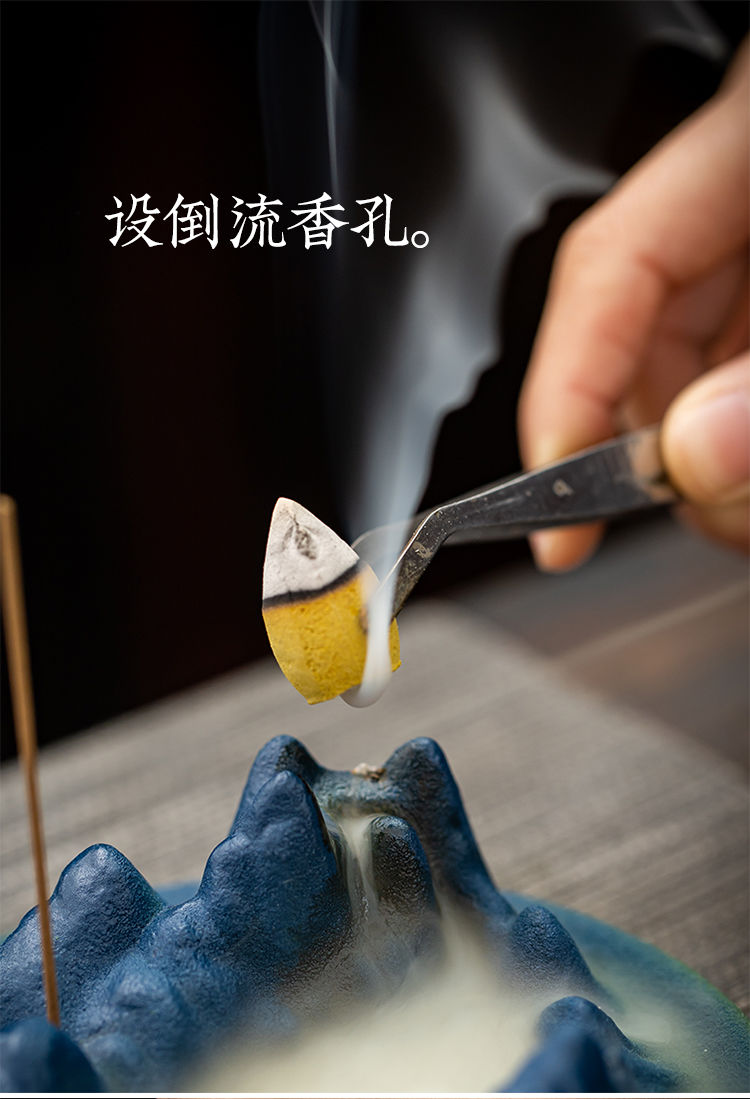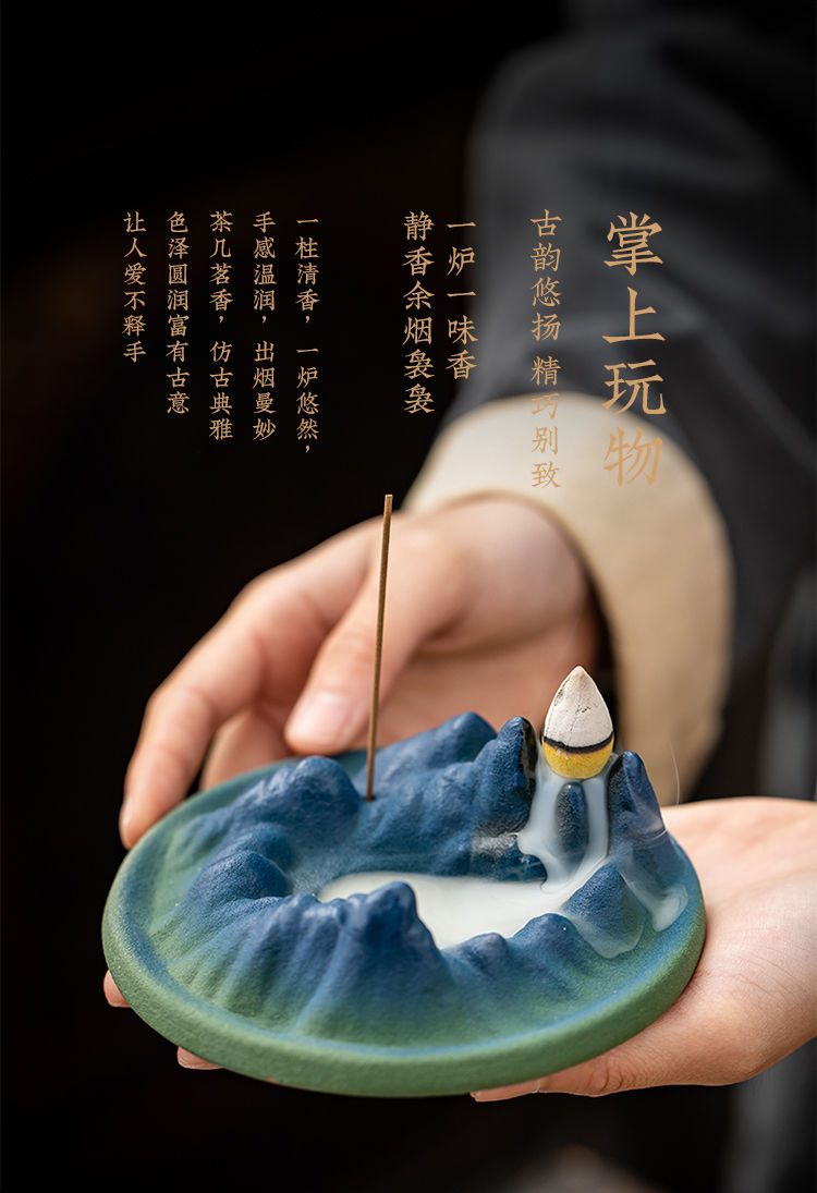 千里江山陶瓷线香插倒流香炉家用室内香薰炉禅意书房茶桌香座摆件