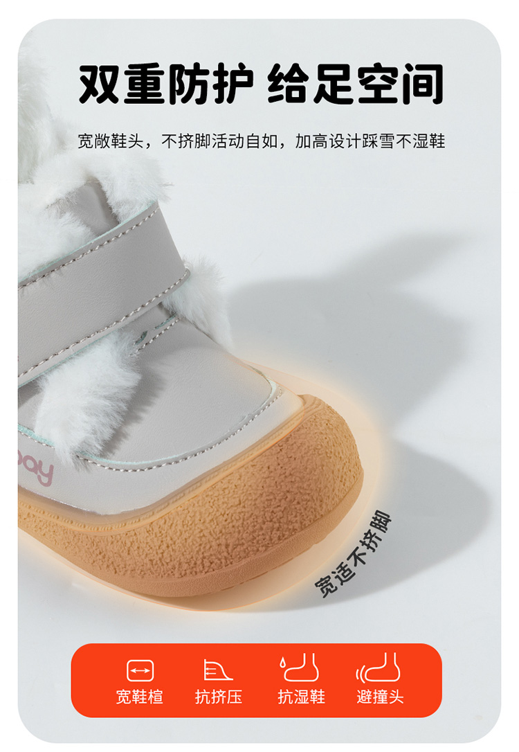 贝贝怡【加绒保暖】儿童棉鞋秋冬季高帮休闲鞋保暖婴童鞋雪地鞋学步鞋ZB4DX008
