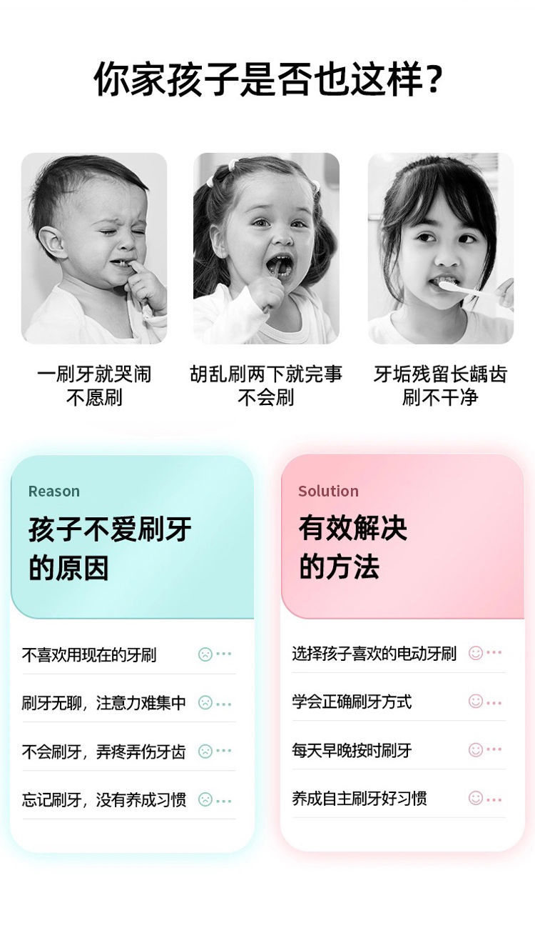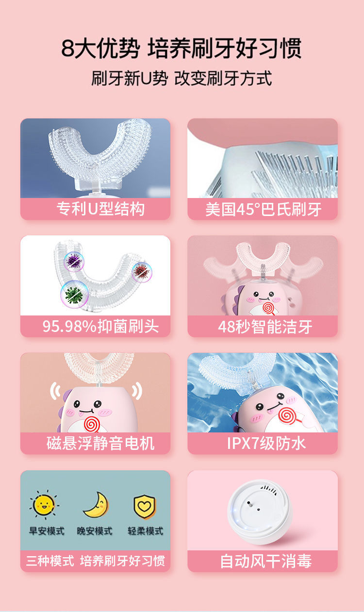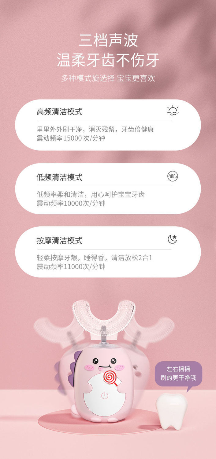 自动风干更卫生 纳米u型软毛牙刷 I 儿童电动牙刷防水充电3-12岁乳牙刷