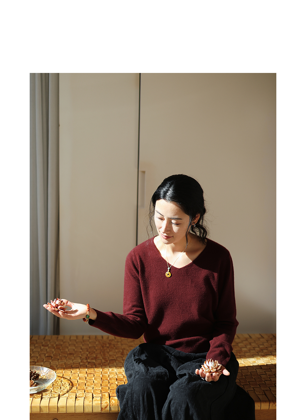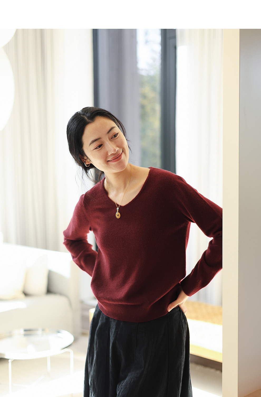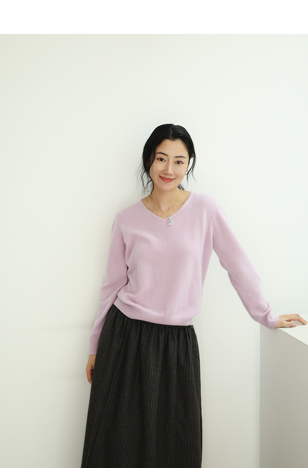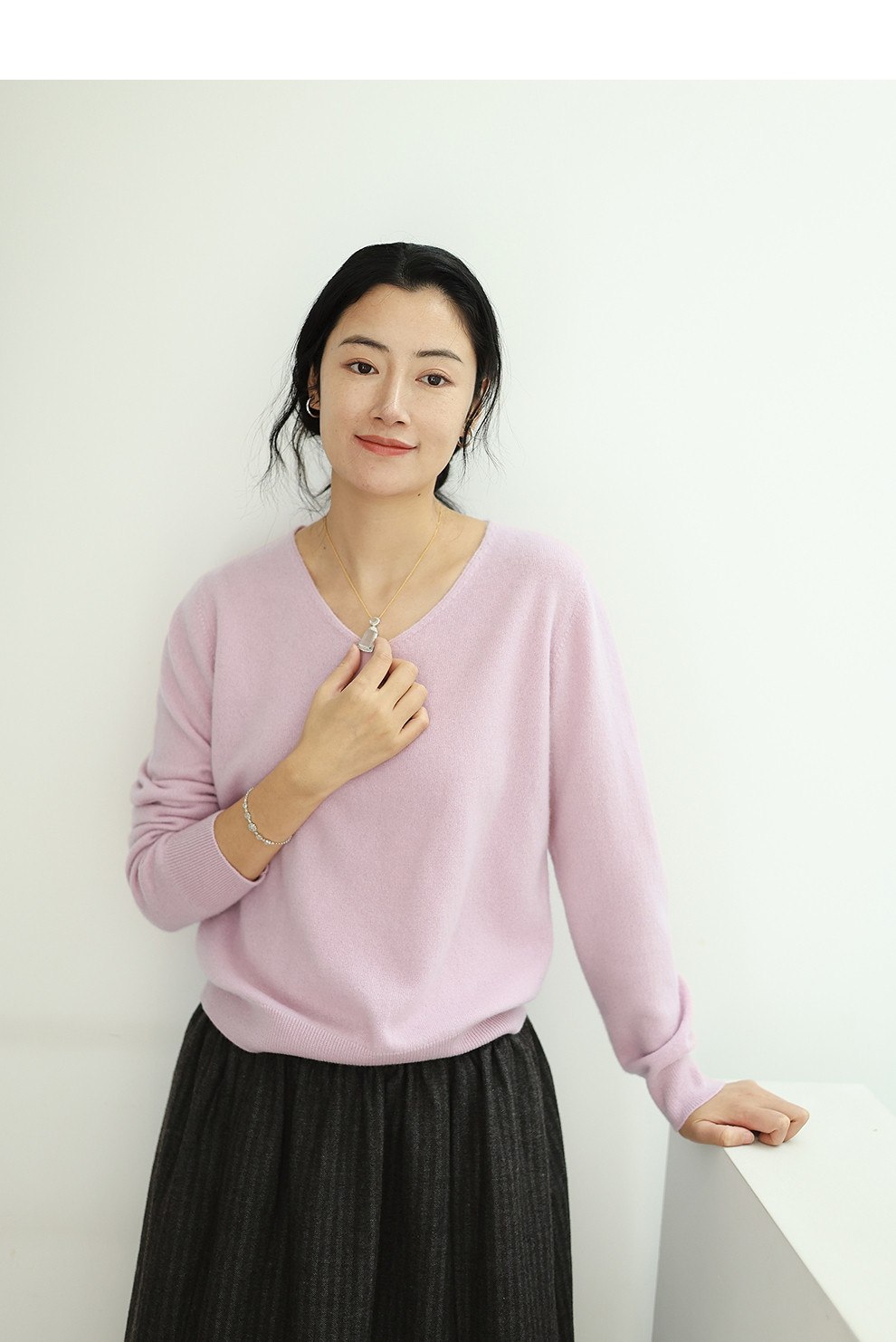 绽放872朵/纯山羊绒毛衫女v领羊绒套头毛针织衫2025冬季新款毛衣