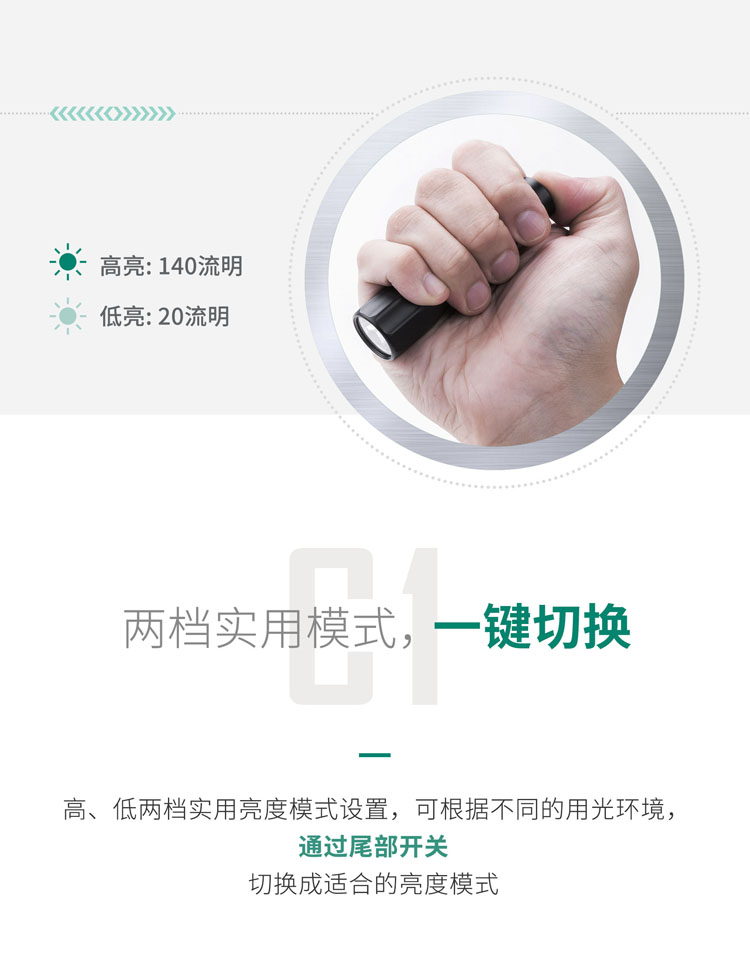纳丽德 C1家居日用手电筒强光高亮家用户外露营应急防灾
