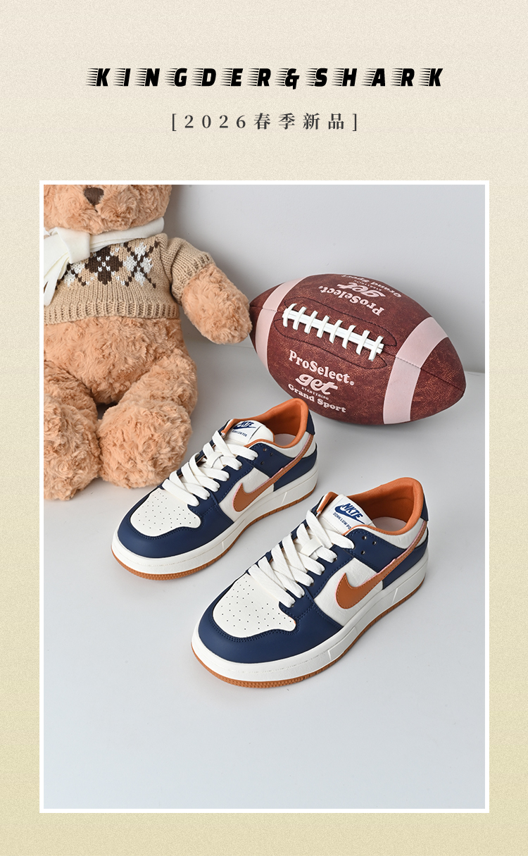 经典鲨2026年春专柜新款时尚拼色系带平底透气休闲鞋板鞋女KW387-617011