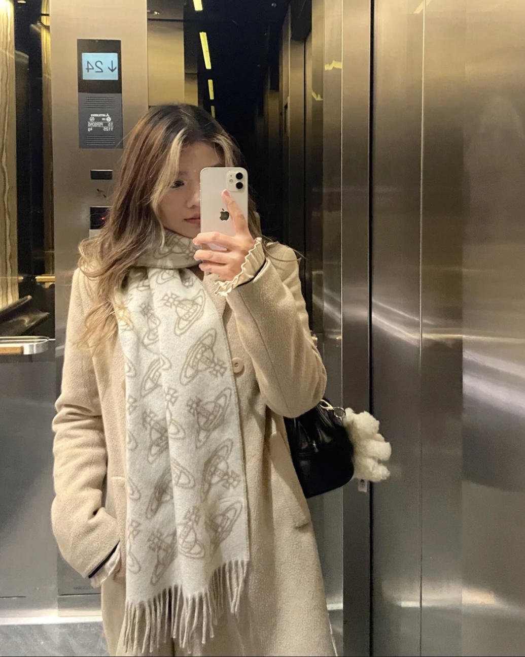 西太后奶茶色围巾星球双面羊毛Dlogo围巾来啦~戴上它秋冬的氛围感一下子就有了*