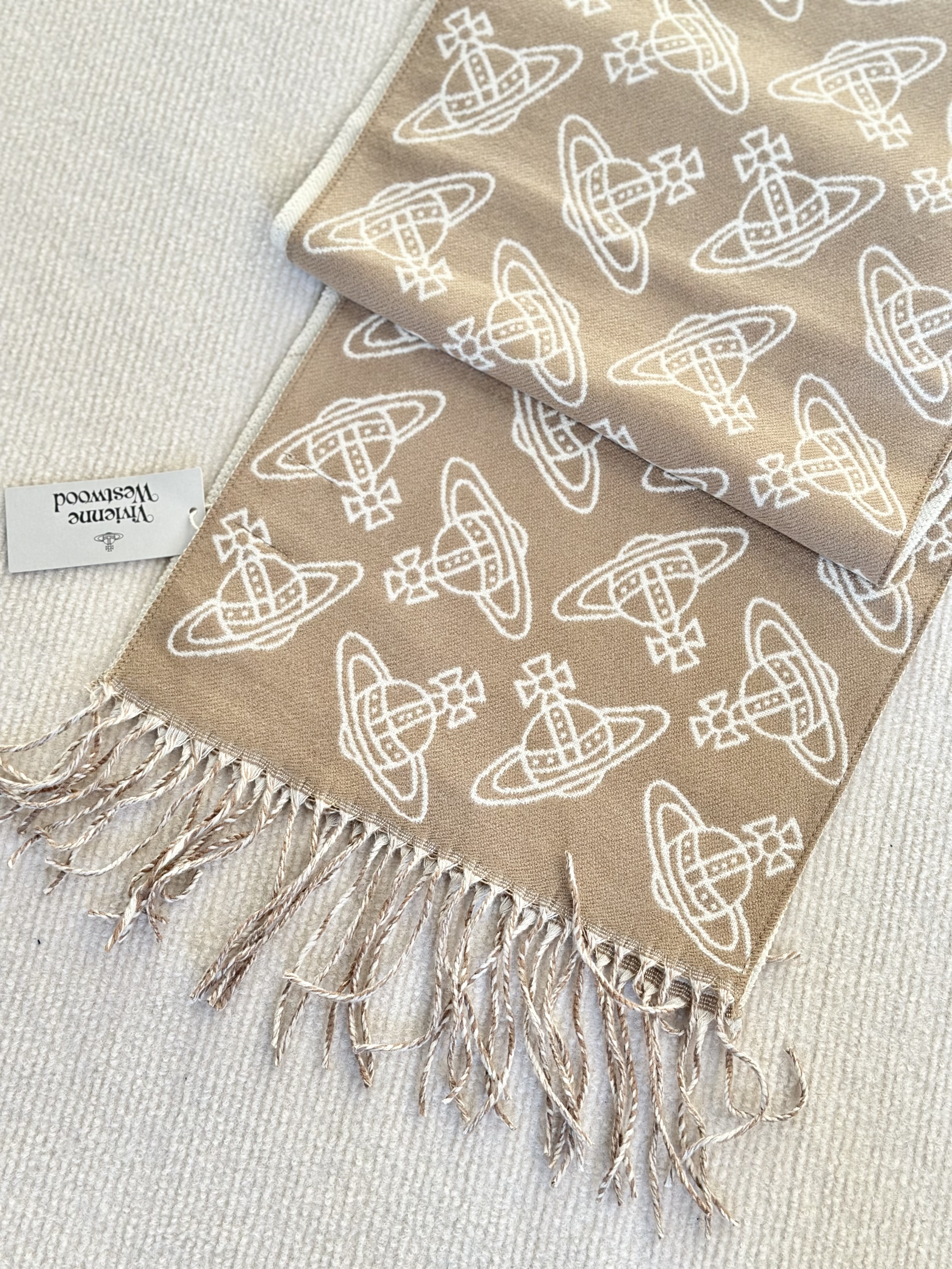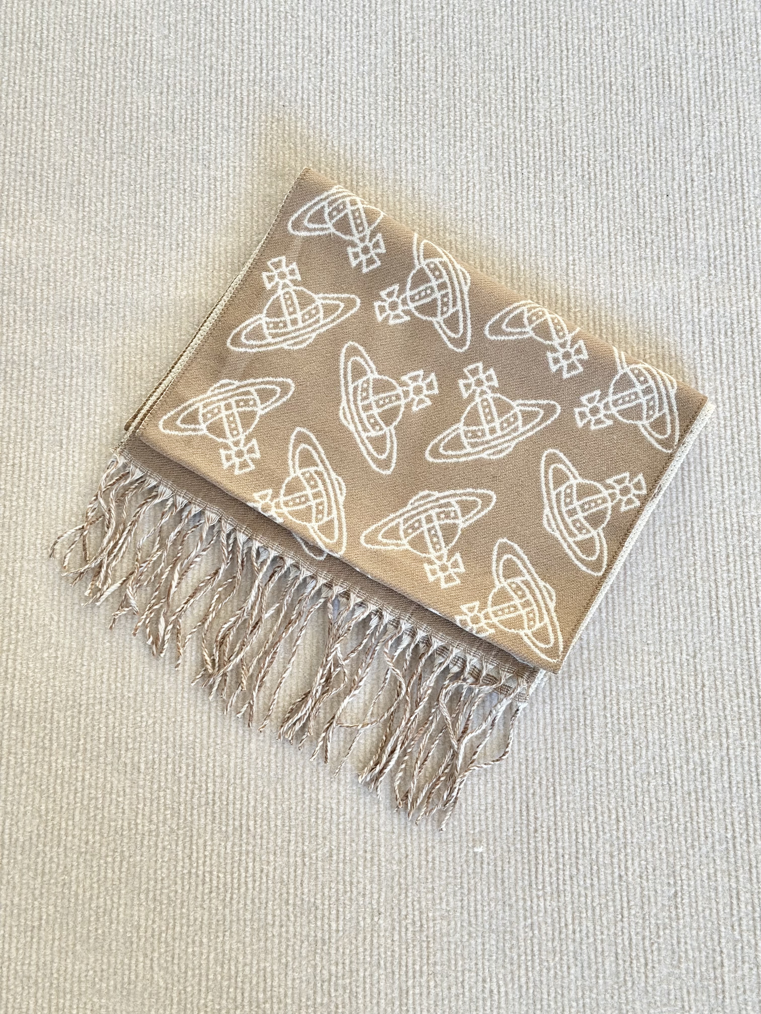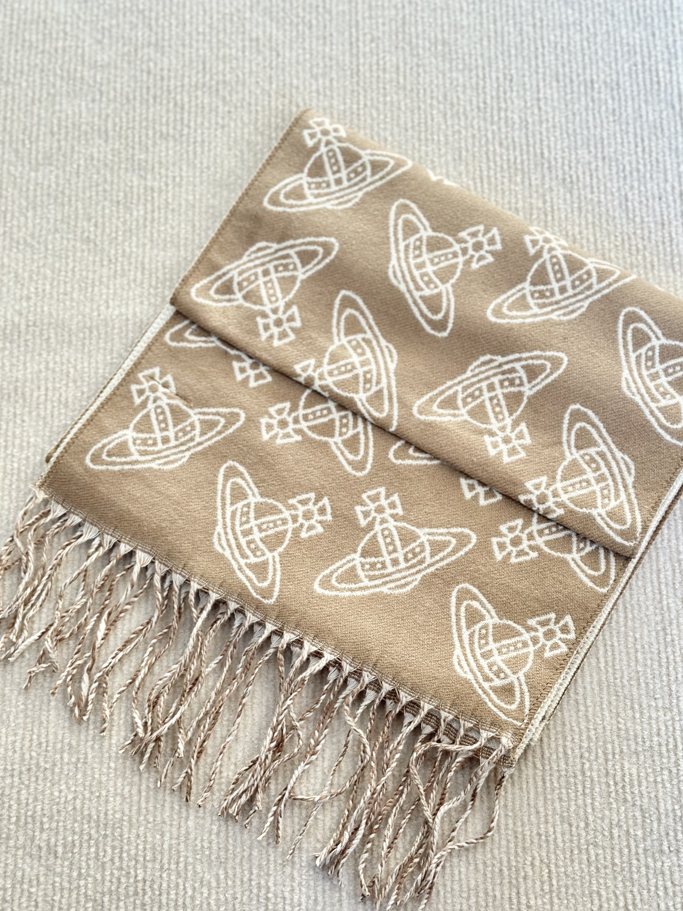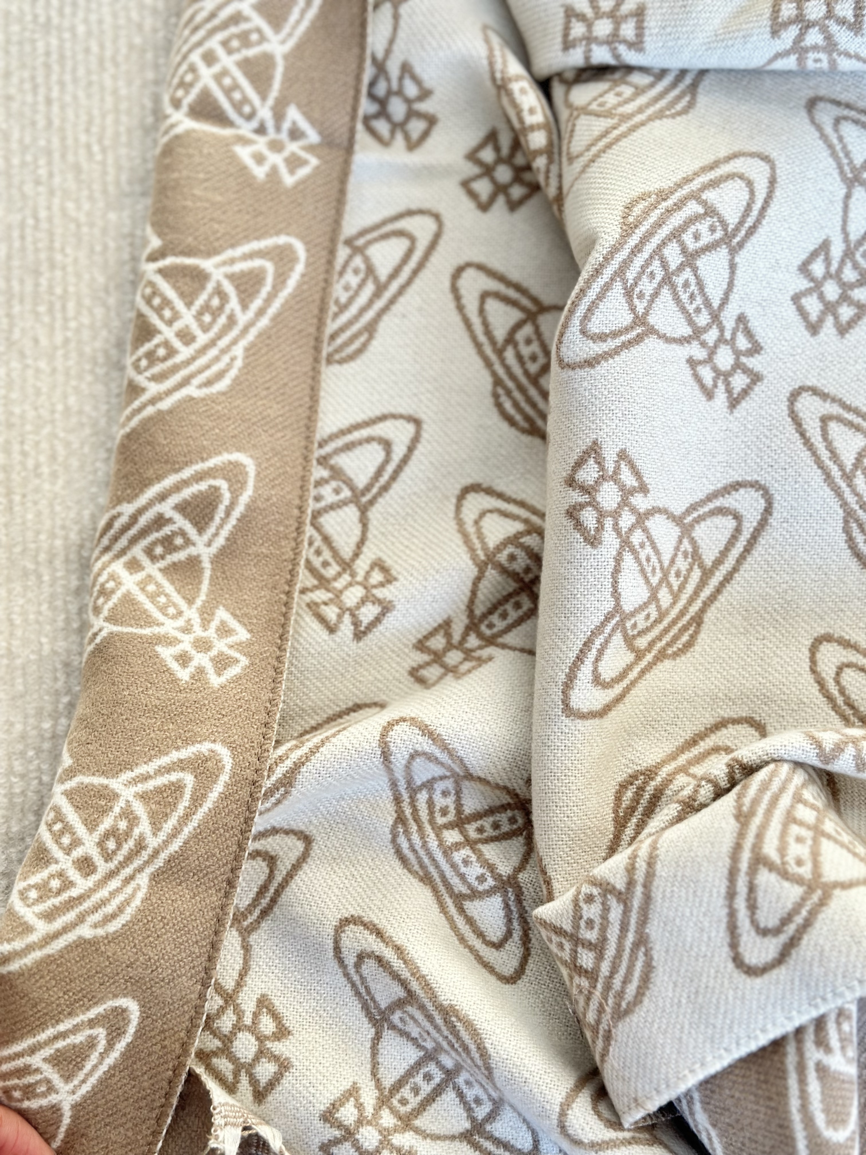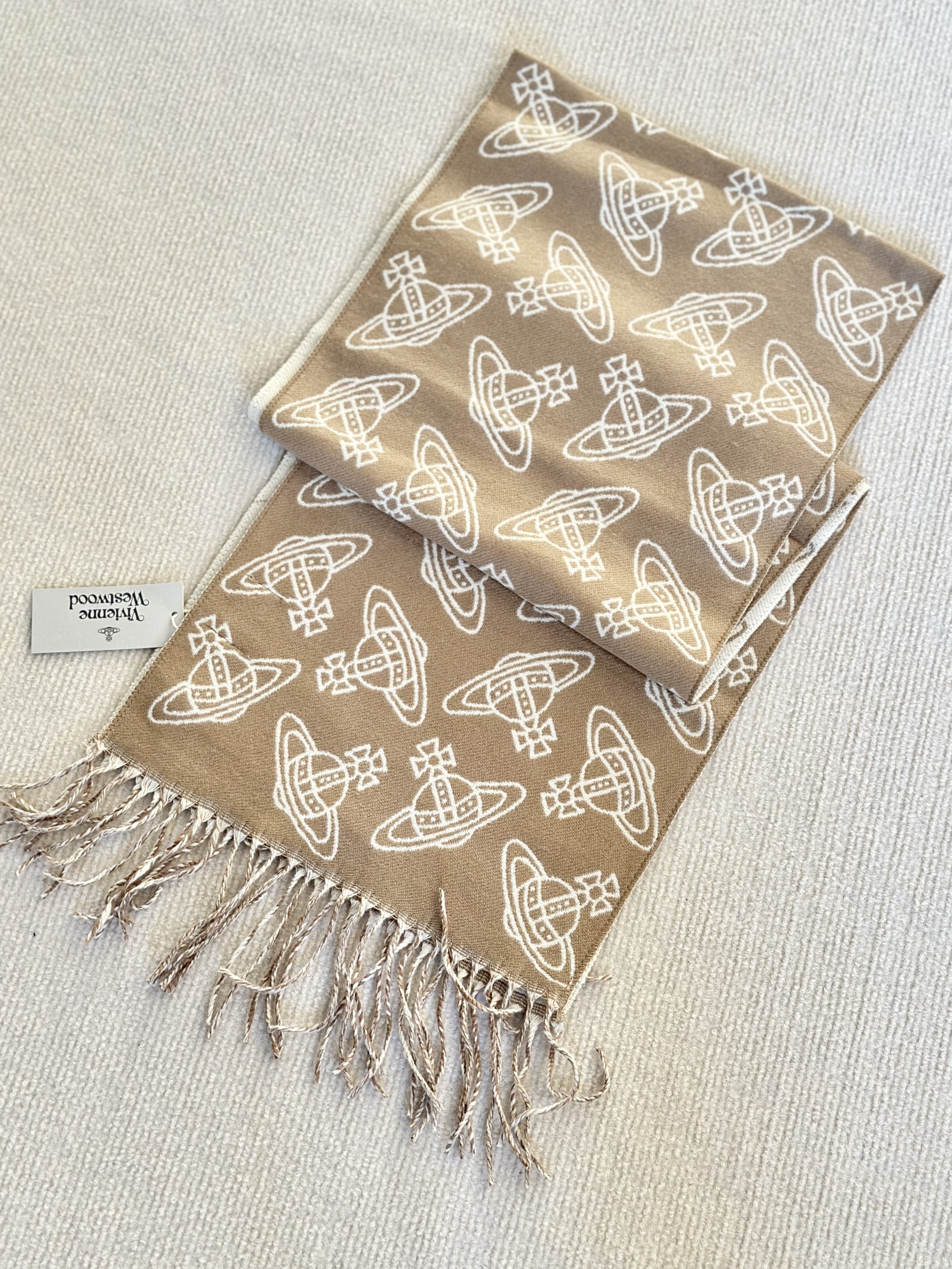 毒家渠道 100羊毛 !Vivenne Westwood西太后奶茶色围巾星球双面羊毛围巾