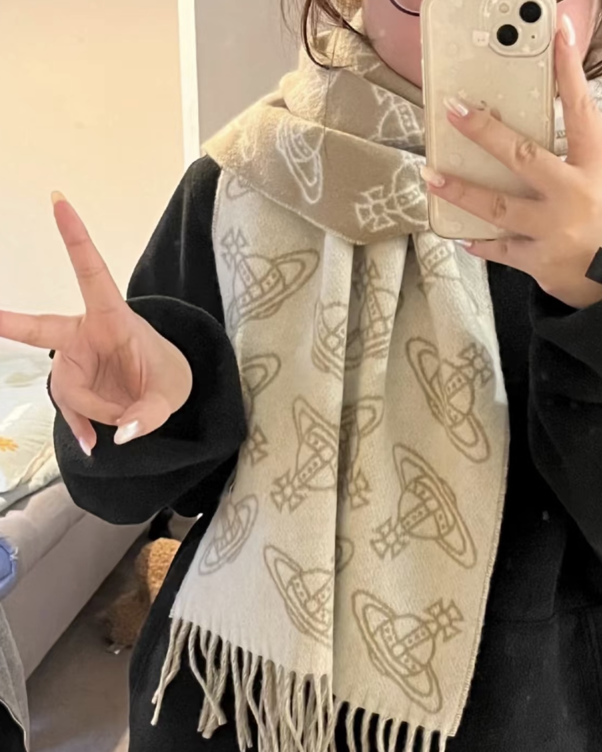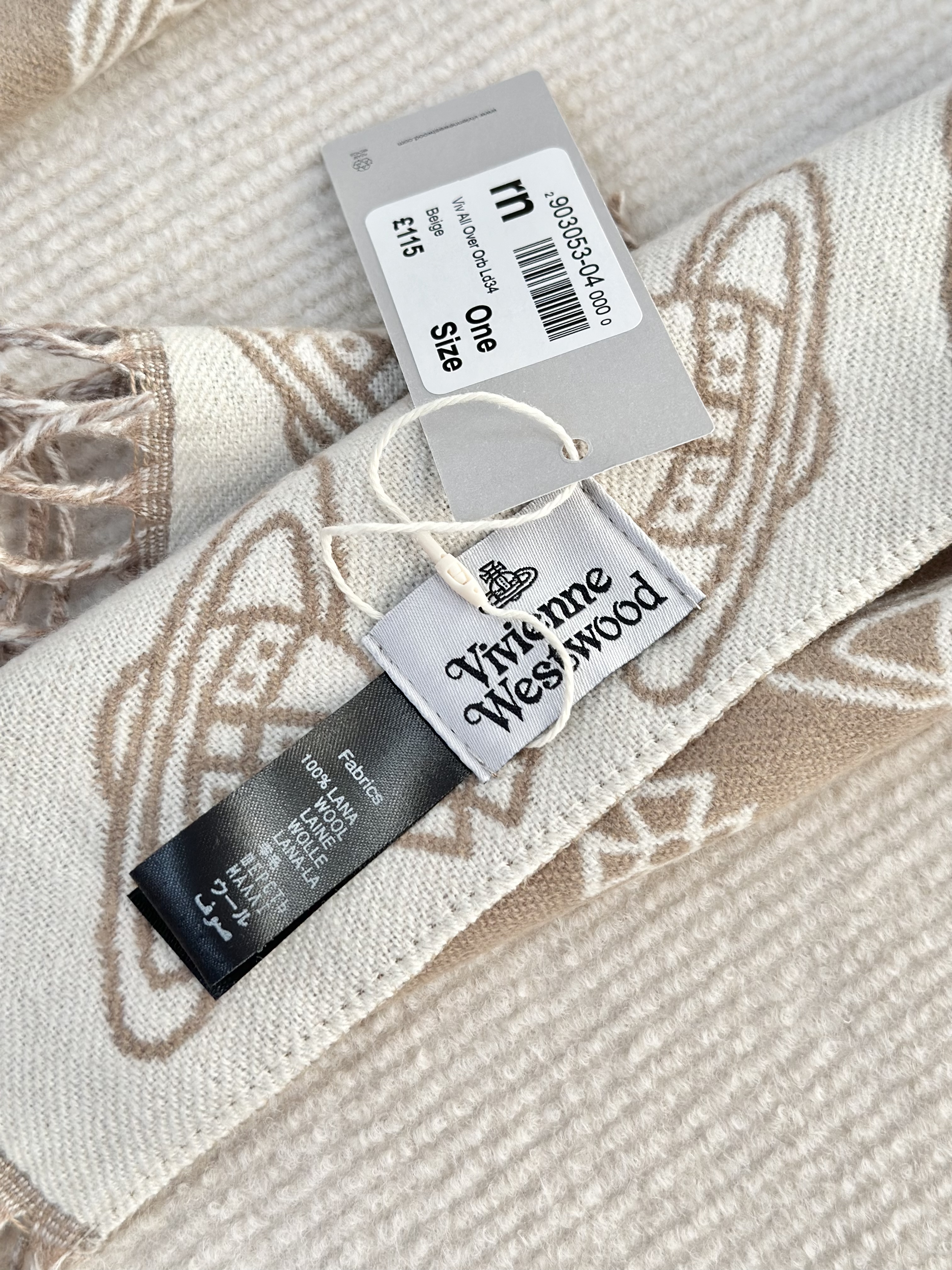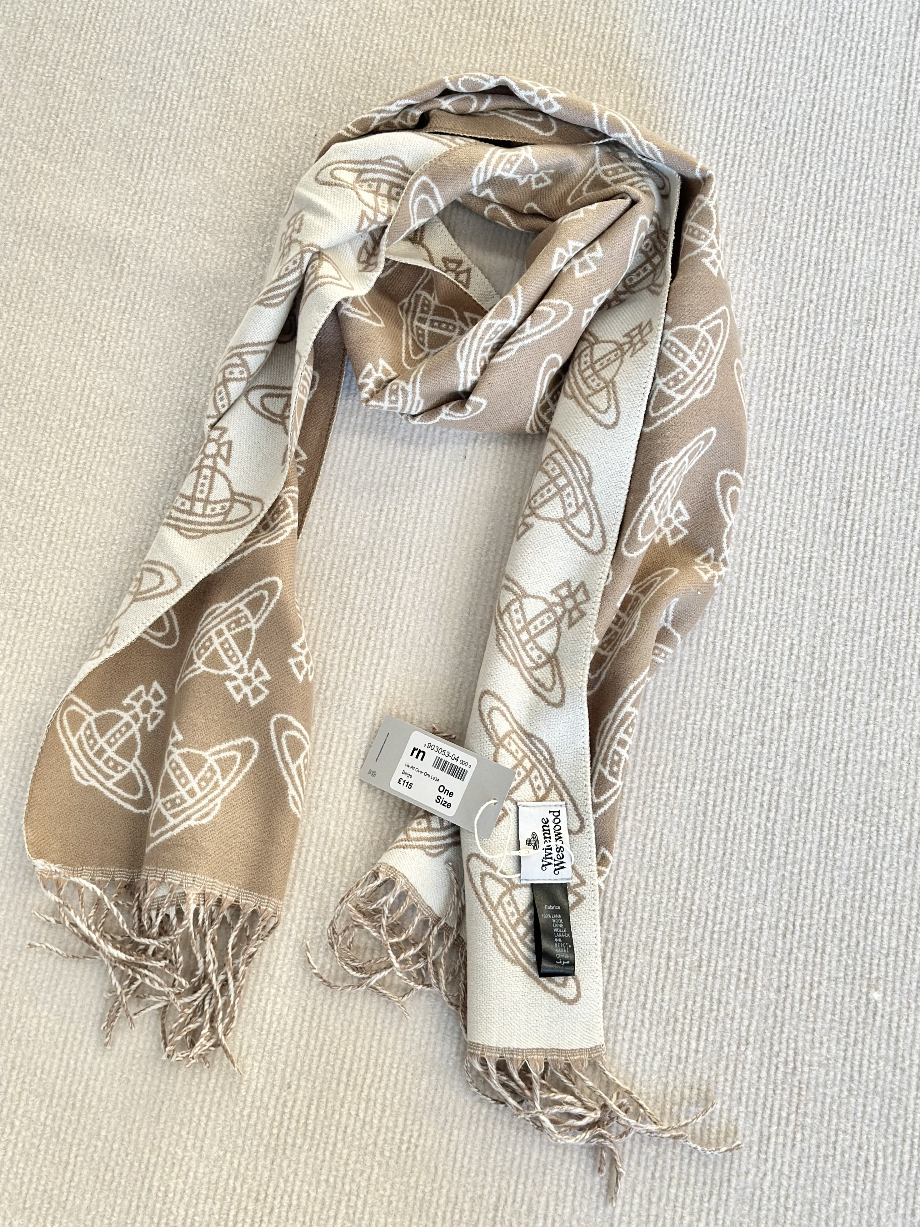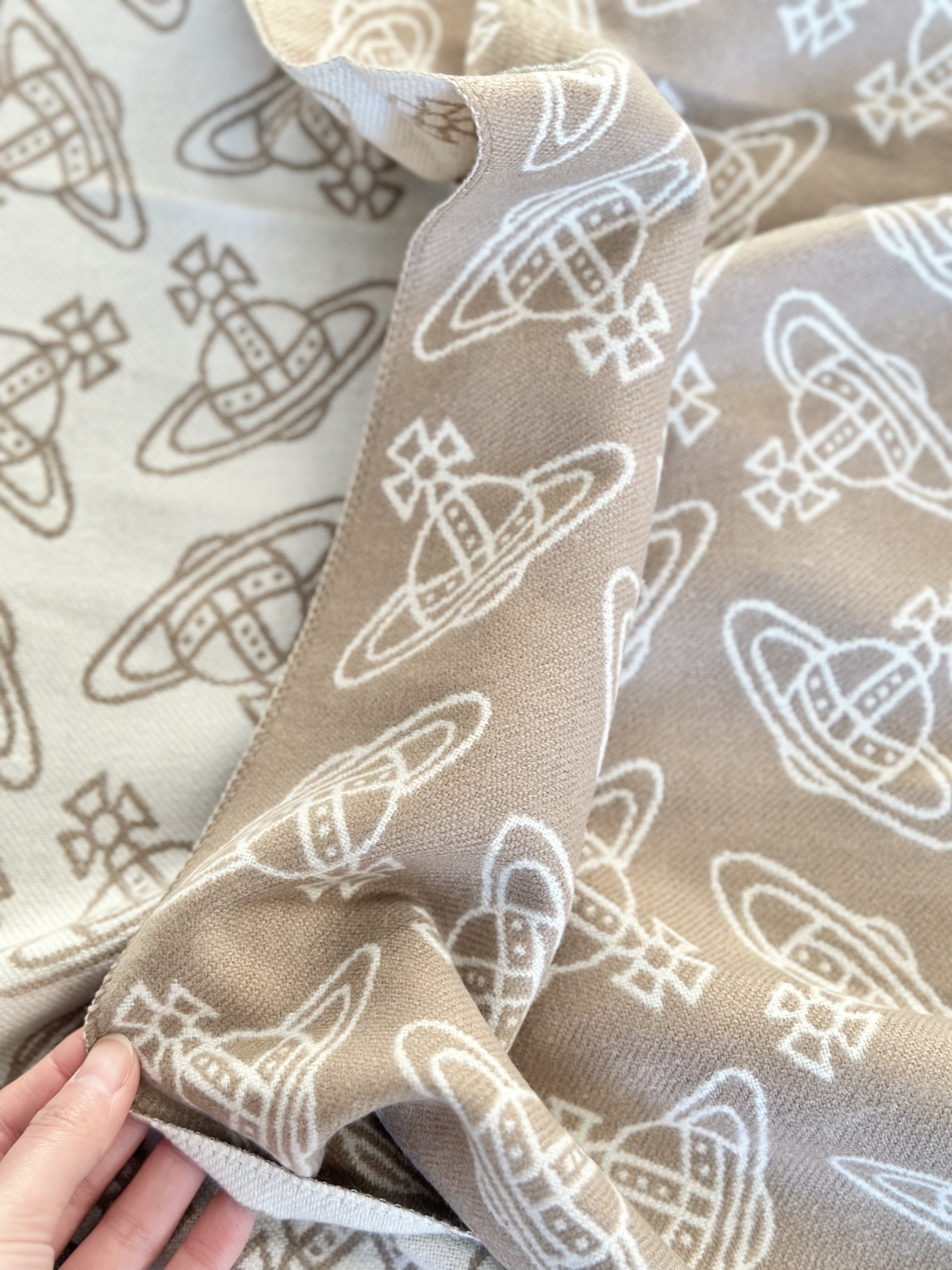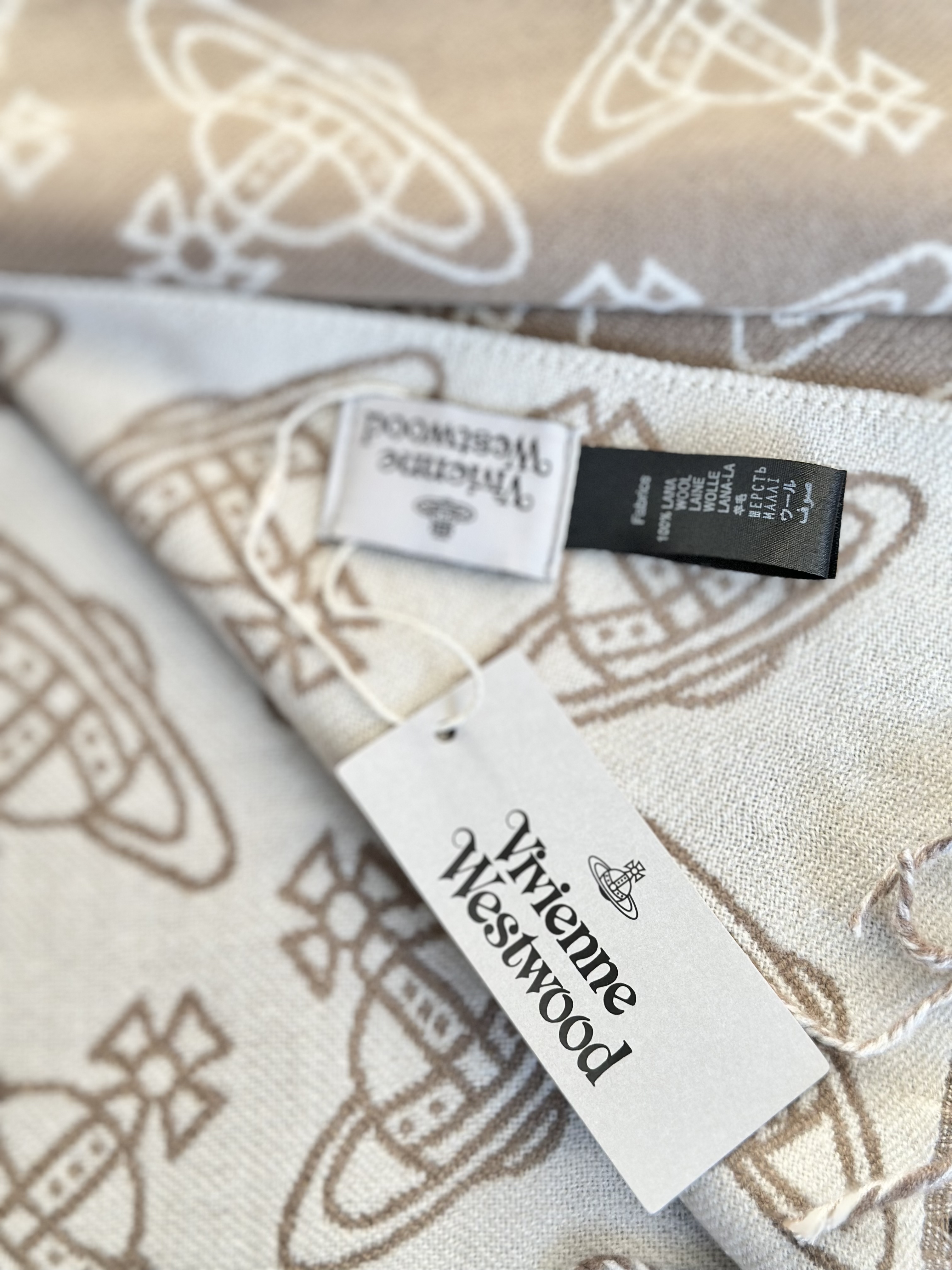 毒家渠道 100羊毛 !Vivenne Westwood西太后奶茶色围巾星球双面羊毛围巾